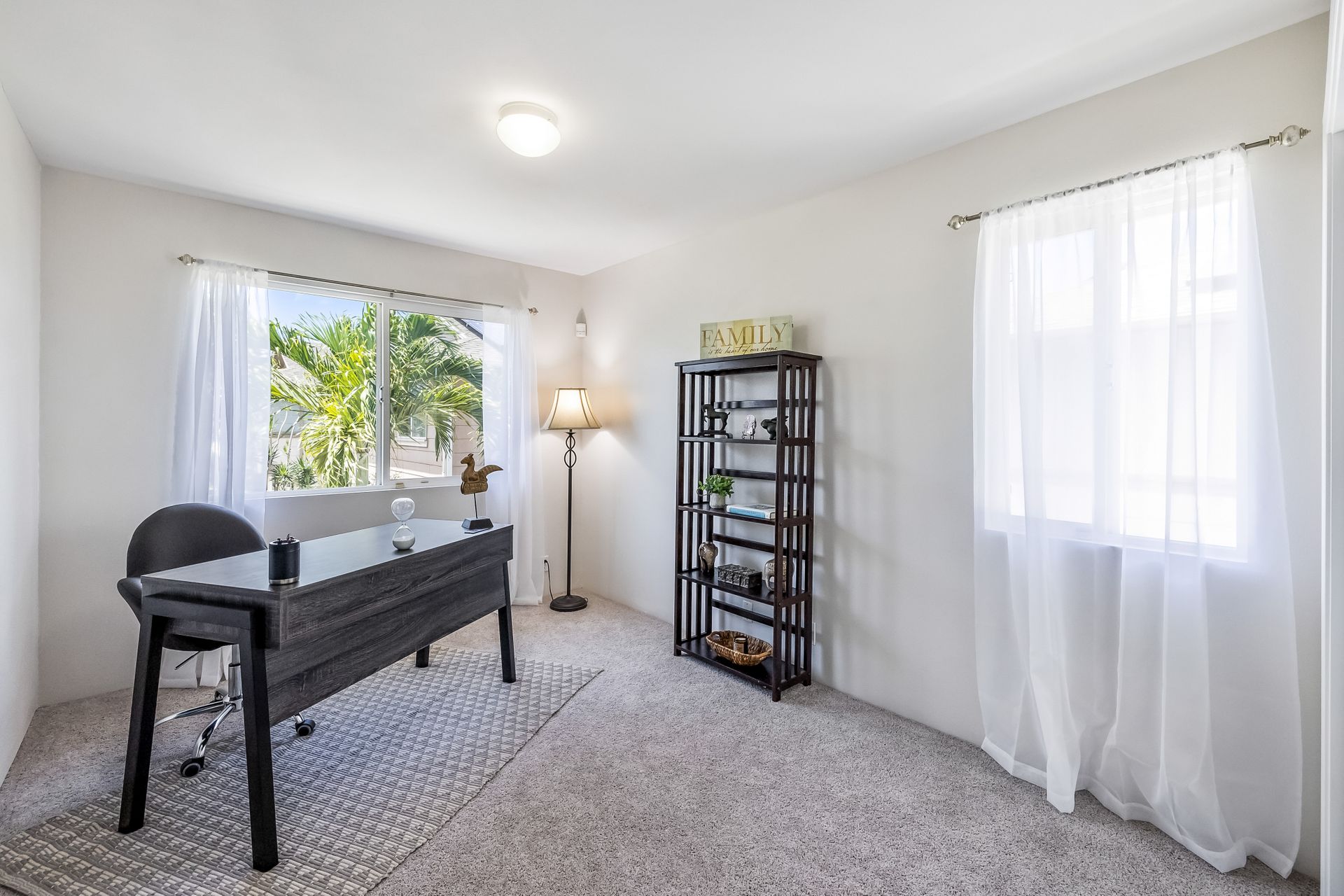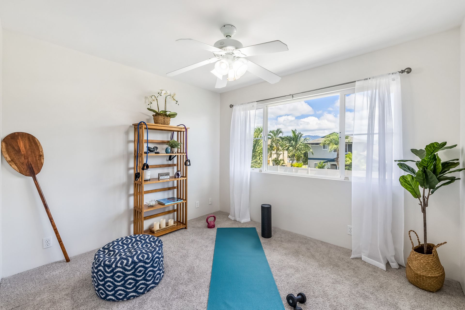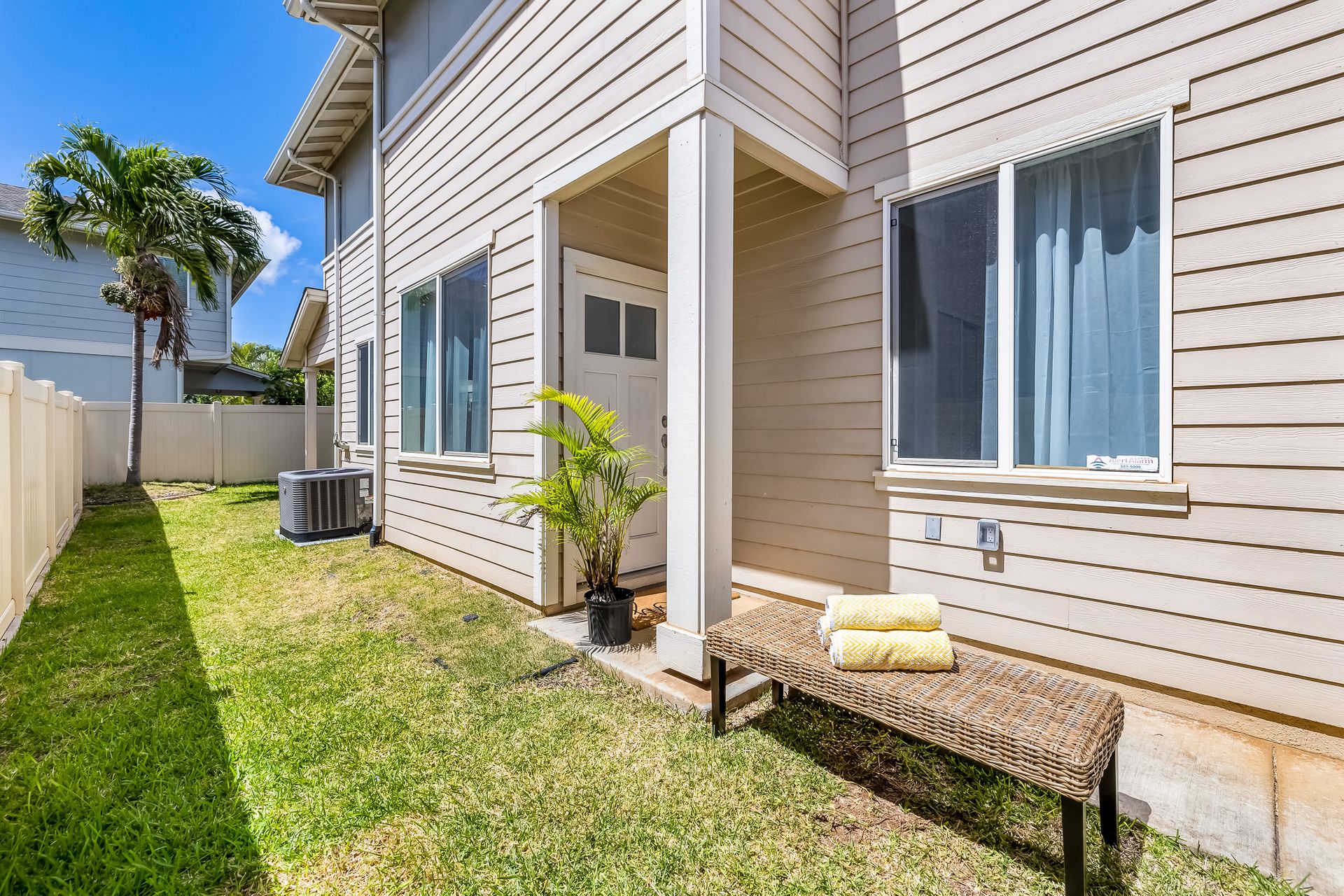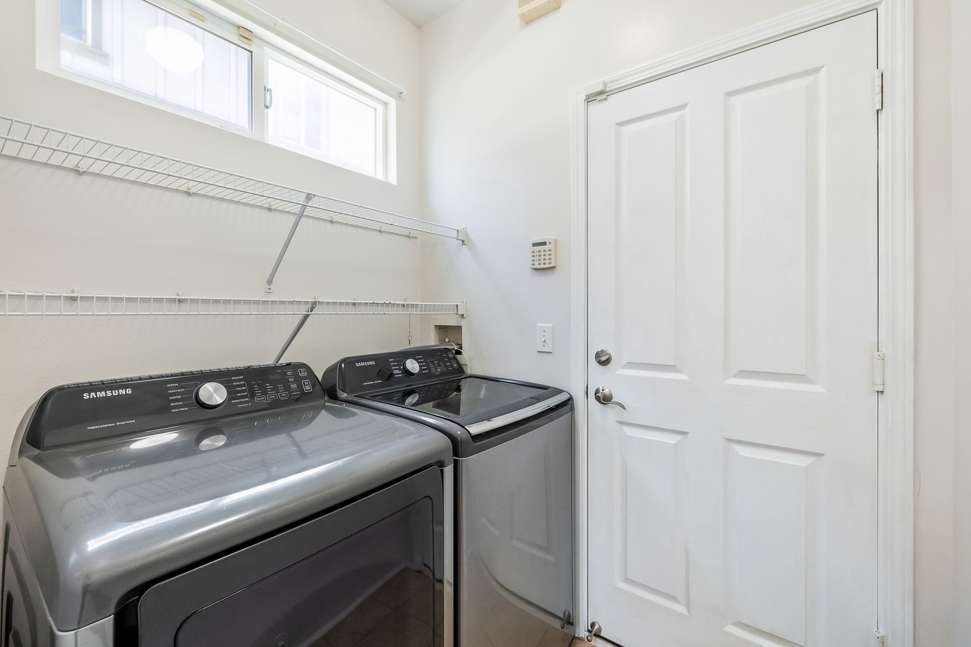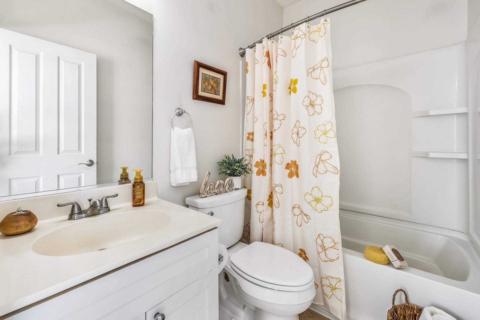 Enjoy quality time with family and friends in the large covered lanai and fenced backyard. The community pool and recreational facility are nearby for more options. Upstairs, discover a primary suite, three additional bedrooms, a guest bathroom, and extra space for an office or playroom. The primary bedroom features a large walk-in closet and dual sinks.