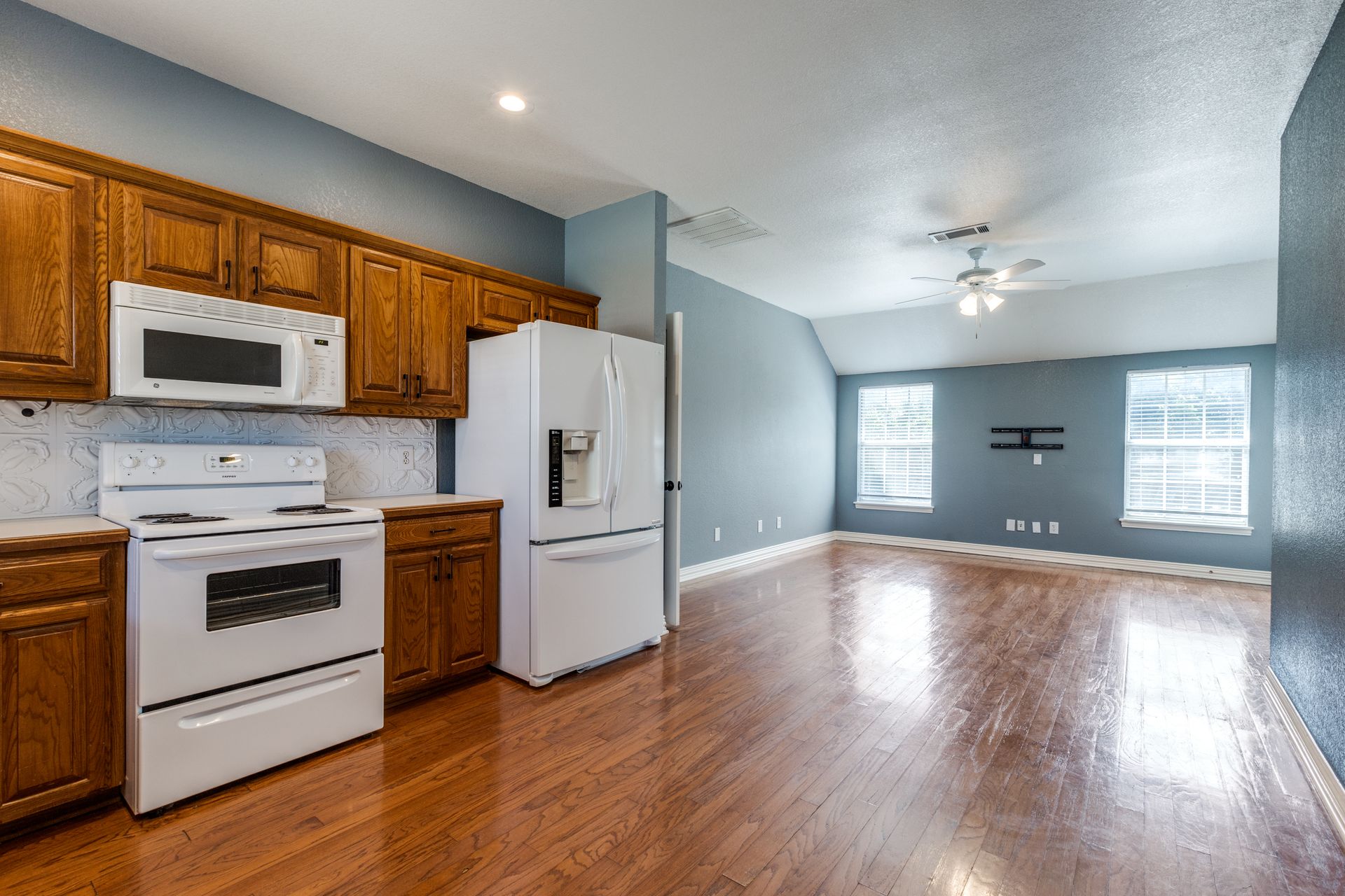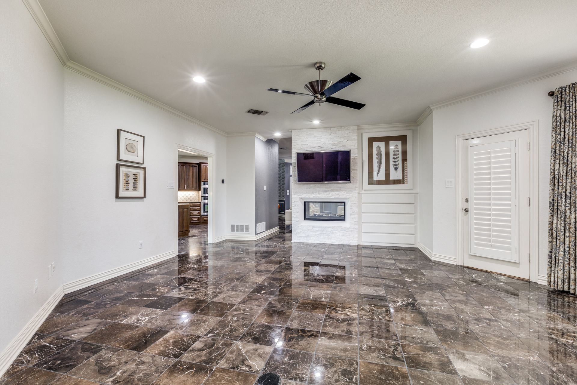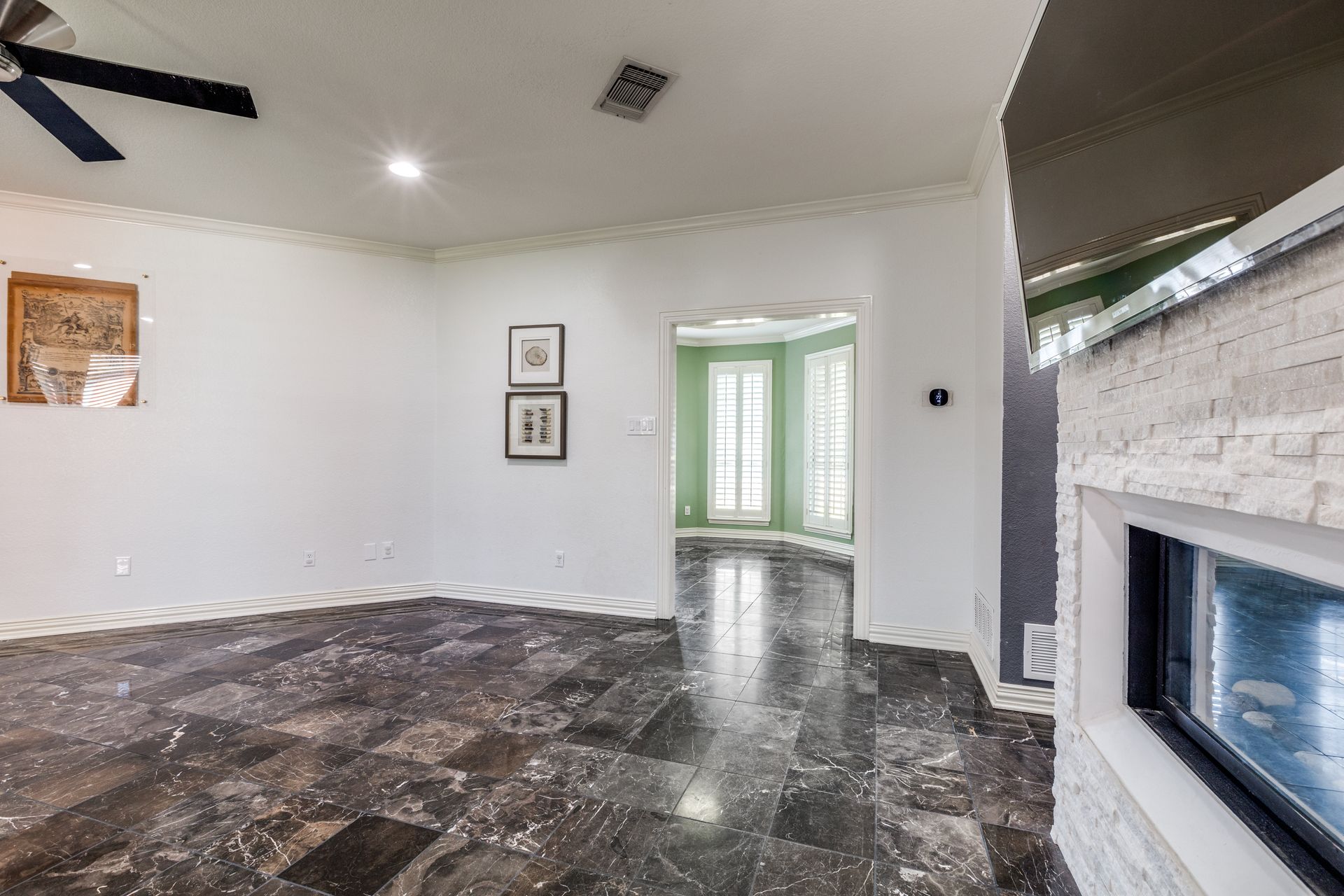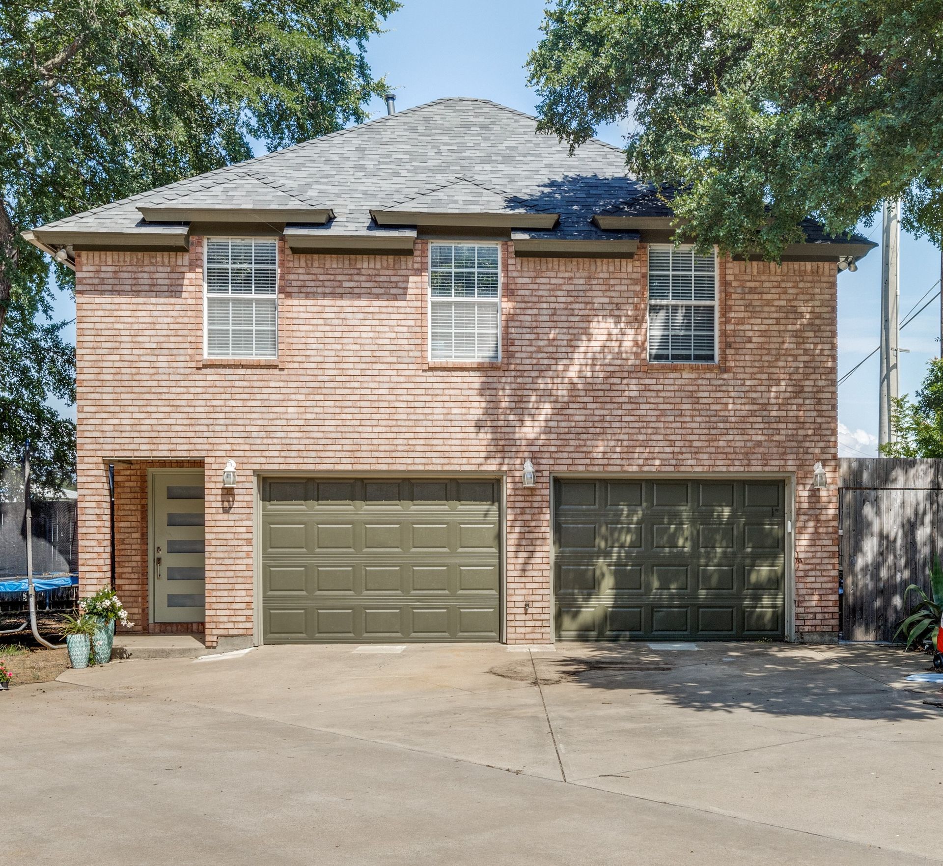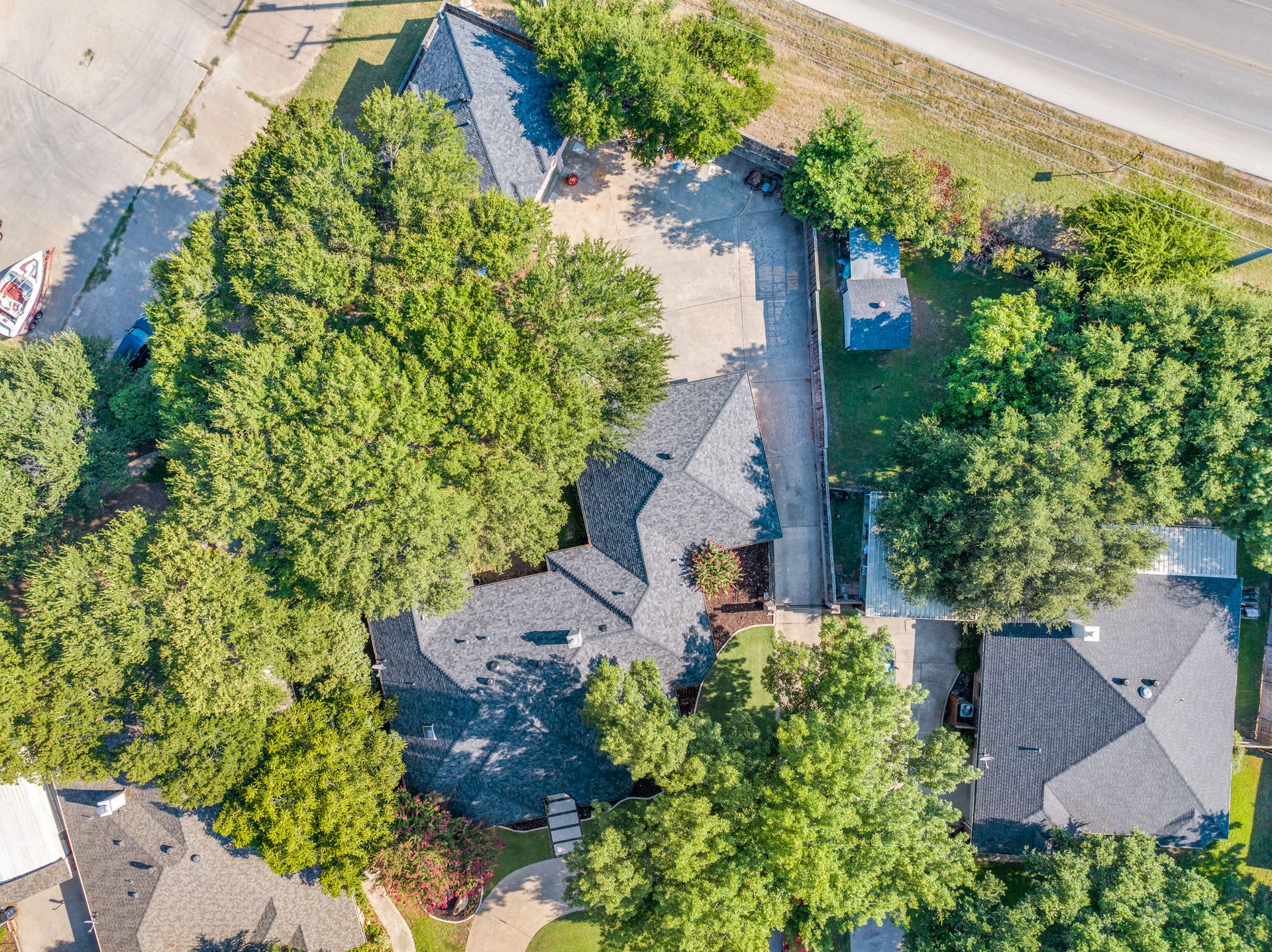 9120 Timber Oaks Drive is a stunning property that offers four garages to house all your recreational needs! As you enter this four bedroom and two and one-half bathroom residence, you will be greeted by a spacious and inviting interior that offers ample storage. The living room is bright and airy featuring a double-sided gas fireplace. The oversized garage sitting at 30 feet long is a great place to store your boat! One of the highlights of this property is the versatile detached living quarters with a two-car garage, which can serve as a separate living area for loved ones and guests. It offers its own private bedroom, bathroom, and 900 square feet of living space atop a garage equipped with an engine lift, AC and heating with its own half bathroom making for the ideal workshop. Outside, you'll find a covered patio and a beautiful yard with a canopy of trees perfect outdoor activities and entertaining. This property is zoned for the brand-new sought-after Eagle Mountain High School!