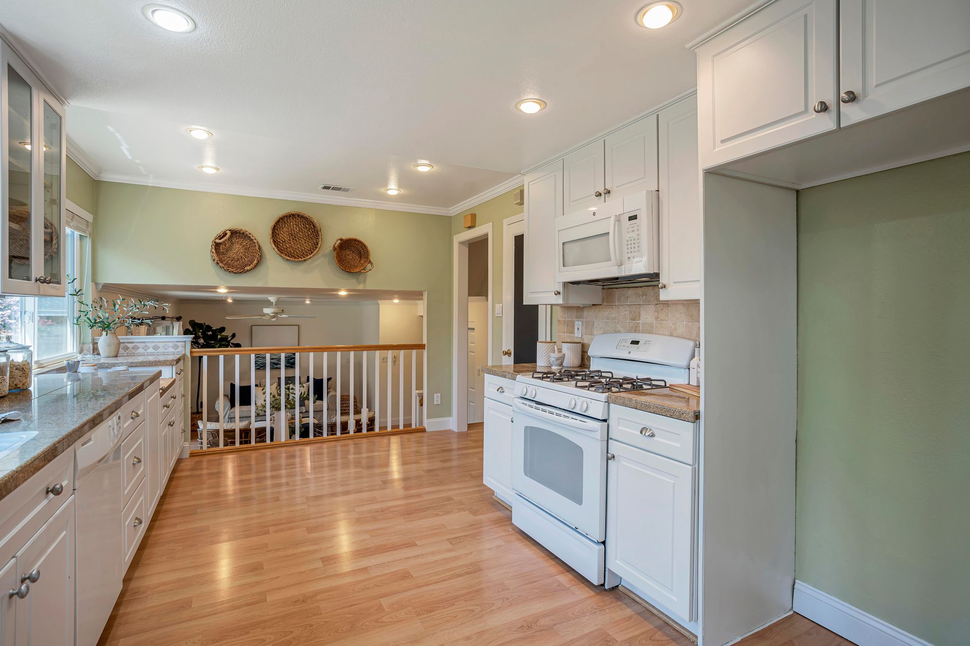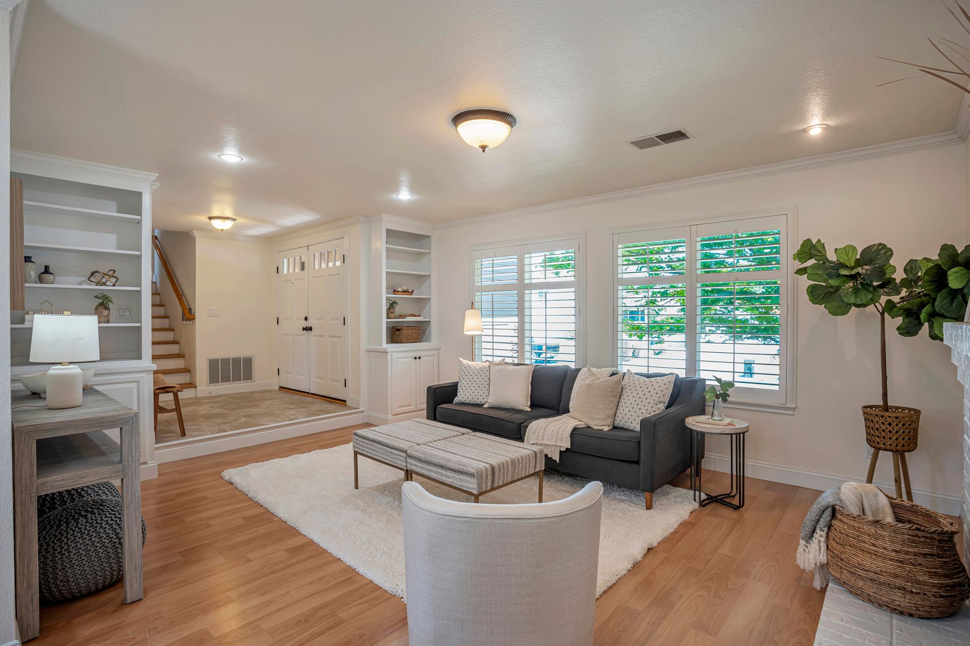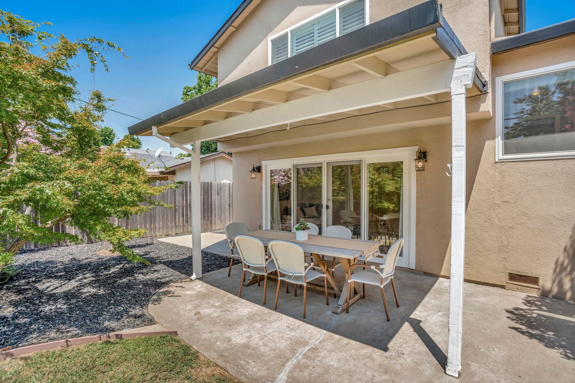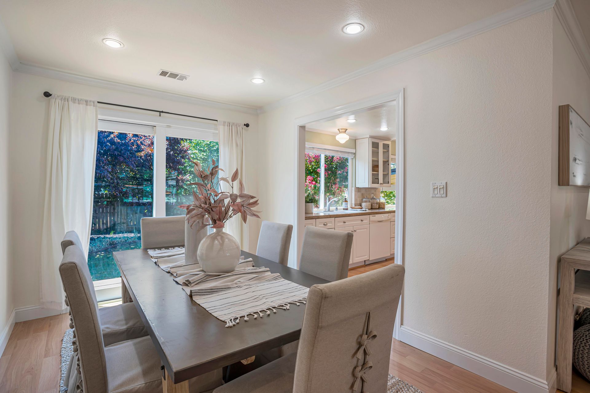 Spacious and naturally bright, don’t miss this Rosemont tri-level home. The meticulously cared for house provides four bedrooms, two and one-half baths and approximately 1,834 square feet. The large formal living room provides a huge picture window with plantation shutters, a brick fireplace, built-in shelving, recessed lights and beautiful flooring. The formal dining has French doors leading to the backyard and flows into the massive kitchen. This kitchen truly is the heart of the home: tons of space for cooking/entertaining/eating, lots of natural light with windows overlooking the beautiful backyard, expansive countertop space, ample storage, a pantry closet, a baker’s butcher block prep station and glass display upper cabinets. Step down into the family room for more entertaining space both indoor and out as you open the double wide slider and venture out to the covered back patio for summer barbeques. A one-half bath is available for guests and there is a two-car garage for all your storage needs. Upstairs, the large primary suite offers a walk-in closet and a lovely bathroom with heated floor tiles, an updated shower stall and lots more storage. The hall bathroom also features a heated floor for cozy winter mornings and a large soaking tub. An energy efficient home, it features dual-pane windows, plantation shutters and ceiling fans. The HVAC system was installed in 2017. Enjoy an excellent location just down the street from the neighborhood park, a few blocks from light rail transportation and minutes away from schools, shops, restaurants, American River Parkway, Sac State and Downtown Sacramento.