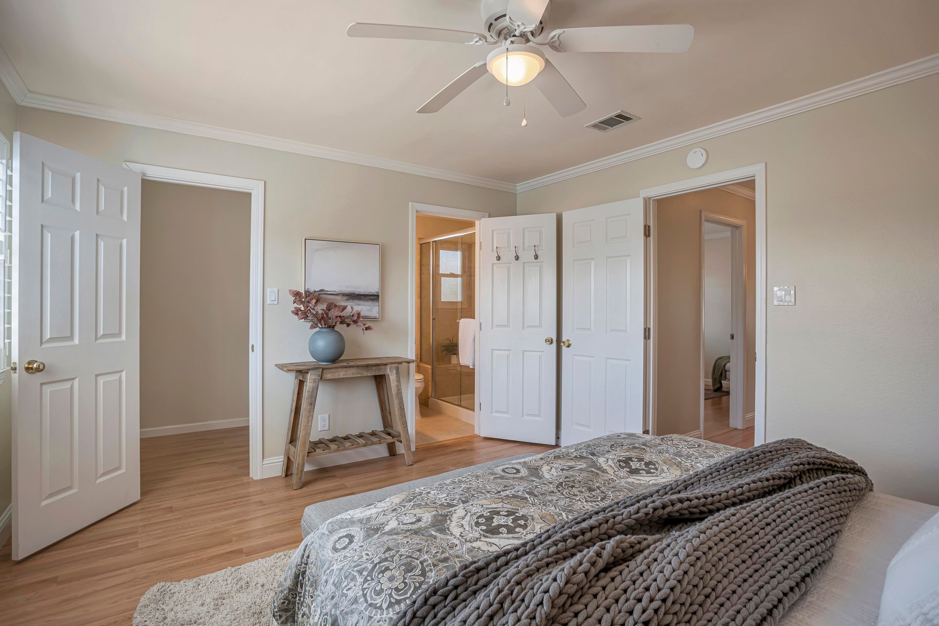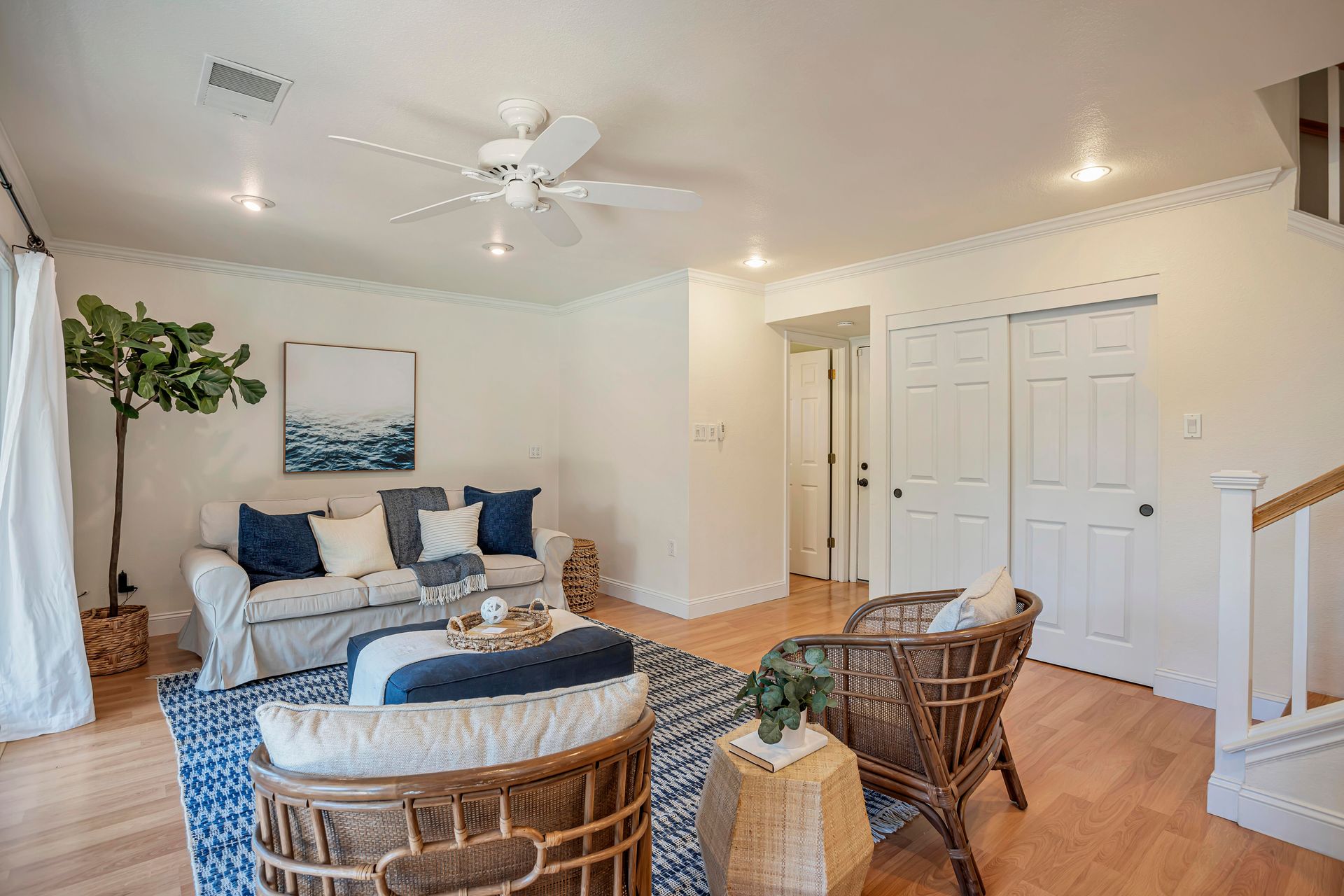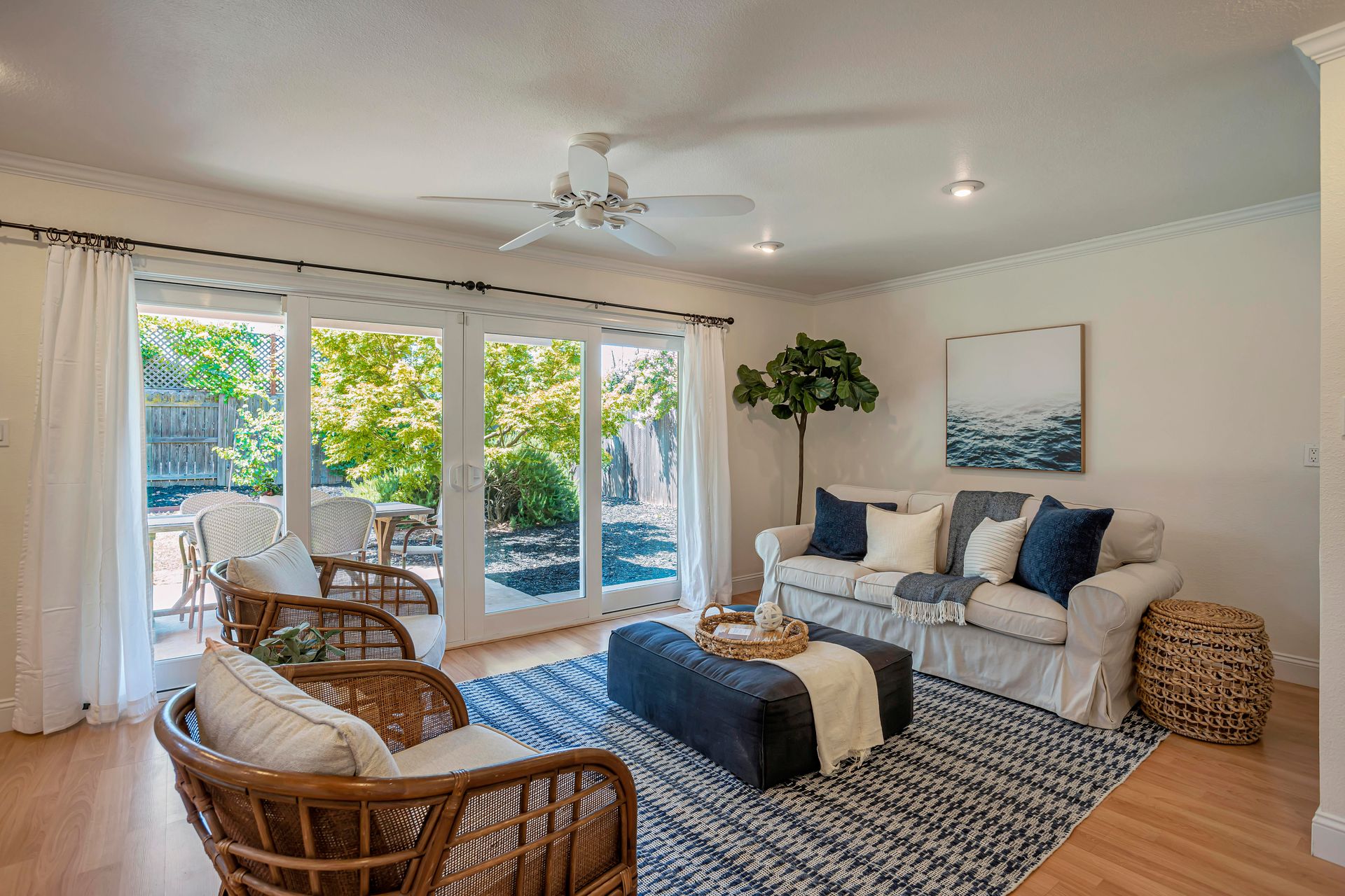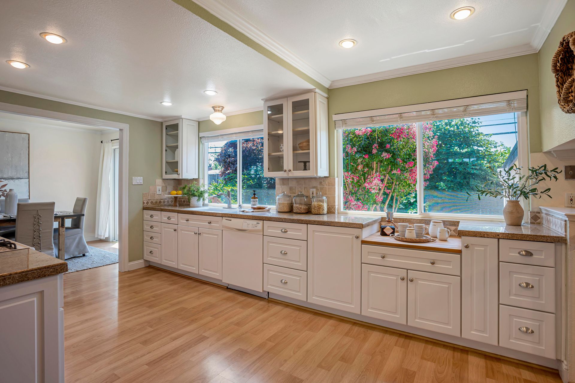 Spacious and naturally bright, don’t miss this Rosemont tri-level home. The meticulously cared for house provides four bedrooms, two and one-half baths and approximately 1,834 square feet. The large formal living room provides a huge picture window with plantation shutters, a brick fireplace, built-in shelving, recessed lights and beautiful flooring. The formal dining has French doors leading to the backyard and flows into the massive kitchen. This kitchen truly is the heart of the home: tons of space for cooking/entertaining/eating, lots of natural light with windows overlooking the beautiful backyard, expansive countertop space, ample storage, a pantry closet, a baker’s butcher block prep station and glass display upper cabinets. Step down into the family room for more entertaining space both indoor and out as you open the double wide slider and venture out to the covered back patio for summer barbeques. A one-half bath is available for guests and there is a two-car garage for all your storage needs. Upstairs, the large primary suite offers a walk-in closet and a lovely bathroom with heated floor tiles, an updated shower stall and lots more storage. The hall bathroom also features a heated floor for cozy winter mornings and a large soaking tub. An energy efficient home, it features dual-pane windows, plantation shutters and ceiling fans. The HVAC system was installed in 2017. Enjoy an excellent location just down the street from the neighborhood park, a few blocks from light rail transportation and minutes away from schools, shops, restaurants, American River Parkway, Sac State and Downtown Sacramento.