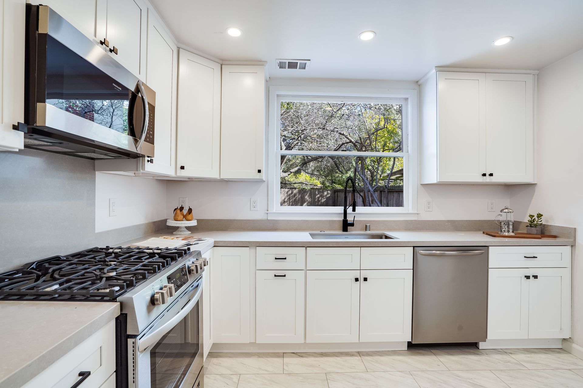 This remodeled 2BD/1BA Willows home with a huge backyard exudes charm galore. Newly remodeled kitchen includes new cabinets, stainless steel appliances, quartz counters and luxury vinyl plank floor. Spacious living room with fireplace and dining room combination, family room opening to patio and big yard which includes a separate workshop/possible office/studio. Newly remodeled bath includes tub/shower combo with quartz tub surround. Just refinished oak hardwood floors in bedrooms, living room and dining room. Updated electrical, freshly painted inside and out. Convenient to downtown Palo Alto and great schools.