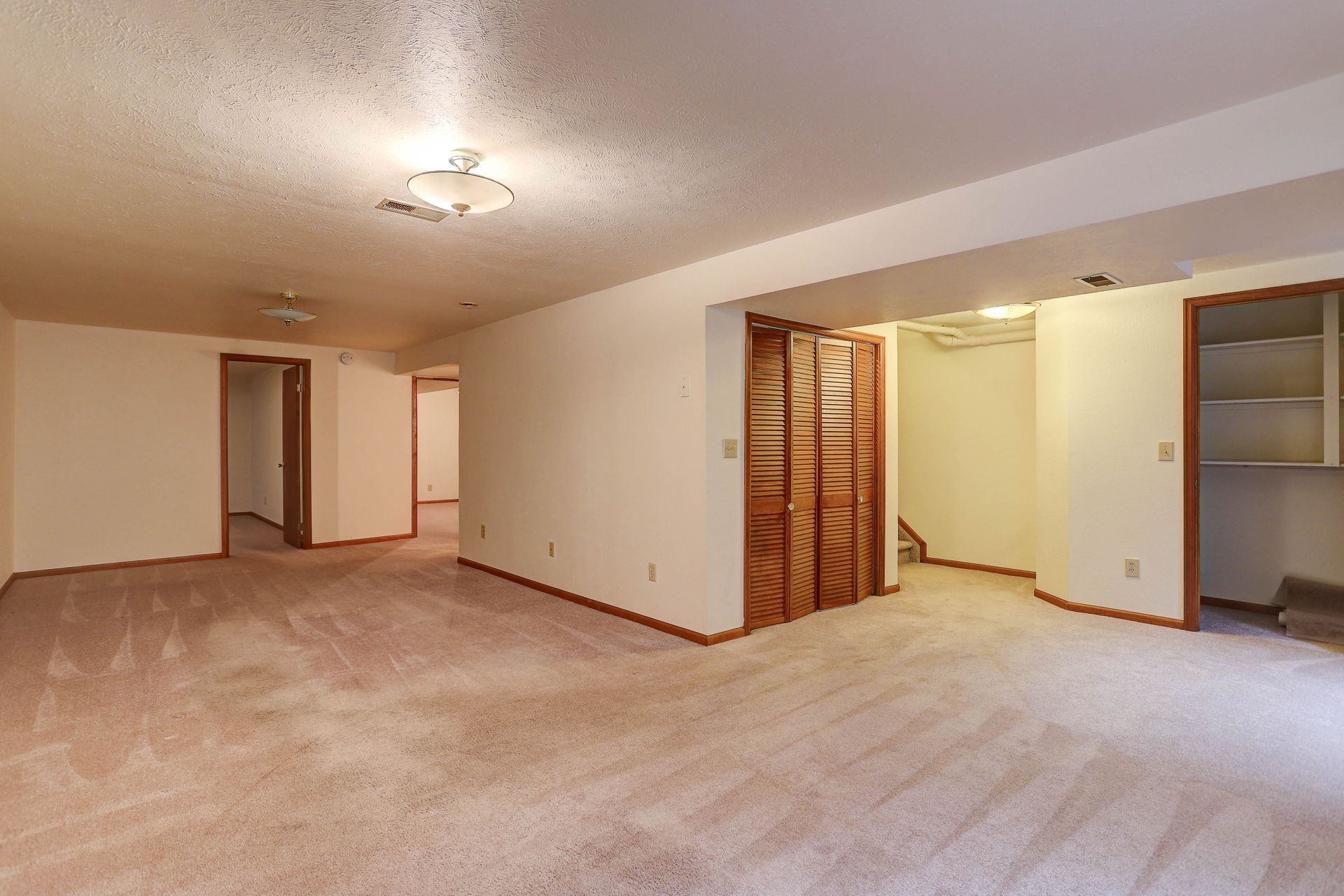 This rare handicap accessible 4bedroom/3bath ranch style end unit with oversized 1 car garage has oodles of potential and possibility! It has an open vaulted easy access floorplan, newer stainless kitchen appliances, sideload washer and dryer, enclosed west facing private patio, master bedroom/bath/walk-in closet, large second bedroom handicap accessible bathroom/garage and engineered hardwood on the main living area. The completely finished basement has a huge family living area with two large egress windows for light, two bedrooms and a 3/4 bath.