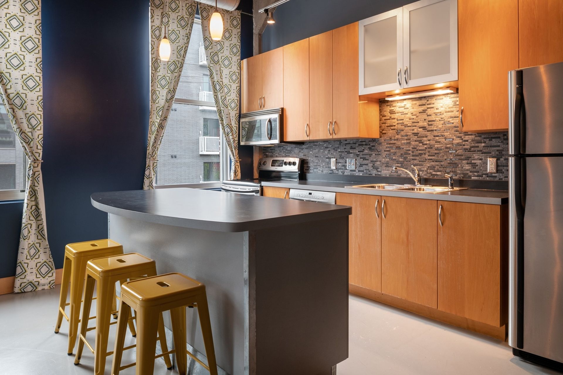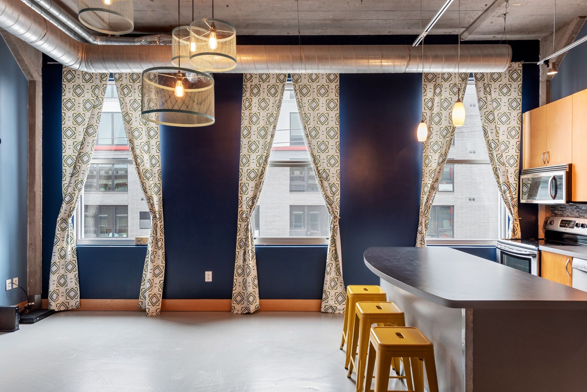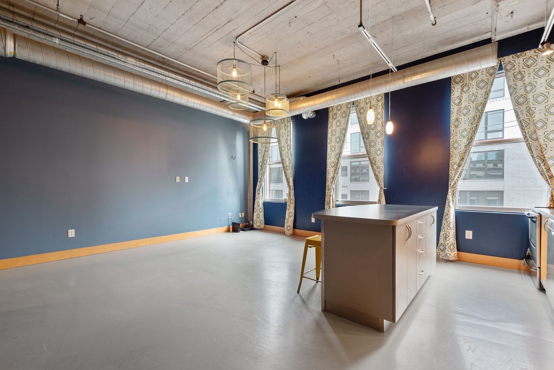 Loft-style condo with open and industrial feeling, but separated bedroom/bath. NEW In-unit laundry. Stainless steel appliances. Eat-in kitchen with bar-fun for entertaining! High ceilings with track lighting & playful chandeliers, walk-in closet for all your belongings & great storage. West-facing bright and sunny. Chic barn doors and move-in ready. You can walk to restaurants, breweries, a plethora of shopping , public transportation, Twins stadium & Mississippi trails . Pets allowed (2). Moped-bike storage in basement. Parking is unassigned in the lot adjacent. Plans to new green space in 2022. Check this sweet place out today! 1922 Mouthwash Factory historical building.