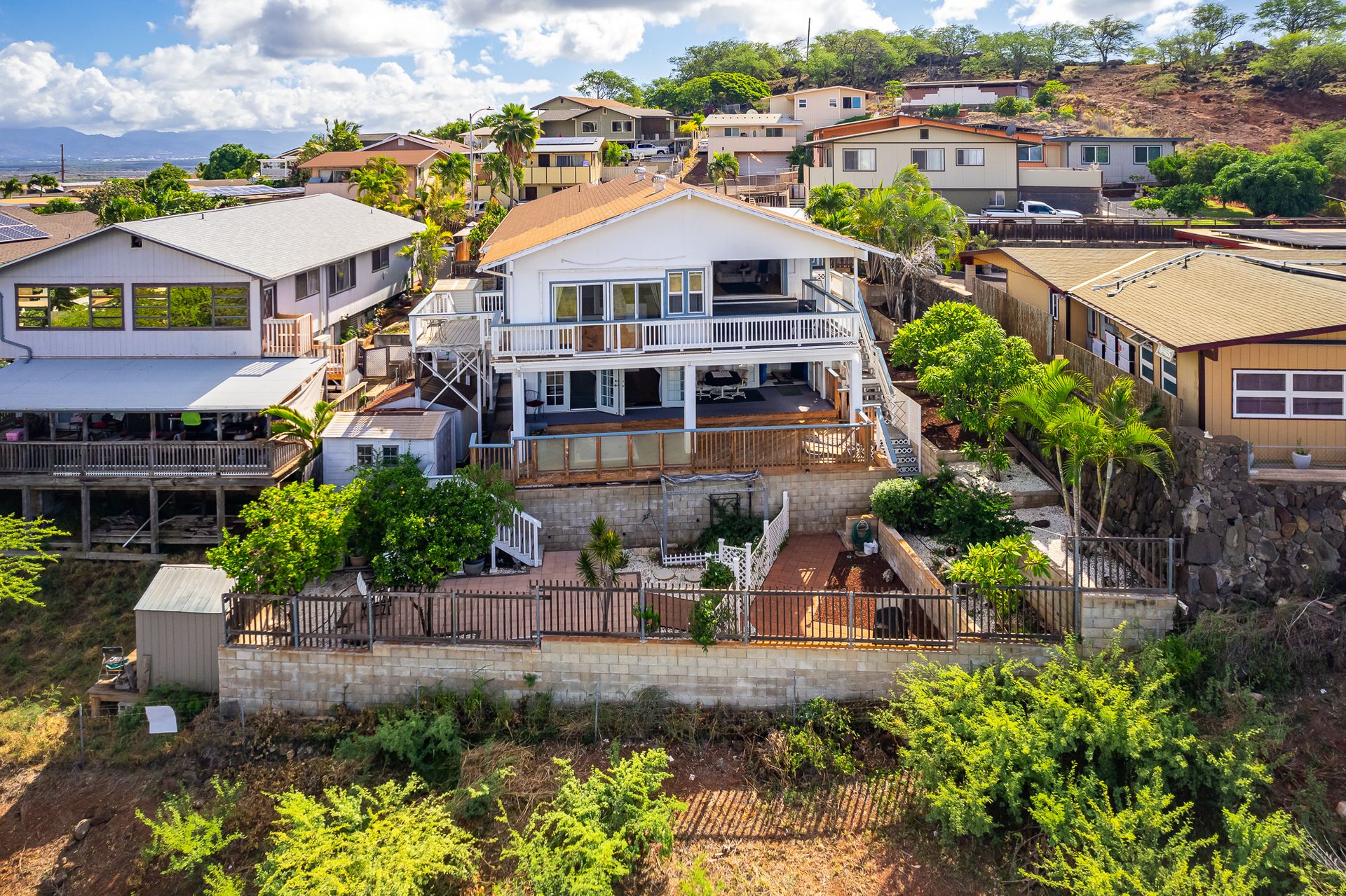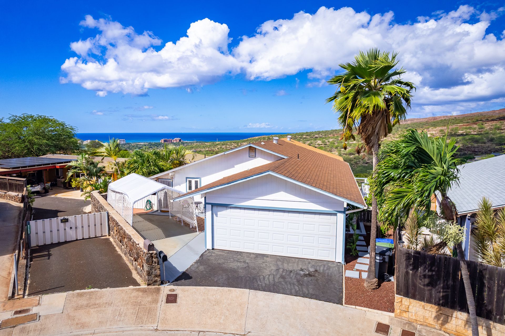 Don't miss this stunning five bedroom, three bath home with a study and loft on a quiet, private cul-de-sac rim lot. You’ll be transfixed by the amazing ocean views from any of the three walk-out decks. In the main living area, access to the deck is through 12-foot sliding glass doors that open up to bring the outdoors in. A sliding glass door from a second living area on the main floor opens out to a smaller deck area and double sliding doors open to the ocean view. The lower living area leads out through beautiful French doors onto yet another covered deck with an inset whirlpool tub. The lowest level of the property is a charming, trellised garden with fruit trees and fragrant flowers. Leading up from the garden to street level are terraced planting boxes. There are rain gutters around the whole house. With three distinct yet interconnected living areas in the home, your options are endless. Live in one section and rent the other areas or just let everyone have their own space! With one full kitchen and two wet bars, it’s possible! Did we mention there’s room for off-street parking for six cars?! This special property won’t be available long! Sold As-Is.