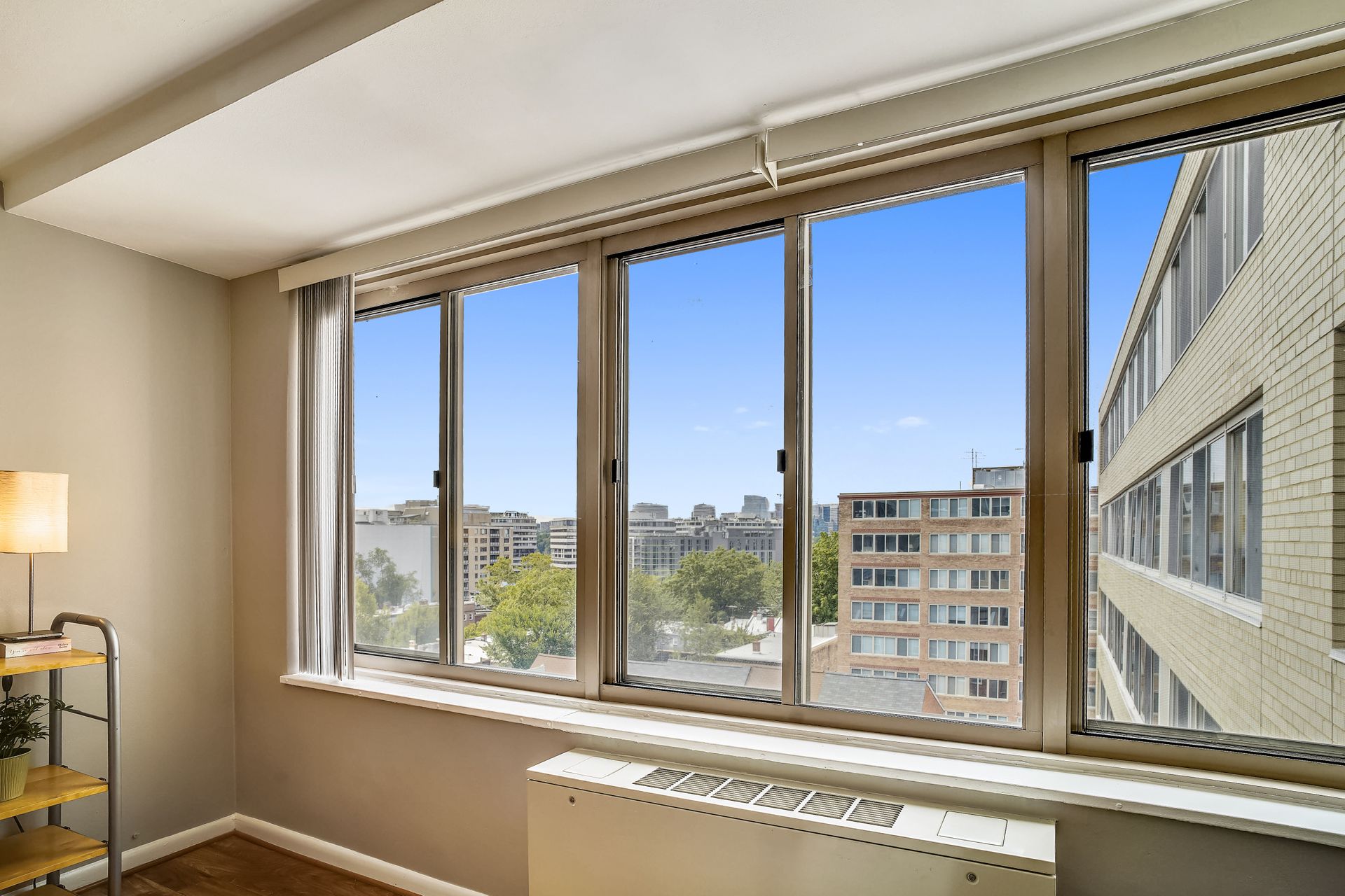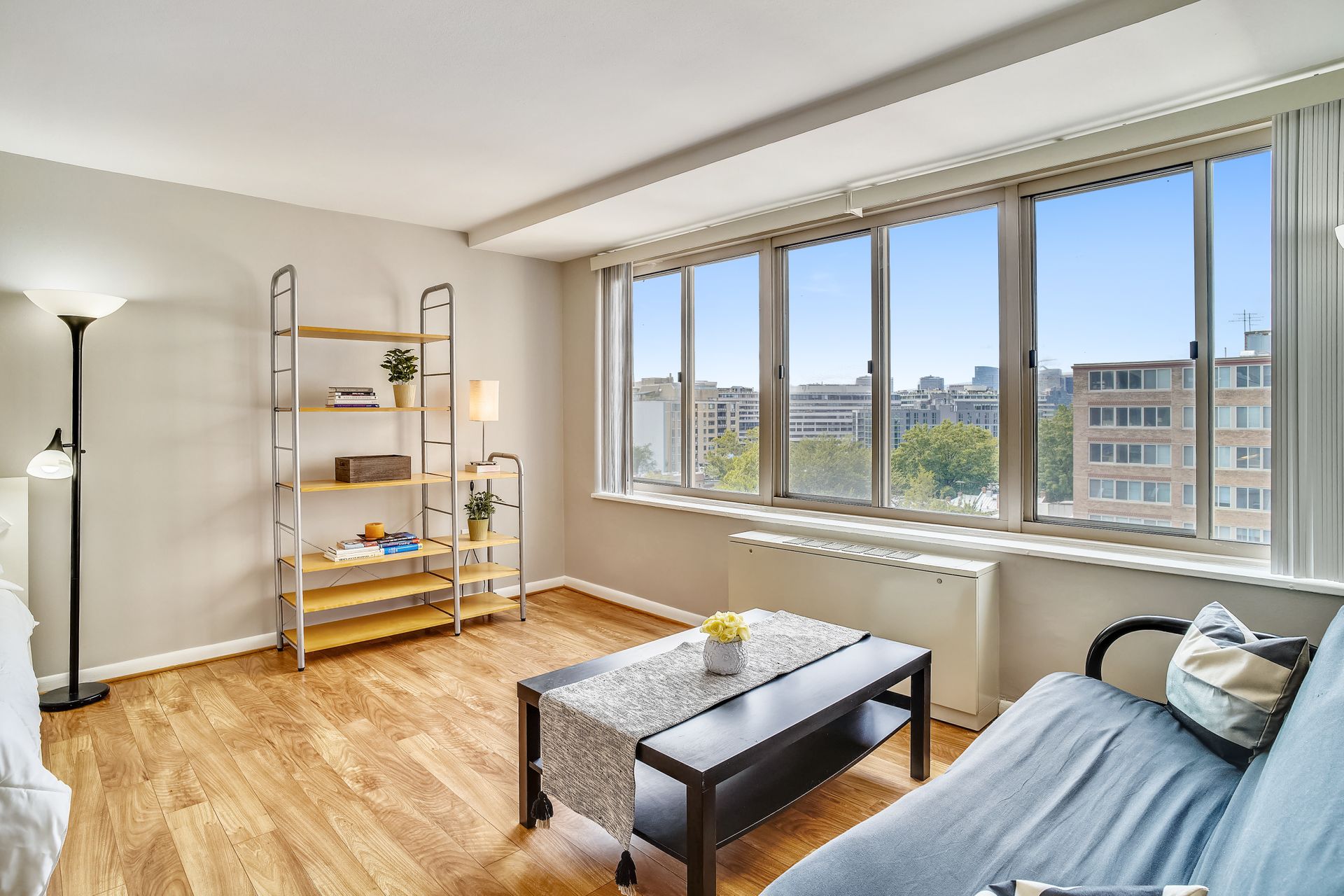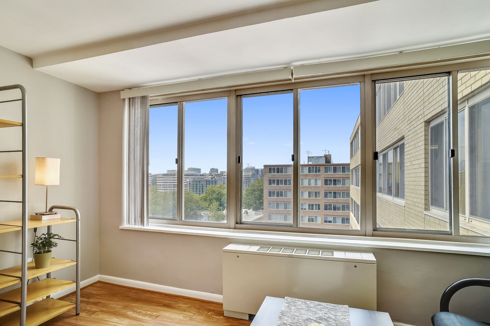 Bright studio with a fantastic city view in the heart of Foggy Bottom. A freshly painted spacious layout is designed to accommodate living, working from home, and simply relaxing. Efficient kitchen, nice closets, neutral bath with tub/shower make up this great studio. Stress free living with all utilities included except cable/wifi. Seller is offering a Home Warranty as well to make life easy for the new owner. Staging furniture (ask for the list) can convey at no value to the buyer--so just pack you clothes and move in! Building has a friendly front desk, community board room, community laundry, and a rooftop pool. Walk to everything! GW, the World Bank, all of the great restaurants of Foggy Bottom, West End, Georgetown, and Dupont Circle. Grab groceries at Trader Joe's or Whole Foods. The Foggy Bottom Metro stop and plenty of bike shares are right at your doorstep.