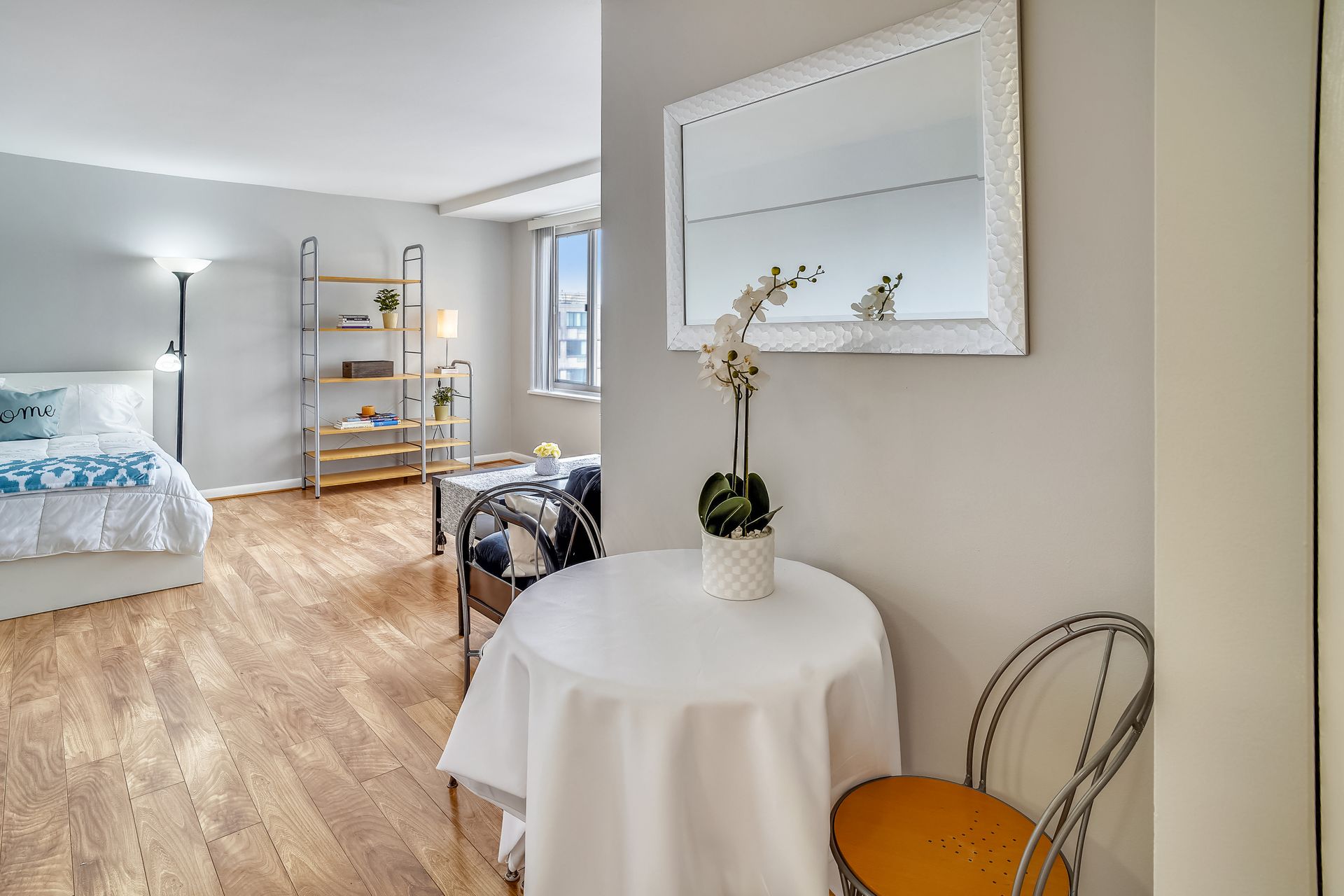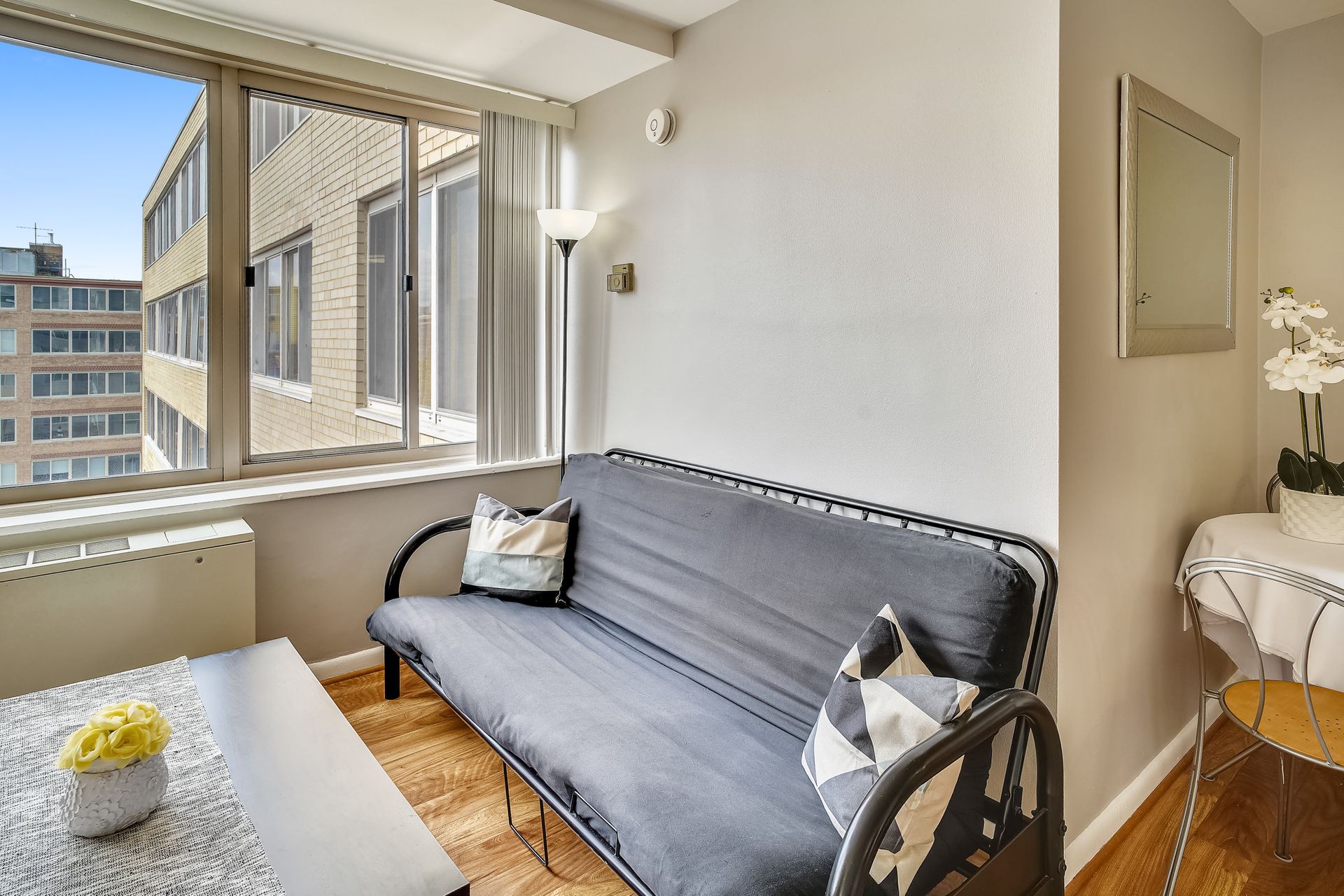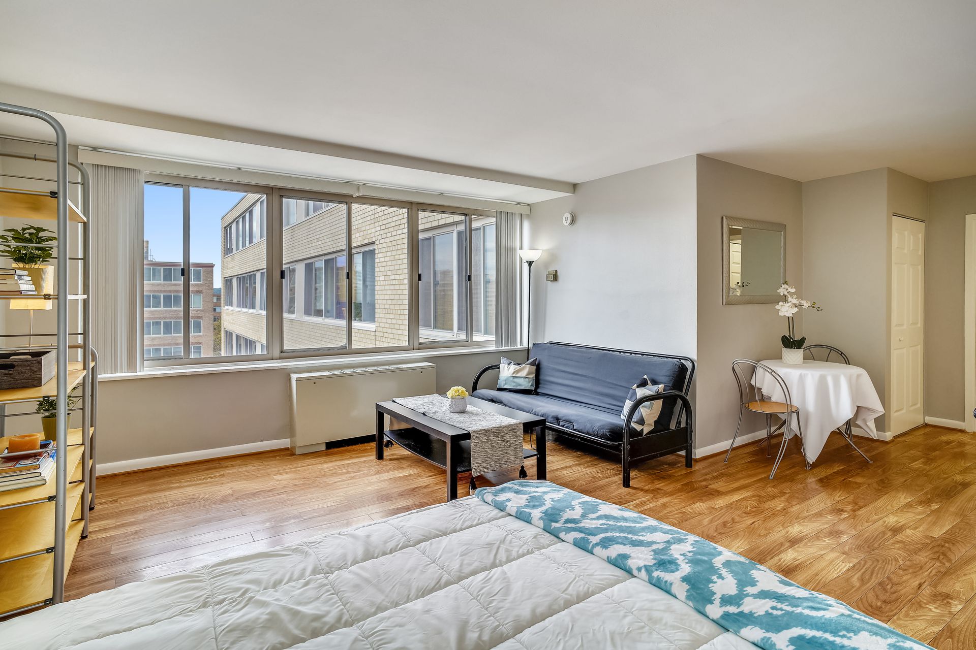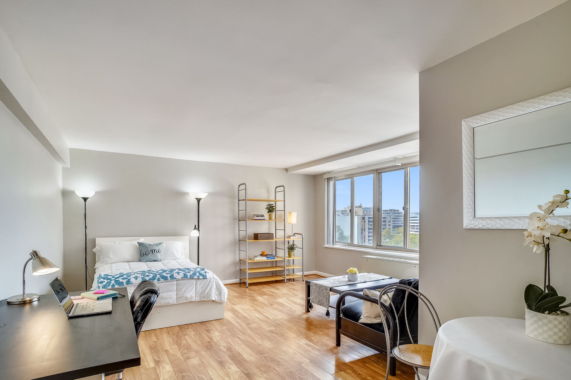 Bright studio with a fantastic city view in the heart of Foggy Bottom. A freshly painted spacious layout is designed to accommodate living, working from home, and simply relaxing. Efficient kitchen, nice closets, neutral bath with tub/shower make up this great studio. Stress free living with all utilities included except cable/wifi. Seller is offering a Home Warranty as well to make life easy for the new owner. Staging furniture (ask for the list) can convey at no value to the buyer--so just pack you clothes and move in! Building has a friendly front desk, community board room, community laundry, and a rooftop pool. Walk to everything! GW, the World Bank, all of the great restaurants of Foggy Bottom, West End, Georgetown, and Dupont Circle. Grab groceries at Trader Joe's or Whole Foods. The Foggy Bottom Metro stop and plenty of bike shares are right at your doorstep.