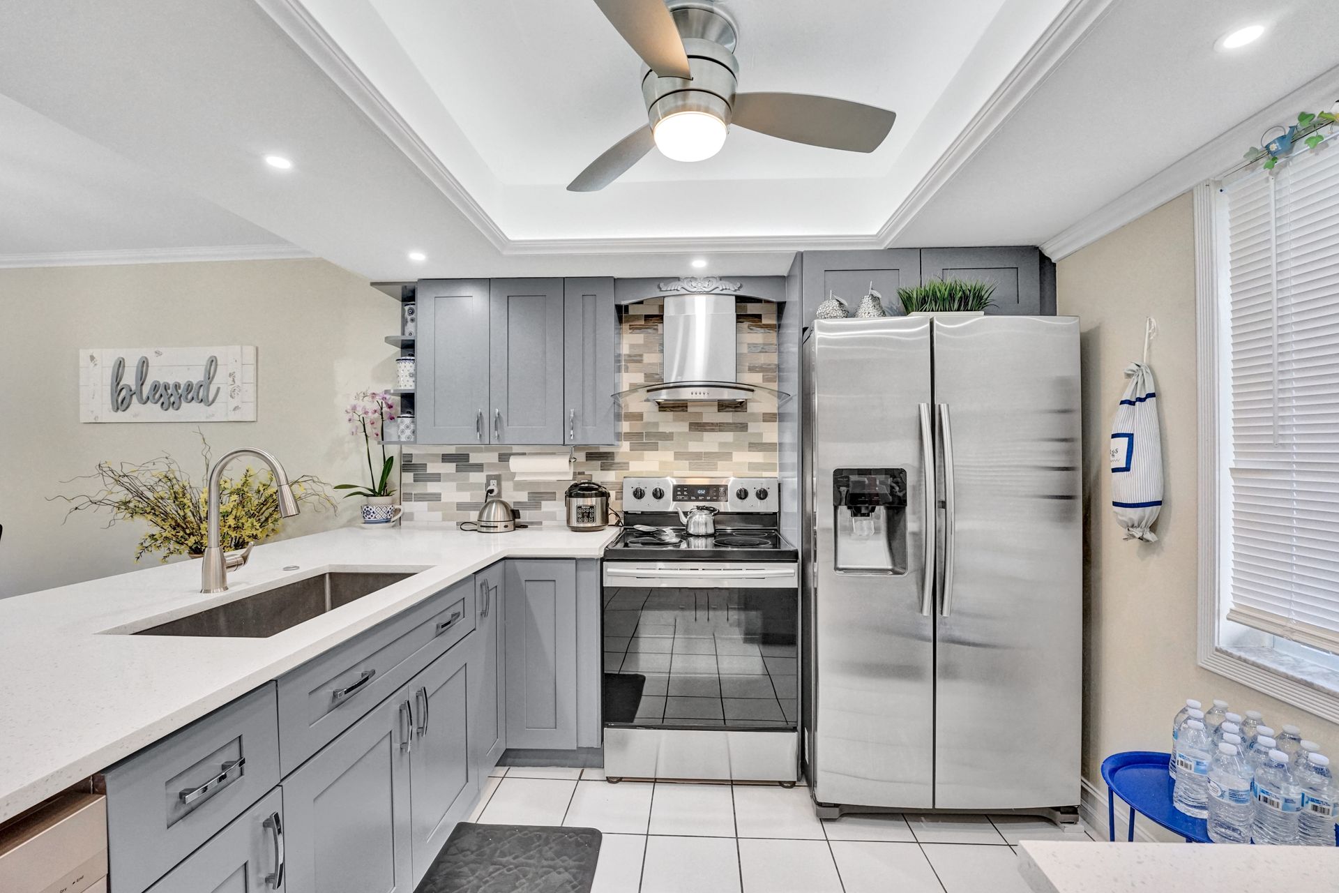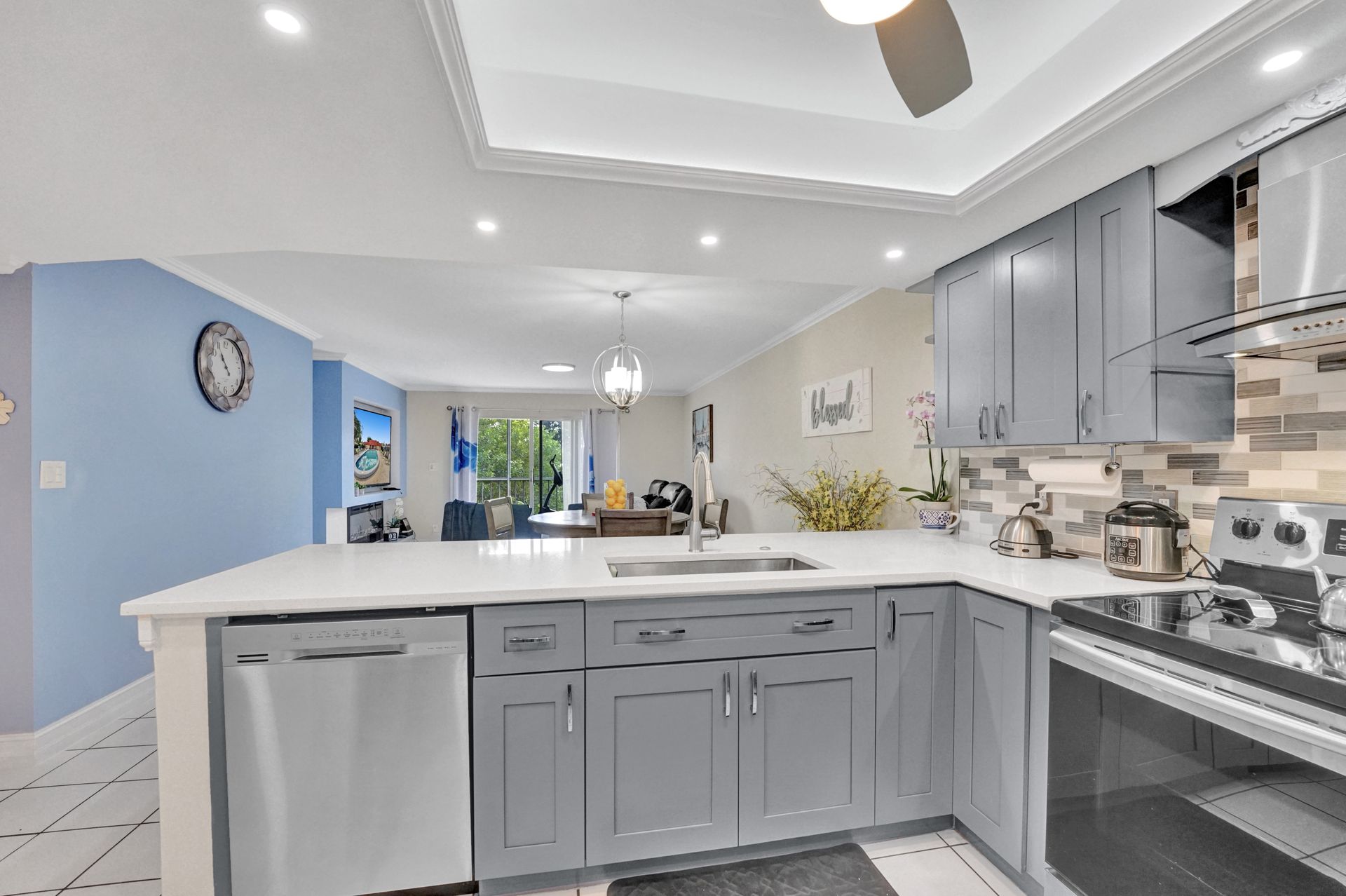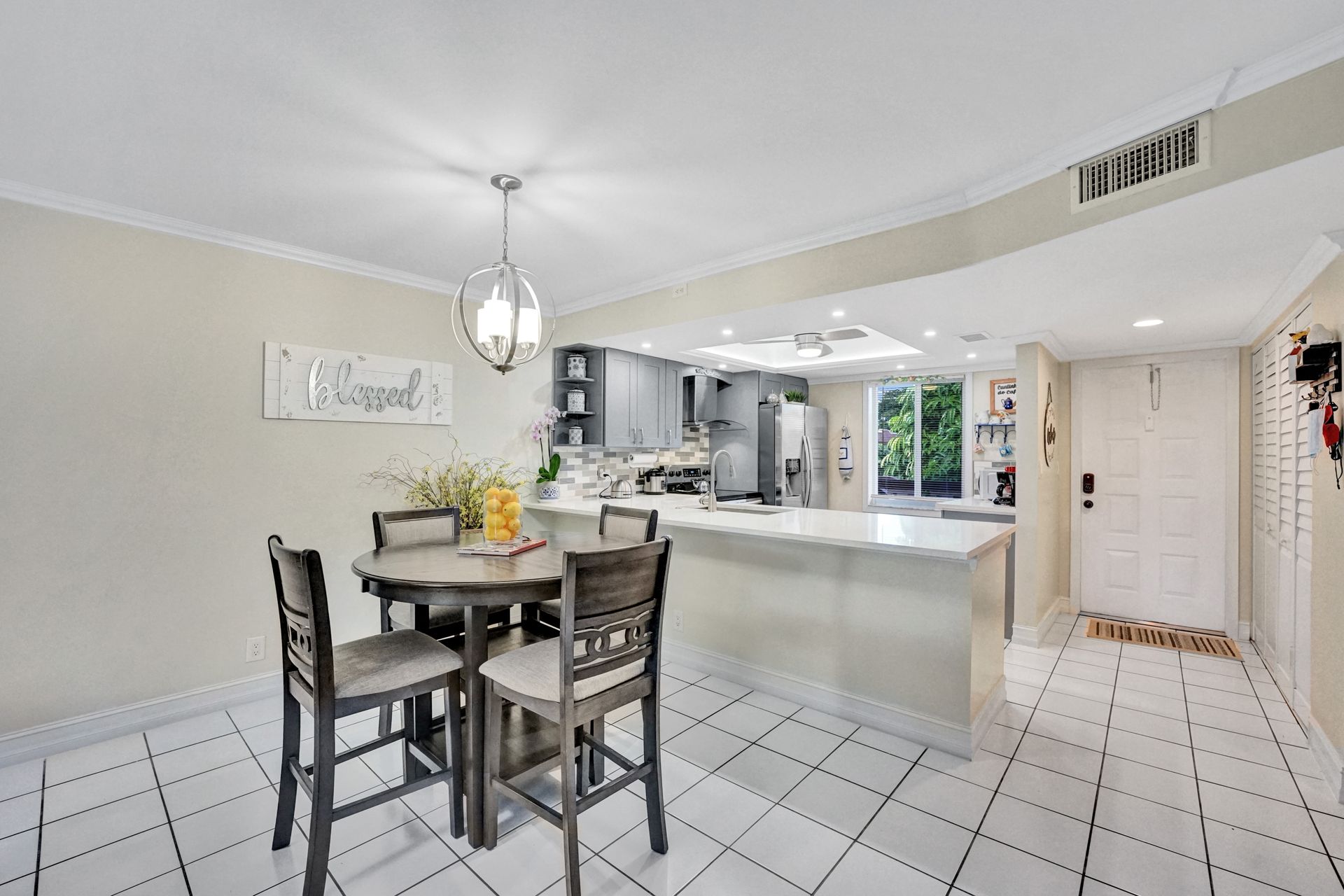 Beautiful completely updated 2 bed/ 2 bath unit overlooking lake and garden. This condo features brand new kitchen, custom cabinets, new appliances, quartz countertops & stylish backsplash tile, crown molding throughout, updated bed & bathrooms, smooth ceilings throughout the unit. Impact windows and doors along with hurricane panels for the sliding glass door to the patio area. Washer and dryer in the unit. Living room tv with custom remote control back lights.. Guest bedroom has custom murphy bed ,making it perfect for work from home office/bedroom. Net wifi control A/C.Master bath has ceiling extractor light and bluetooth speaker. . Community features a Clubhouse, pool, tennis courts, library. Conveniently located near shopping centers, rated A schools, parks and major roads.