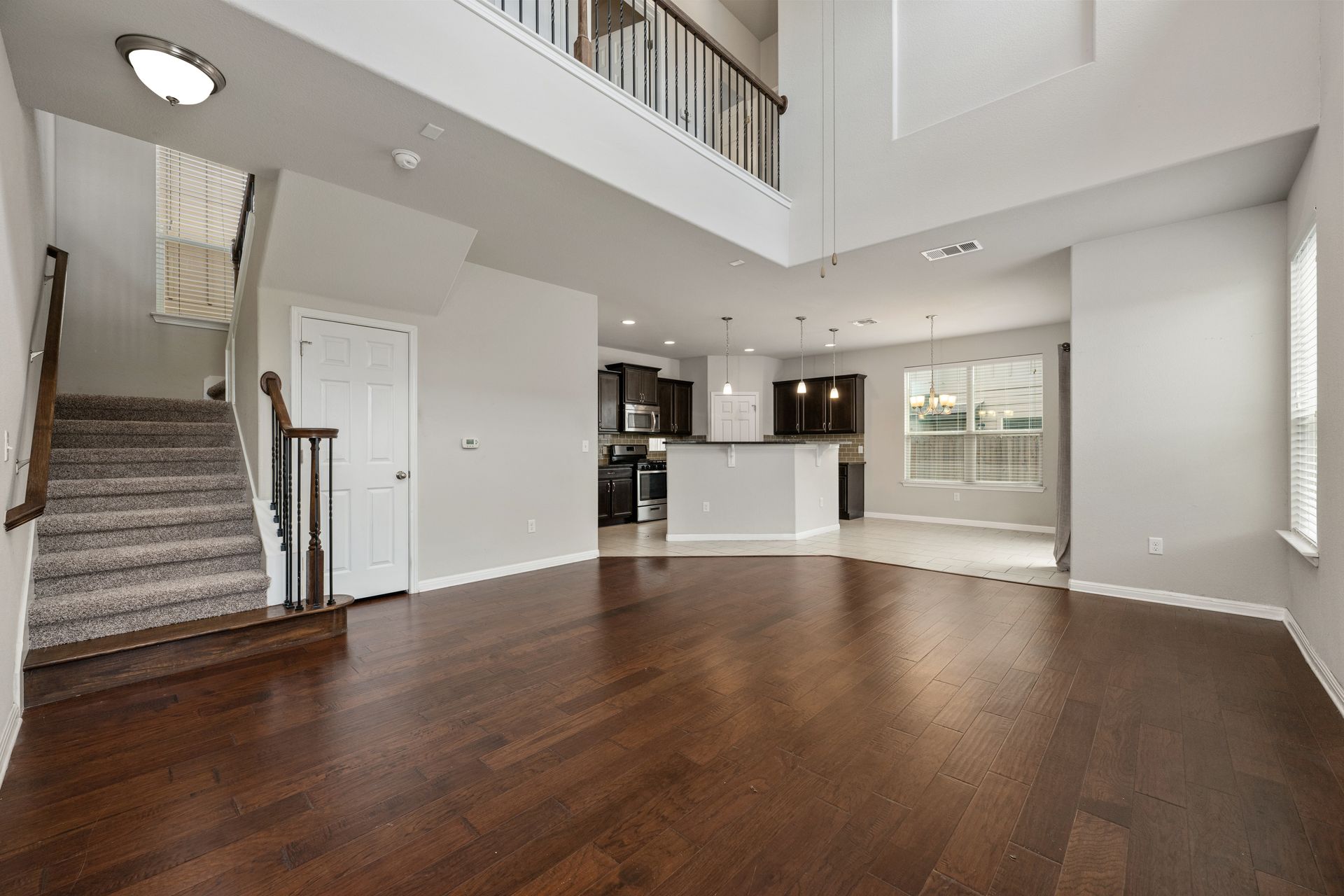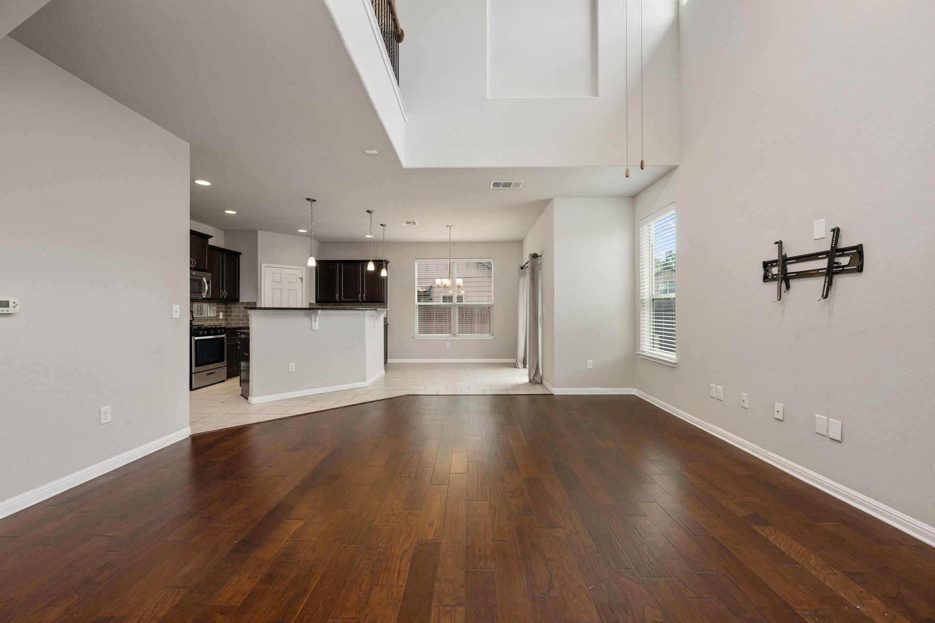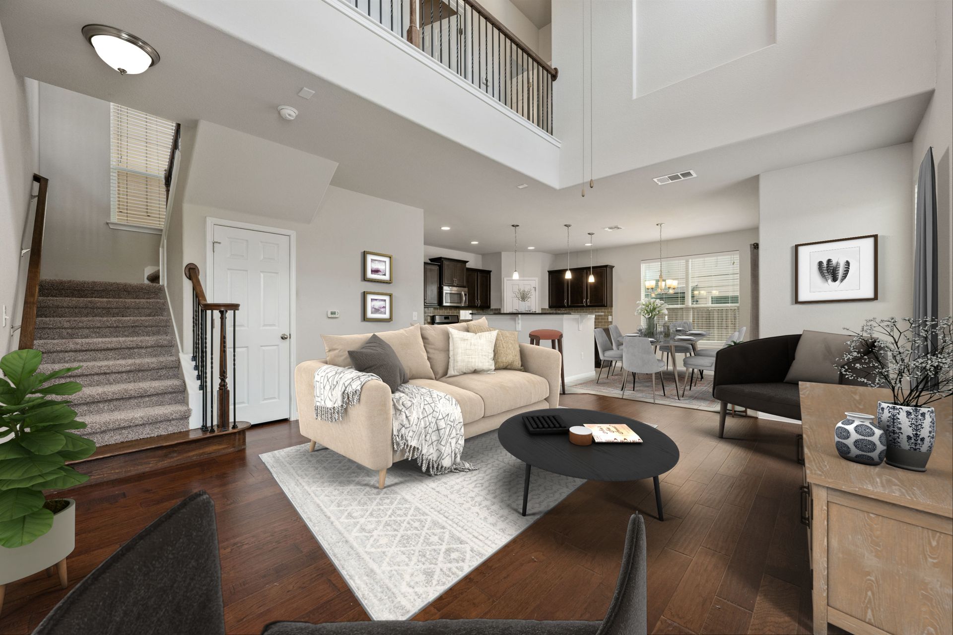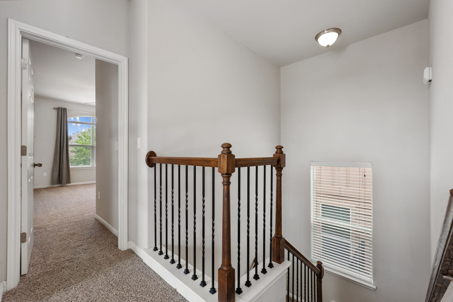 Spanning approximately 1,690 square feet across two well-designed levels, this three bed, two and a half bath San Jacinto plan home boasts nine-foot ceilings, abundant natural light and elegant wood and tile flooring on the lower level, all-new carpet on the upper. The heart of the home features a stylish kitchen with granite countertops, designer subway tile backsplash with windows on one end, stainless steel appliances and a spacious pantry for ample storage.