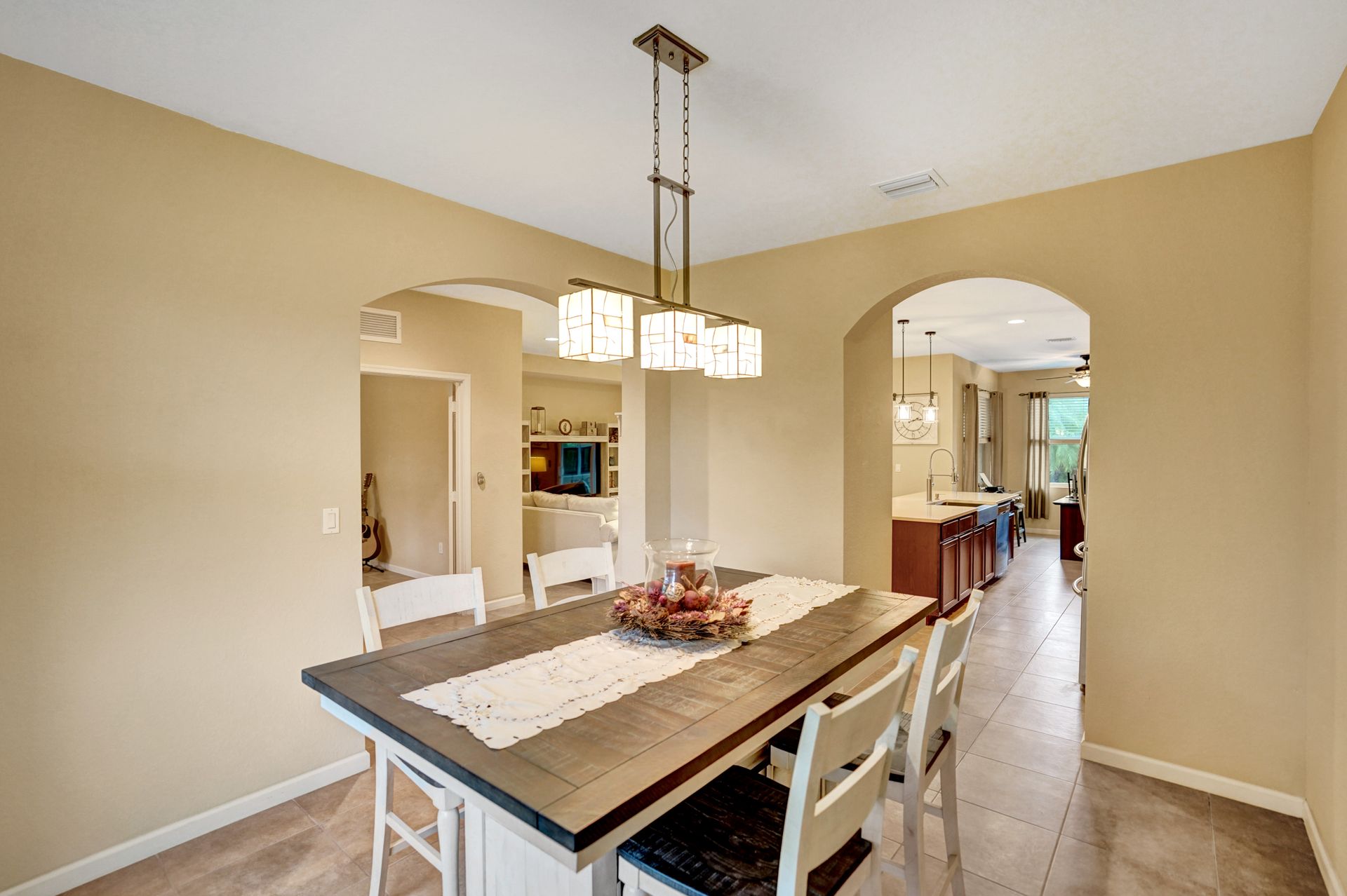 Immaculate pool home with three bedrooms plus den on a large corner lot. Upgraded kitchen showcases a newly redesigned expansive quartz center island and counters that overlook the eat-in kitchen nook and family room. Open concept floor plan that flows from room to room for easy entertaining and relaxed living. The primary bedroom and family room overlook the private backyard and sparkling pool highlighted with waterfall and sunning shelf features. The low HOA fee covers landscaping, irrigation, park-like settings, pickleball and tennis courts. At price, this move-in-ready home comes with a 1-year American Home Shield home warranty.