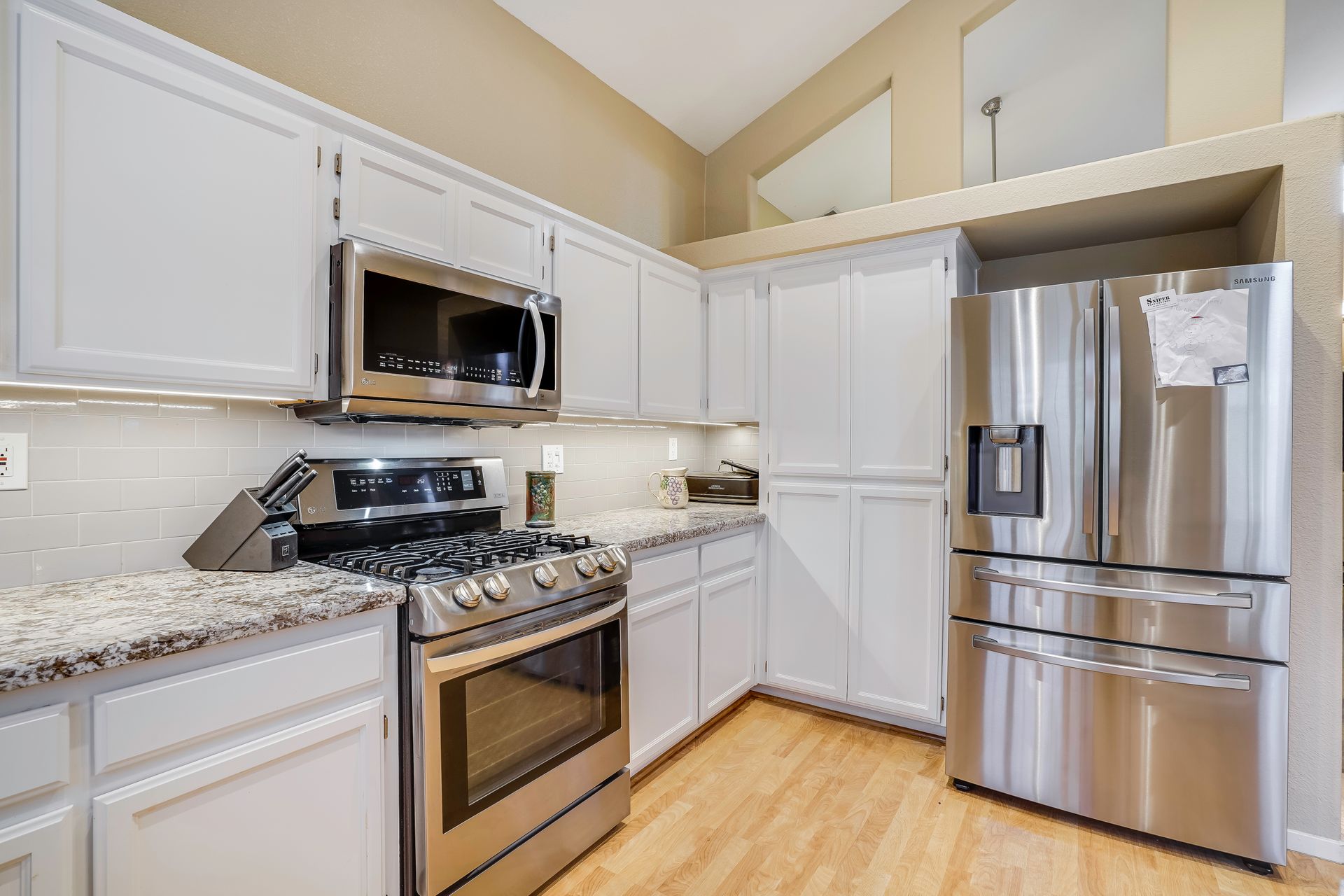 This stunning home is in the Prestigious Lakeside Community that offers a clubhouse, pool, picnic area overlooking the lake plus many more amenities! Located in a gated development just moments away from Stonelake Elementary School! The home boasts approximately 1896 square feet, 3 bedrooms and a loft. It is open, bright, spacious & tons of windows! The gourmet open kitchen features beautiful granite slab counters, subway tile backsplash, refinished white cabinetry, and stainless-steel appliances, & tons of storage! Upgrades include new furnace just installed 2/1/2021, plantation shutters, Anderson sliding door, and more! It has a separate living and dining room & an over-sized family room! Master suite with 2 closets! It offers a huge laundry room with sink, built-in cabinets & an additional storage closet! Enjoy the landscaped backyard with nice sized storage shed & covered patio ideal for entertaining or relaxing!