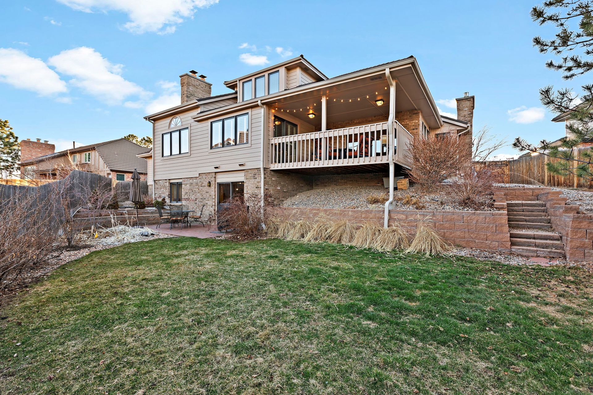 Amazing opportunity to join this prestigious 58 home community in the heart of Lone Tree! The sellers made thoughtful investments to update and upgrade this home. The main level owner’s suite includes space for a private sitting area, a recently remodeled bath and a walk-in closet. Adjacent is the office. Enjoy the living room with a fireplace. The formal dining room is tucked into the far end of the living room. The gourmet kitchen features stainless steel appliances, a double oven, newer solid slab granite countertops and backsplash. The family room has a gas fireplace. Upstairs, a second suite includes a remodeled, three-fourths bath. Two more bedrooms share an updated hall bath. The finished, walk-out basement features huge spaces, a pocket office, a remodeled three-fourths bath and a large bedroom. This home is complete with a patio and a covered back deck. Lone Tree offers multiple community pools and rec centers, along with close proximity to dining, shopping and paved trails. HOA is $100/year, voluntary! 1 year AHS Shield Plus Home warranty included!