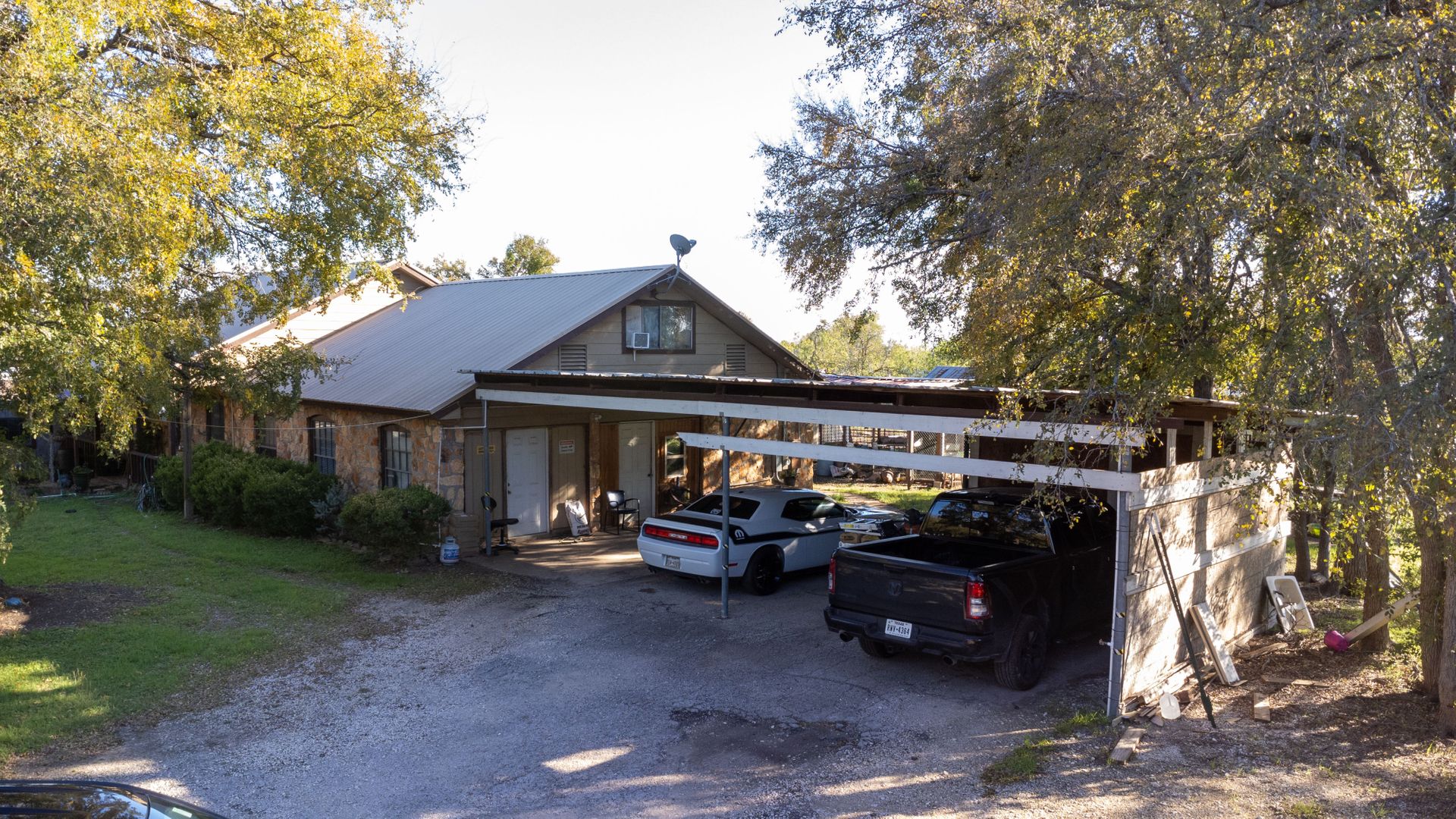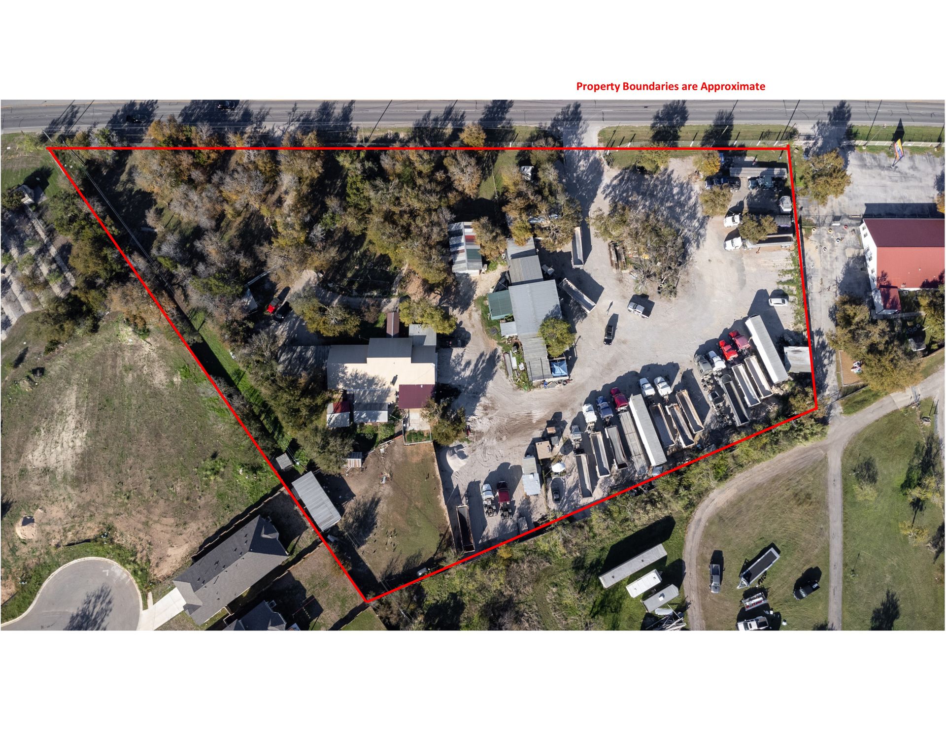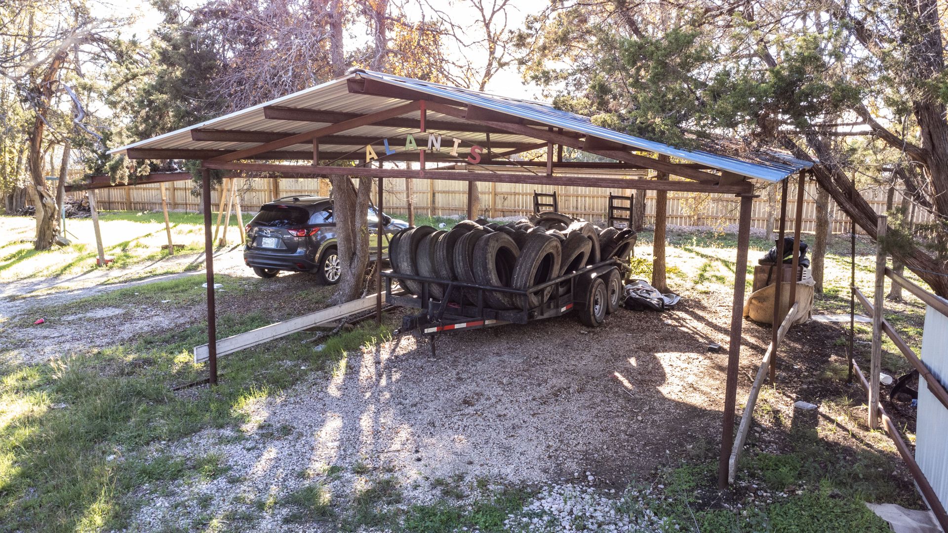 Fully fenced with two entry gates. Egress/Ingress that is utilized for current business and residence, and gravel lot for ample parking. Onsite there are eight covered carports in addition to a garage as well. Buyer and buyer's agent to verify all data.
