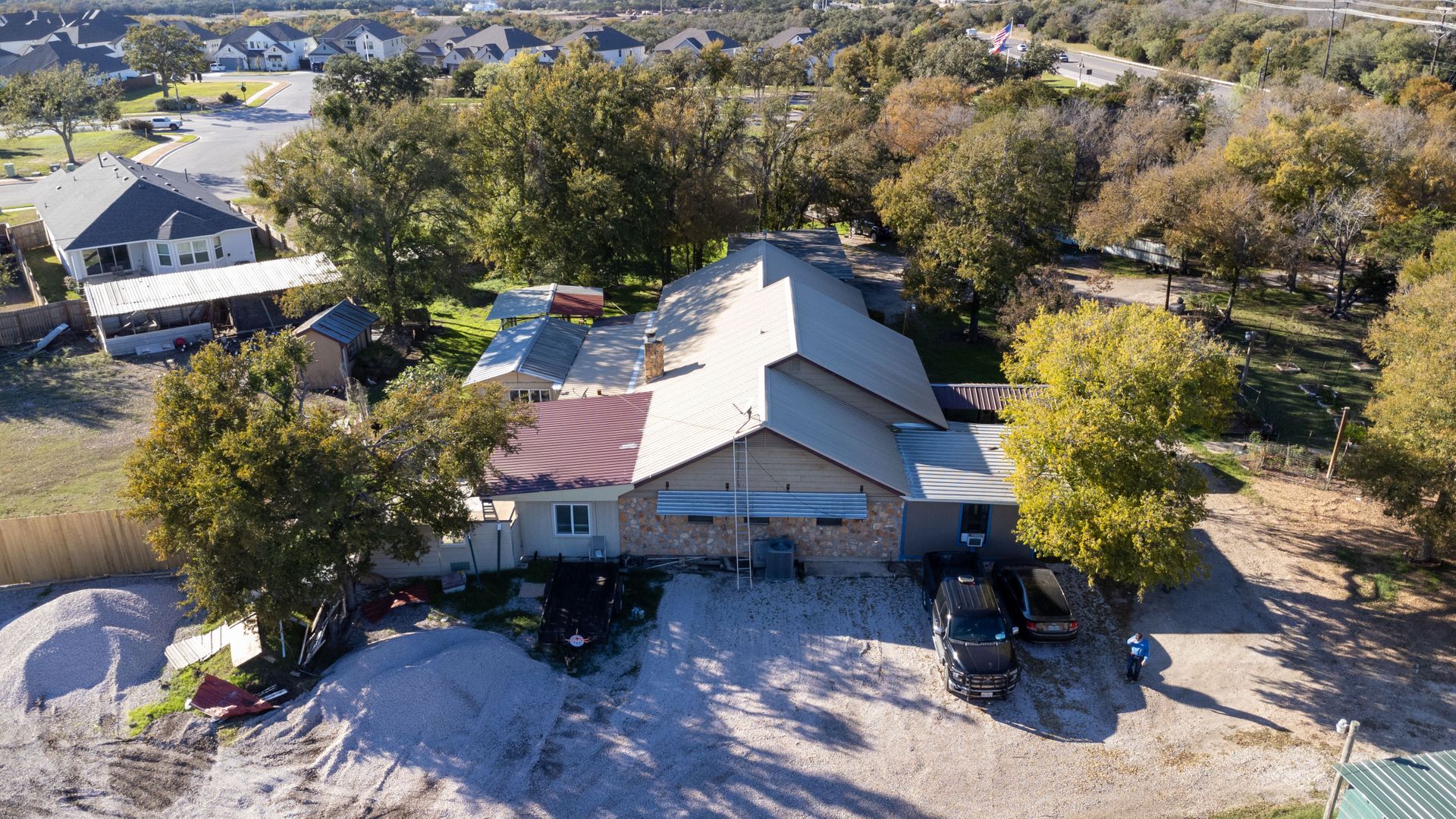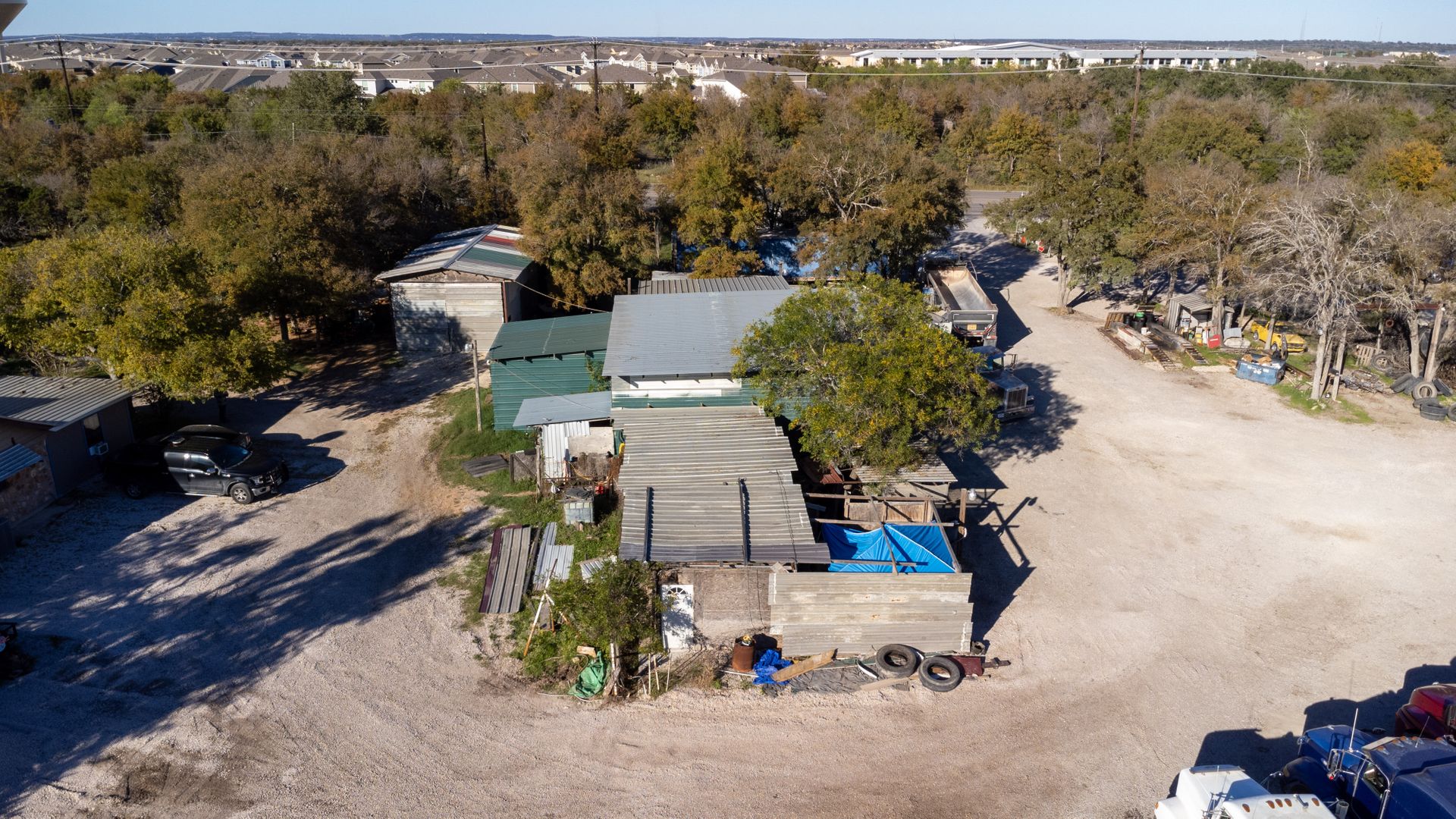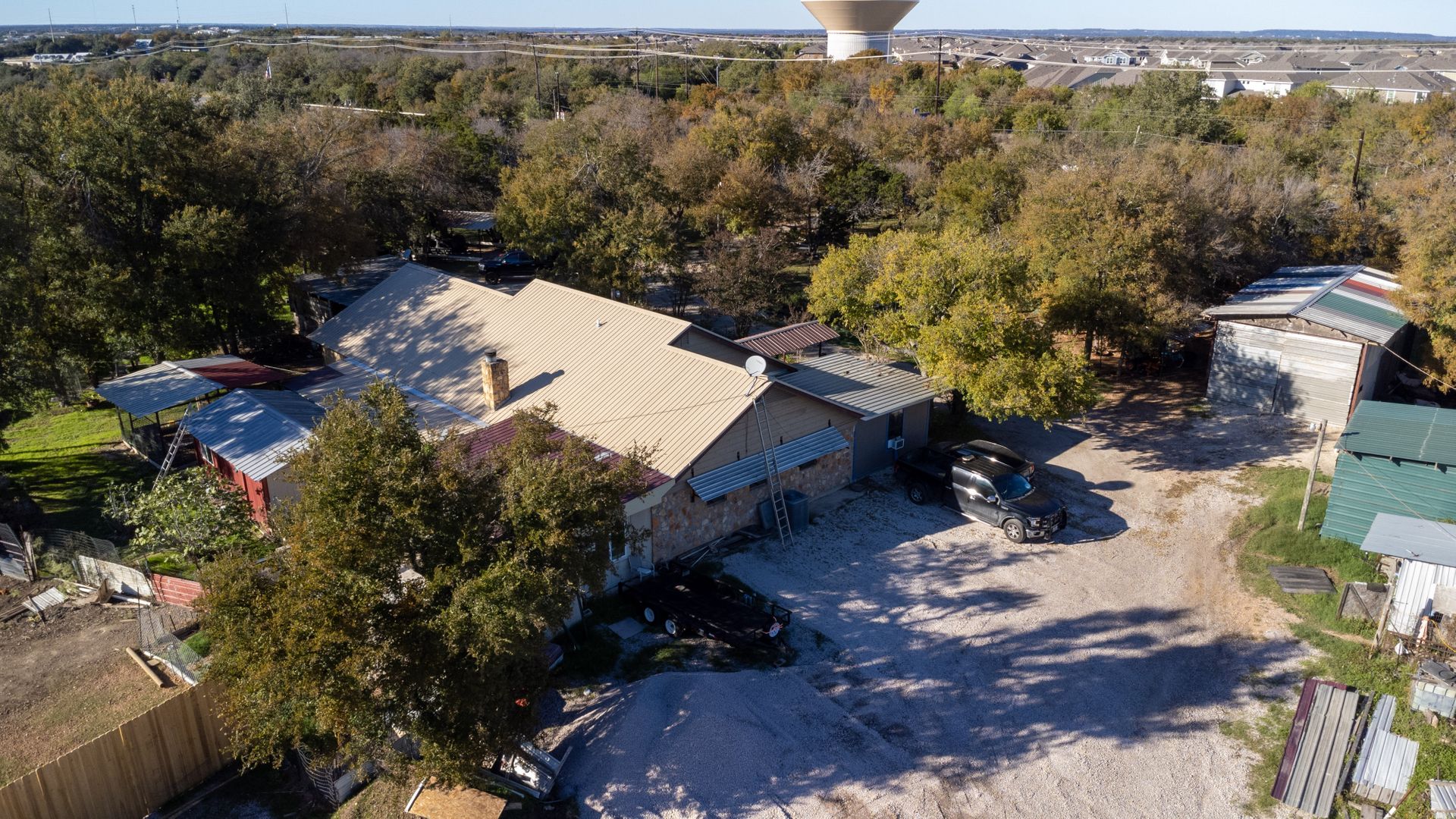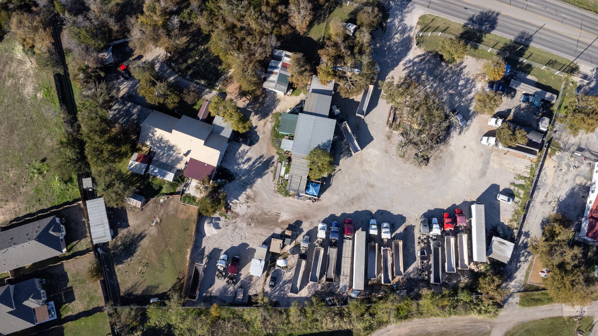 Fully fenced with two entry gates. Egress/Ingress that is utilized for current business and residence, and gravel lot for ample parking. Onsite there are eight covered carports in addition to a garage as well. Buyer and buyer's agent to verify all data.