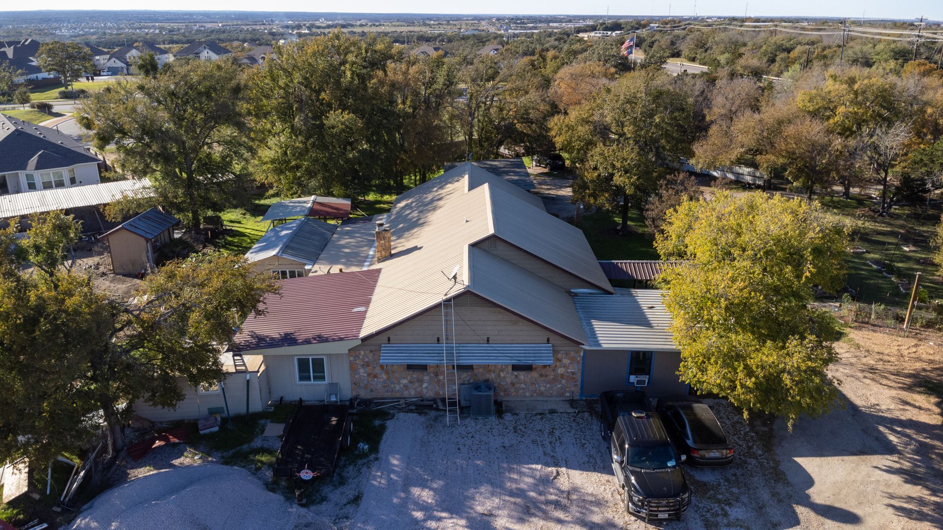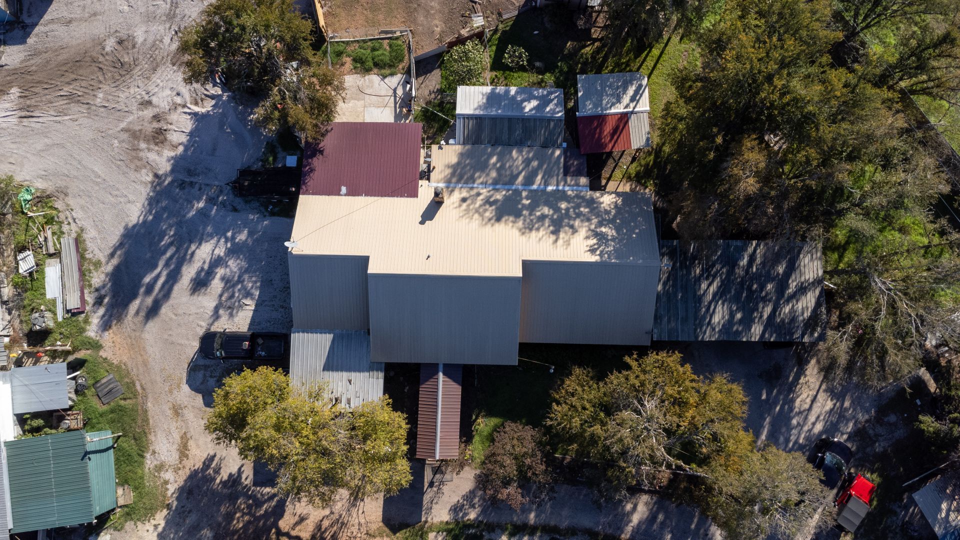 Large home/office with open layout and new five ton HVAC 2023, which is currently used as a residence, in addition to multiple storage buildings/workshops.