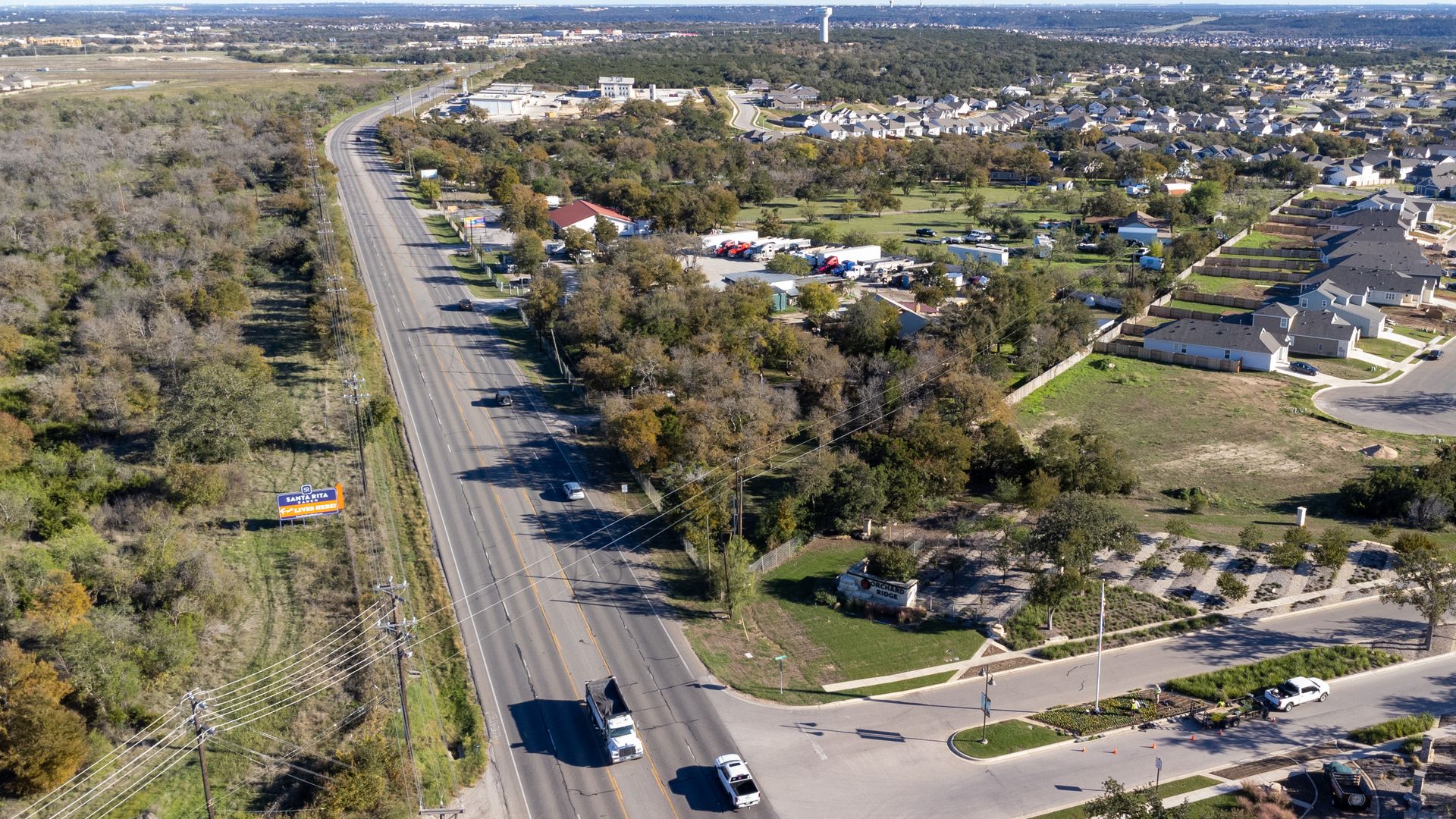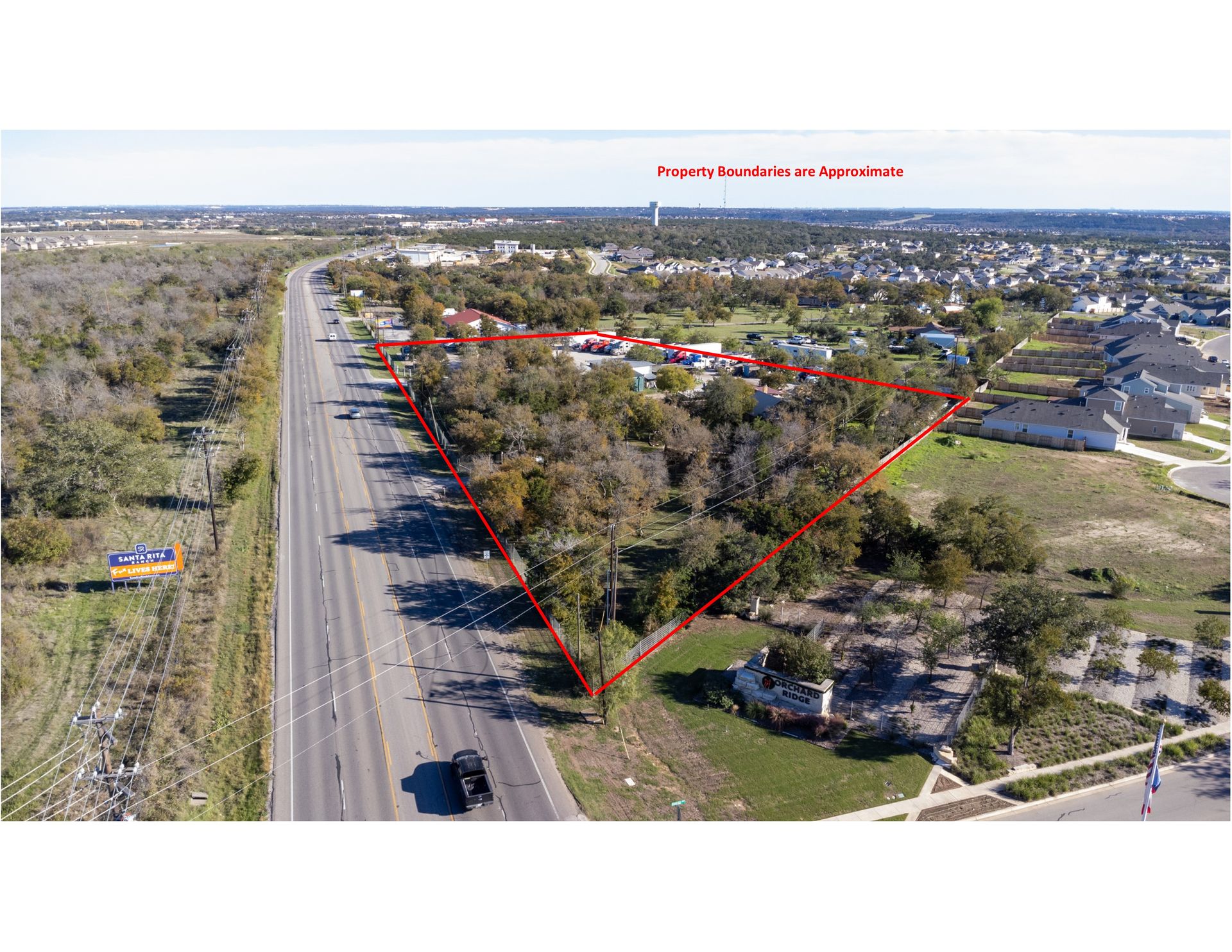 Prime location between 183/Seward Junction and Ronald Reagan Blvd, cornering Orchard Ridge Subdivision entry. Property is located in Liberty Hill ETJ, NO ZONING at this time.
