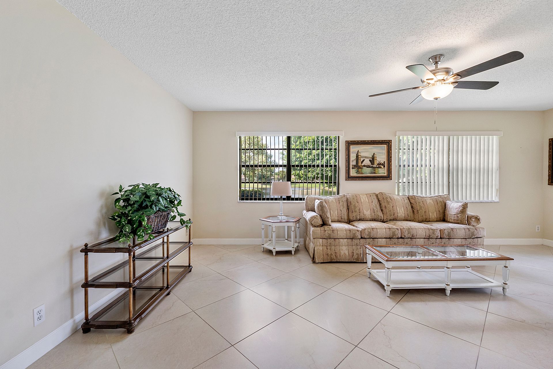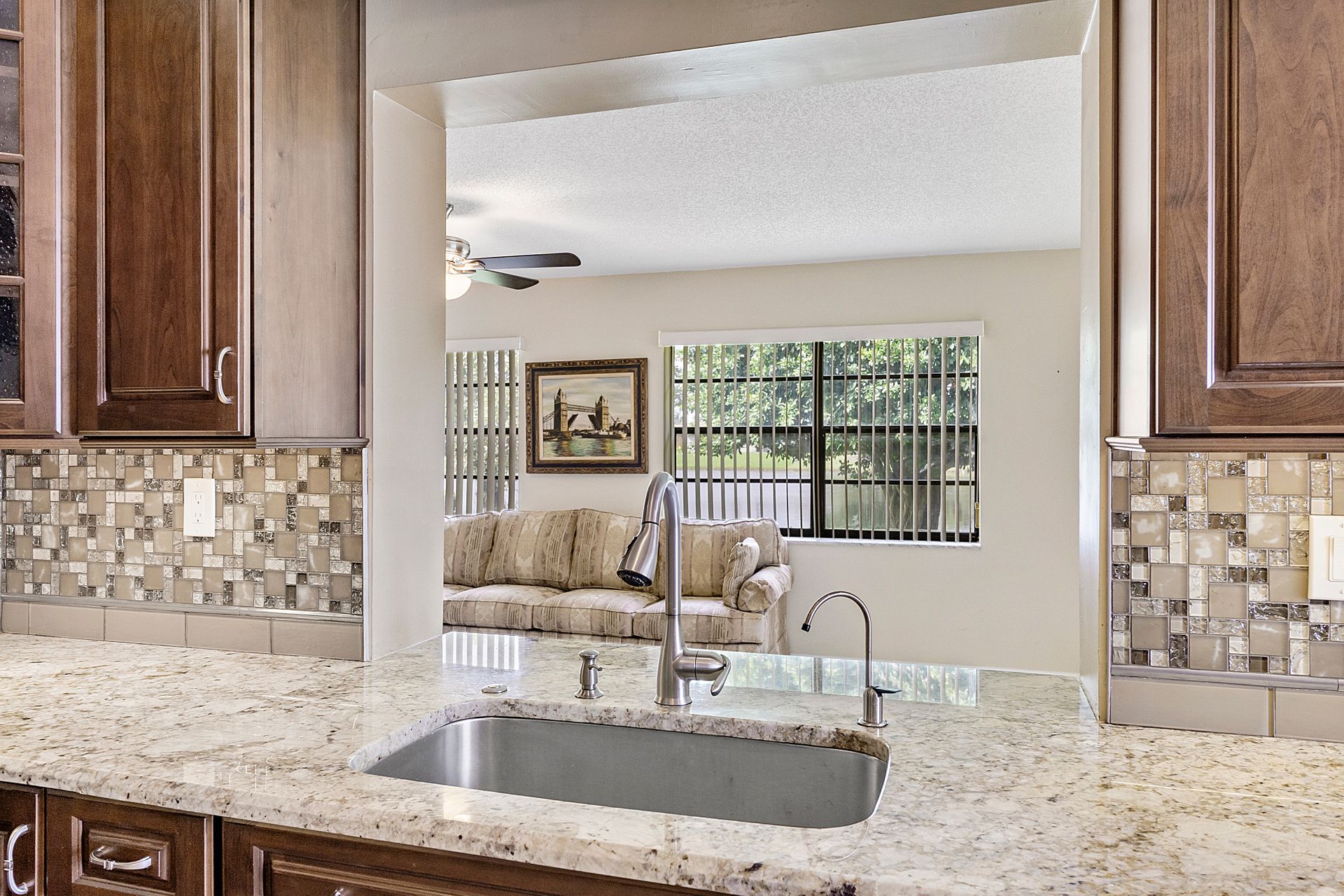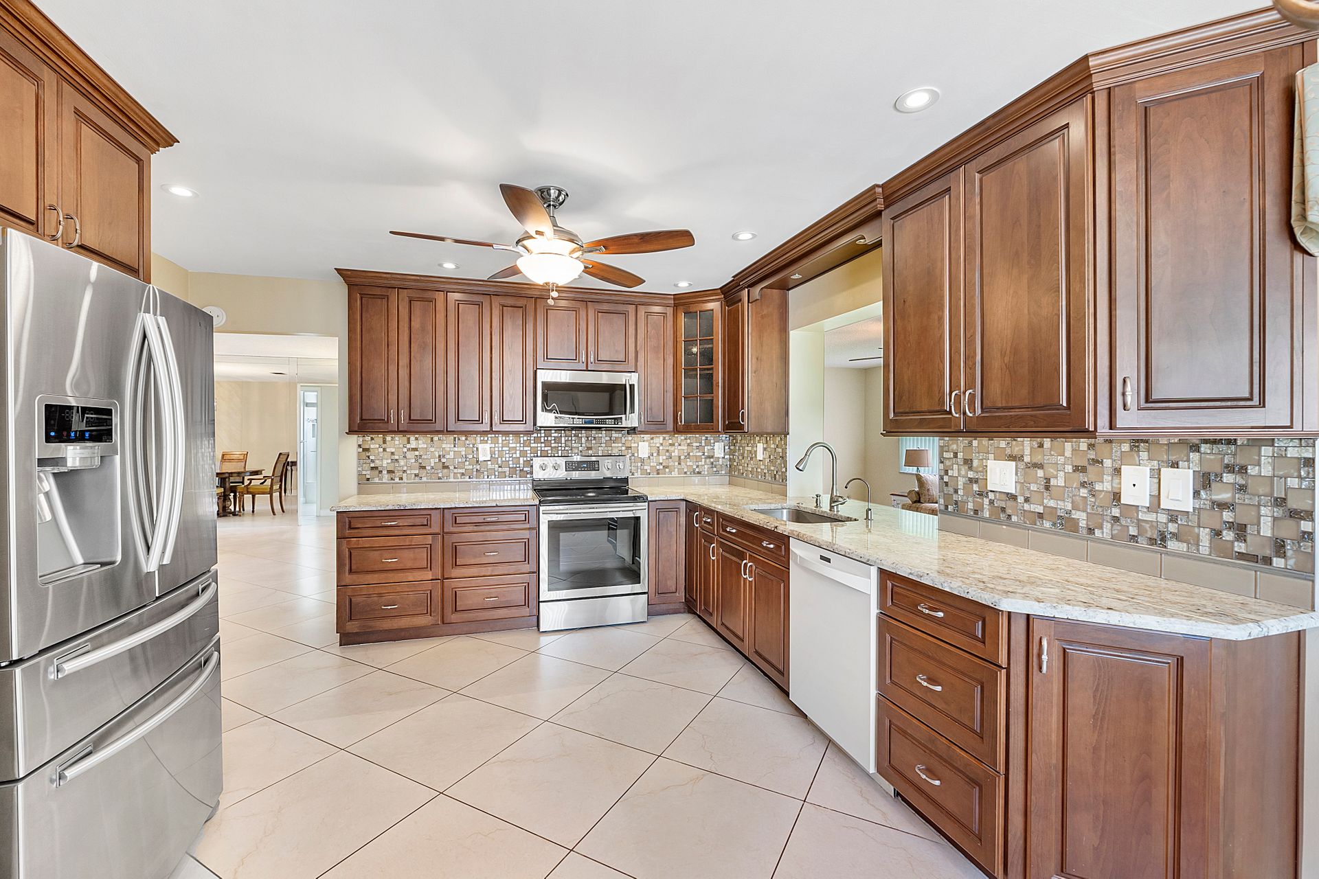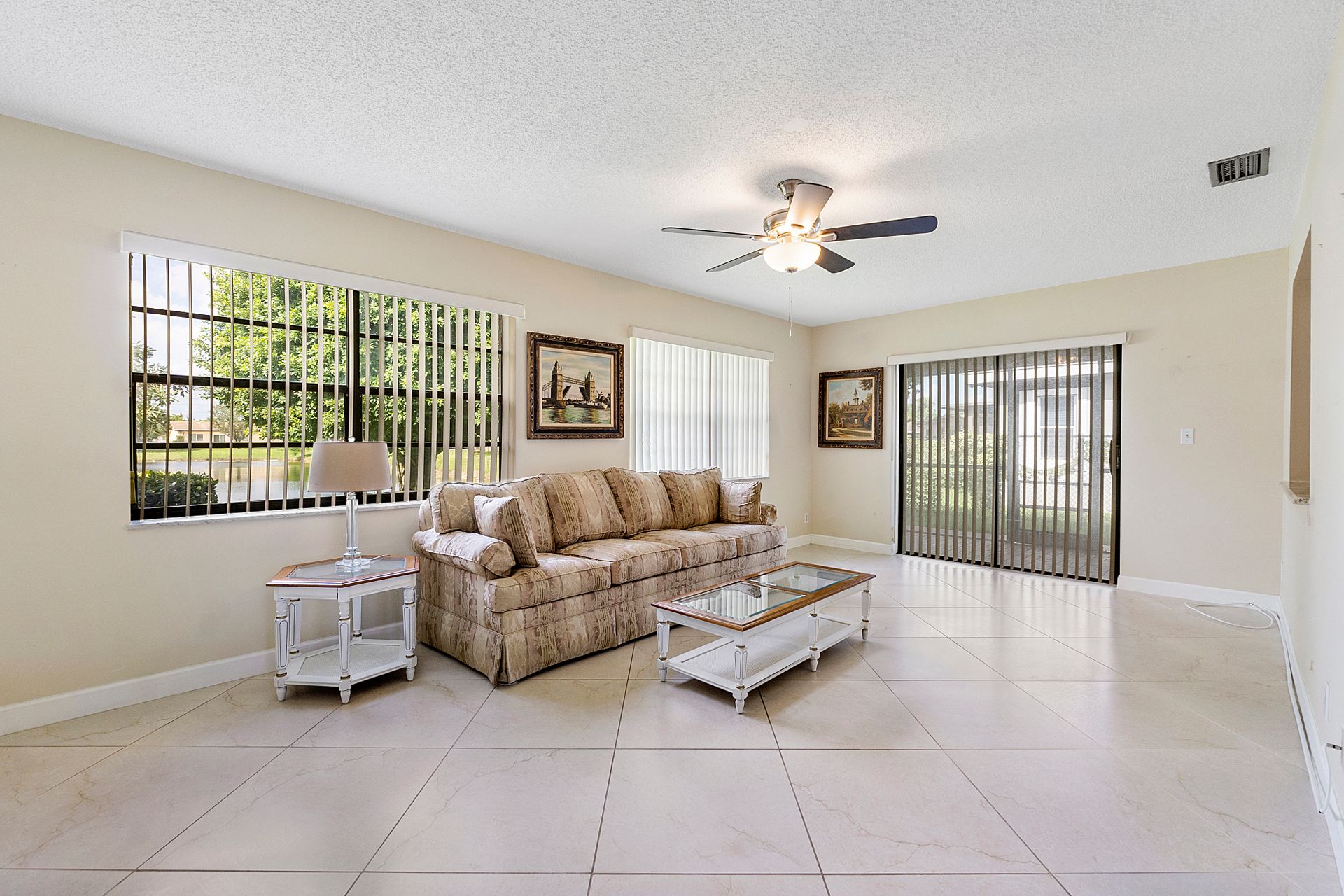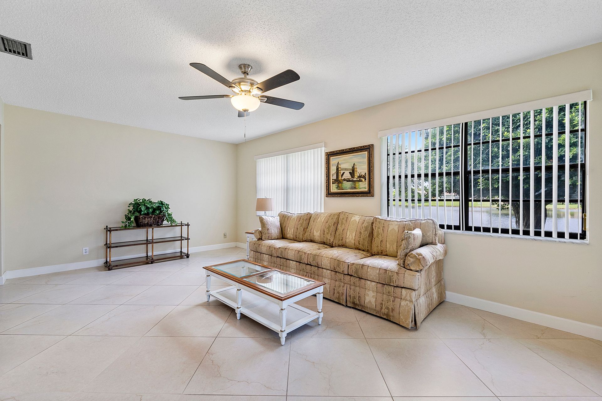 This two bedroom, two bathroom home is situated on a tranquil lake and features an updated kitchen and bathrooms.
