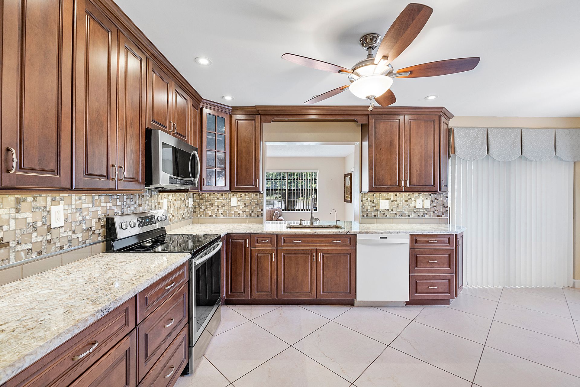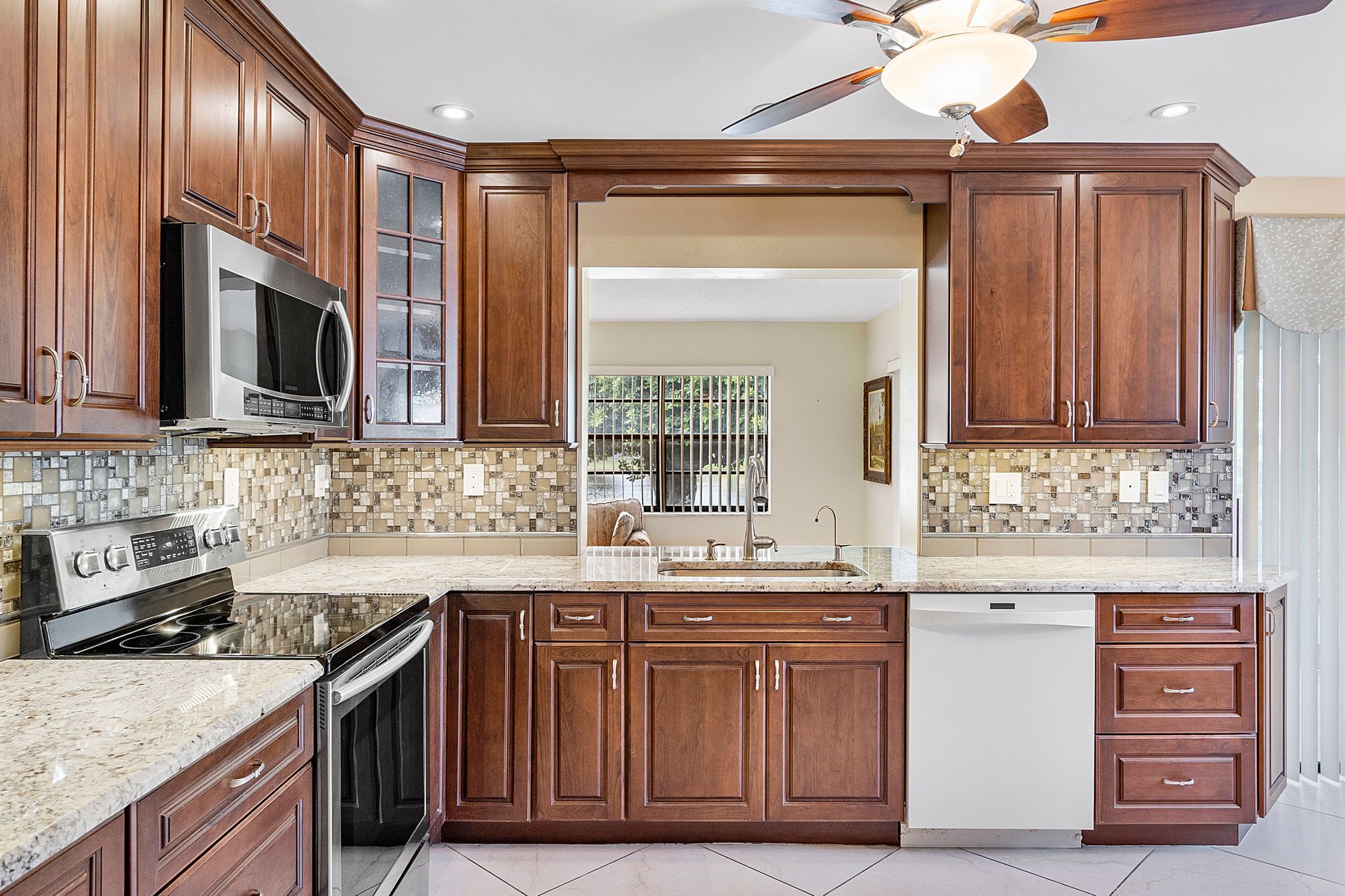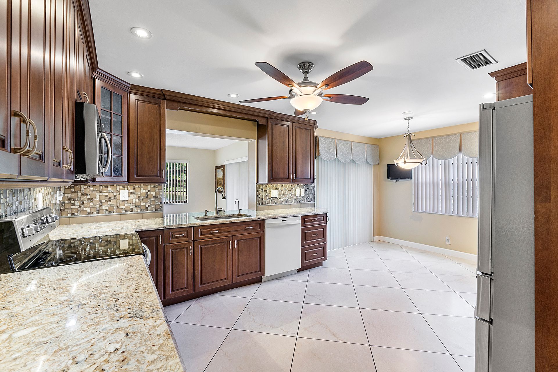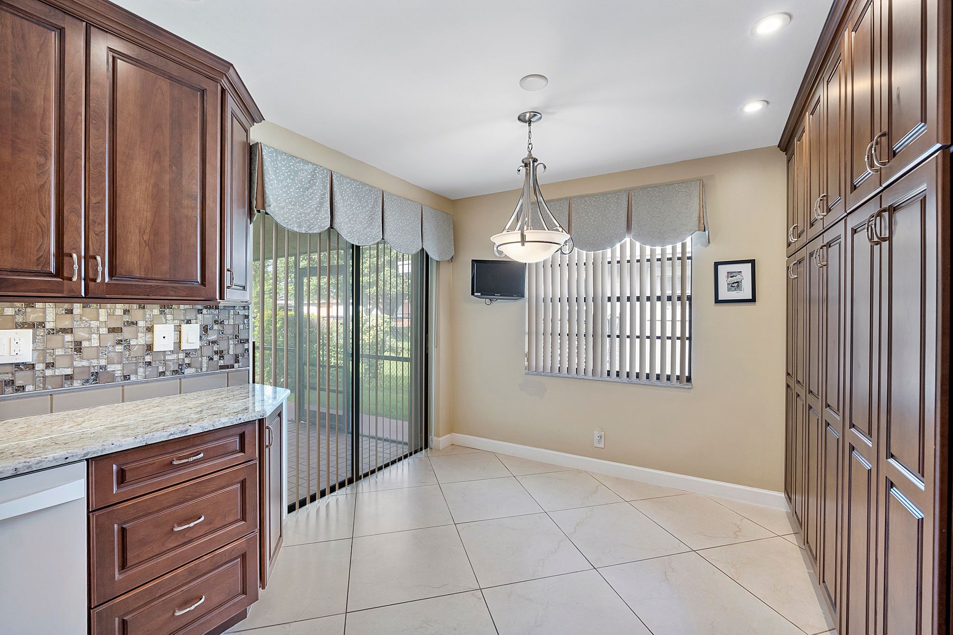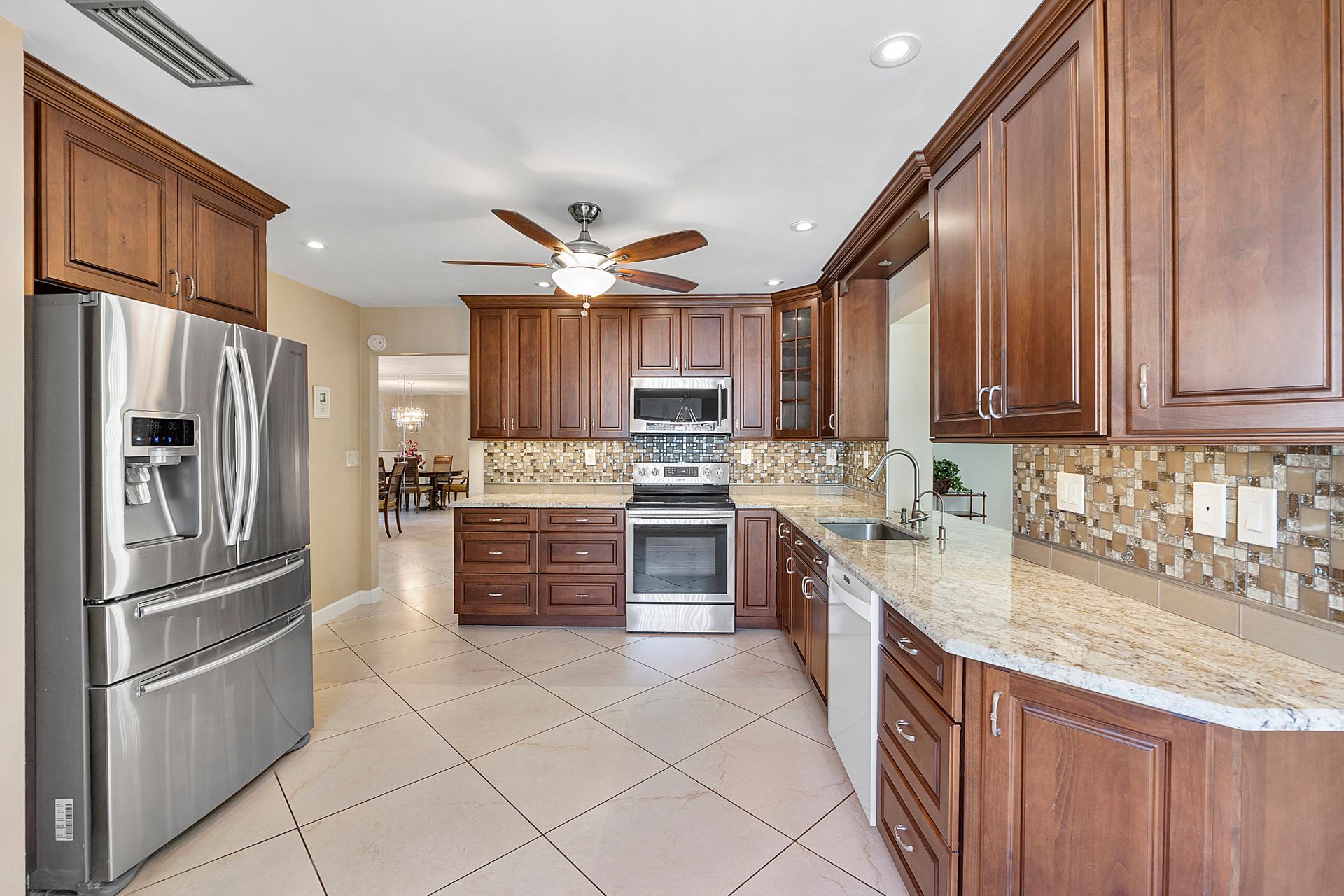 This two bedroom, two bathroom home is situated on a tranquil lake and features an updated kitchen and bathrooms.