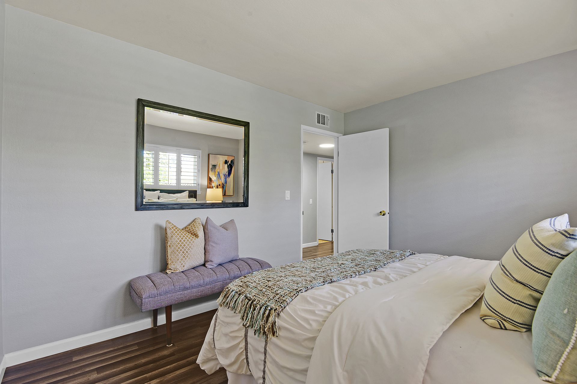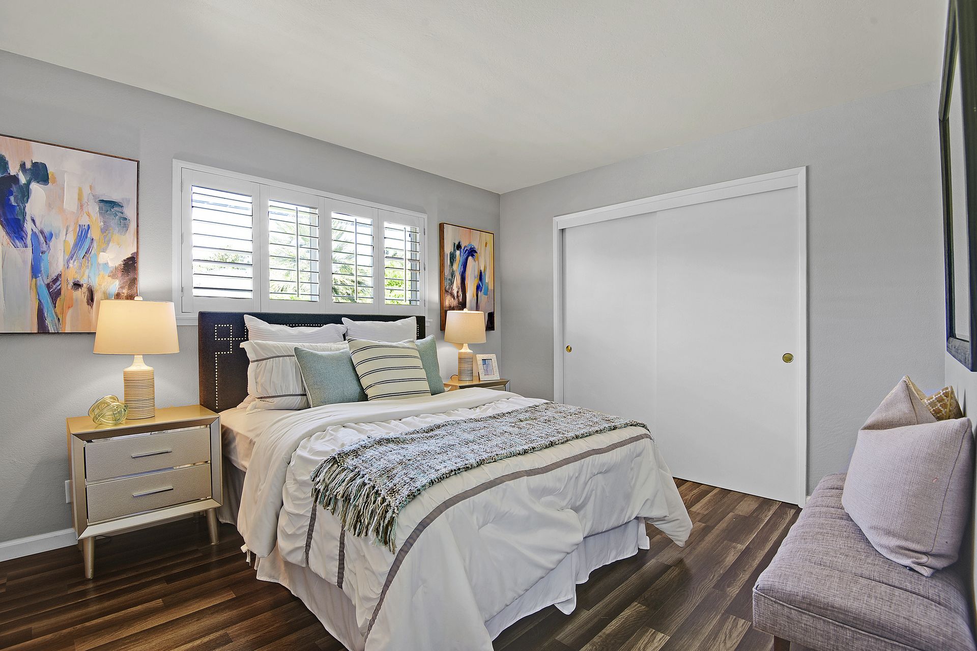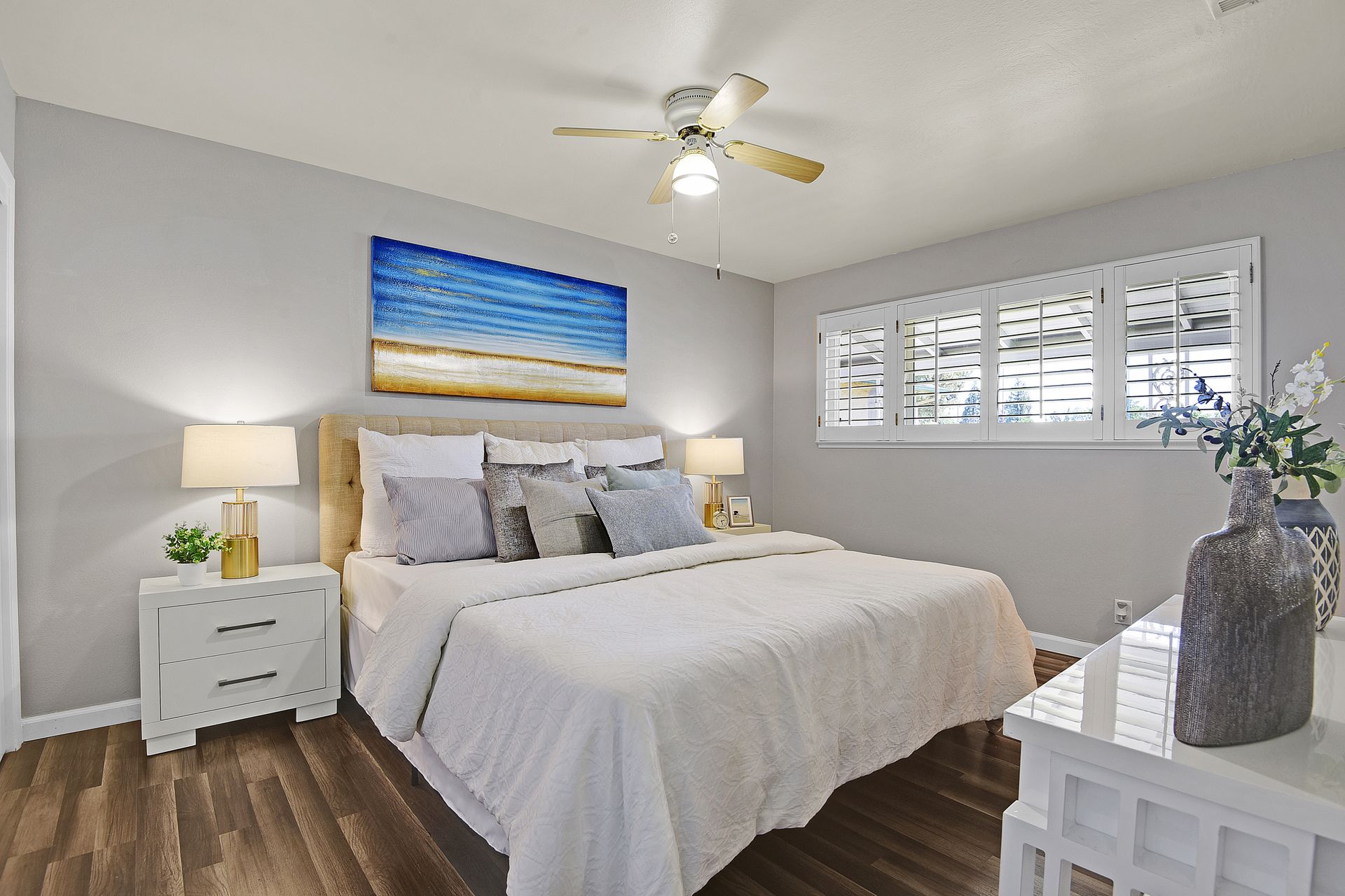 Do not miss your opportunity to purchase this Santa Clara Ranch style home nestled in the heart of the Birdland neighborhood! This three bedroom two bathroom property features a galley kitchen and updated bathrooms. A skylight brightens the spacious family room which could be an ideal home office. The combination living room and dining room is bathed in abundant natural light and looks out into your private backyard. Plantation shutters, double pane windows, new exterior paint, Air conditioning, and new flooring throughout just begin to highlight some of the outstanding features of this home. Beautiful landscaping in the front and back yard is great for entertaining. A prime location just steps from the desired award winning Laurelwood Elementary School, a member of the prestigious Santa Clara Unified School district, Full Circle Farm, 99 Ranch Market, Kaiser, Sunnyvale Soccer Complex, Raynor Park, World famous Santa Clara Swim Club, and short walk to the Apple Spaceship campus. Nearby is Main Street Cupertino and the attractive tree-lined streets of Downtown Sunnyvale.