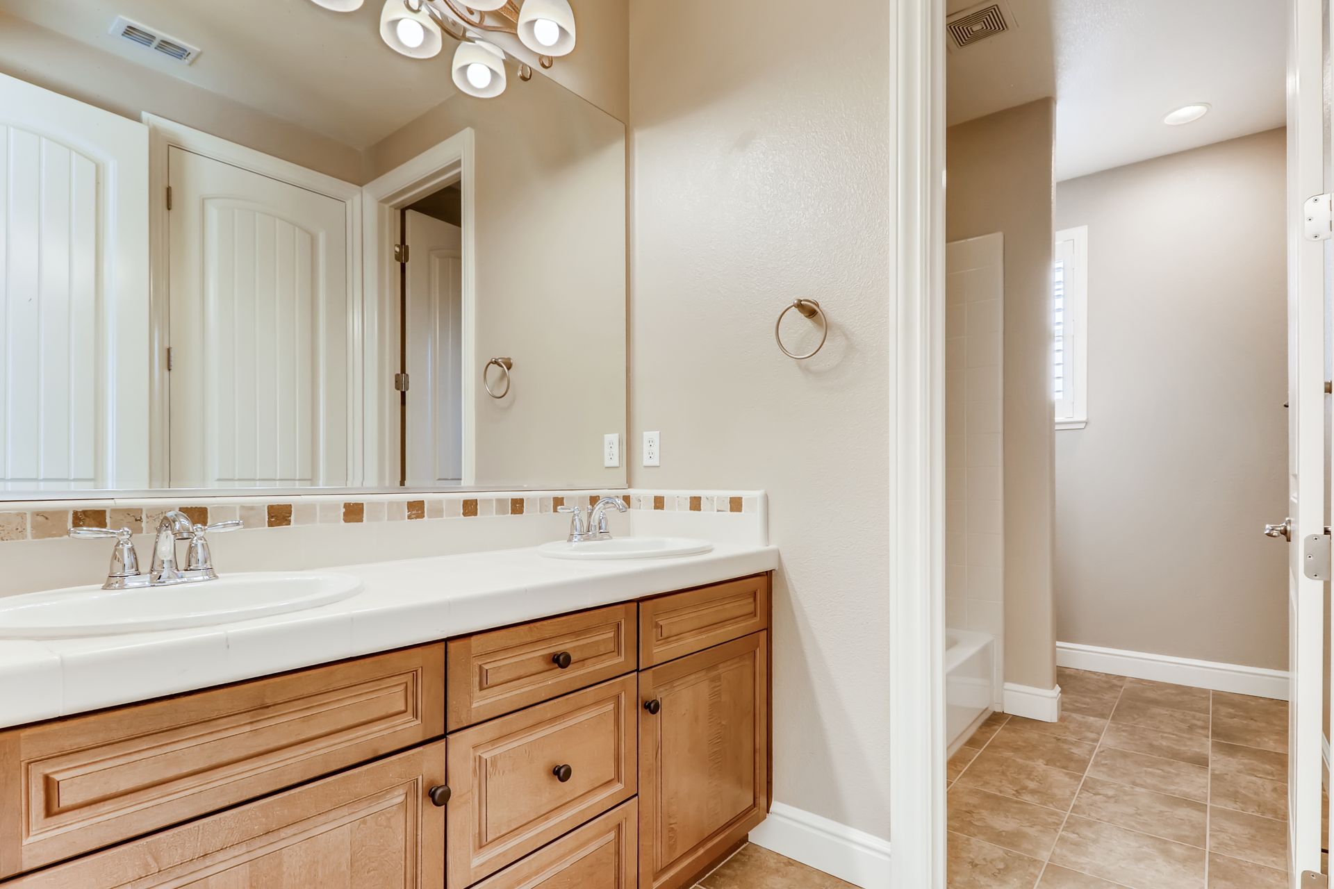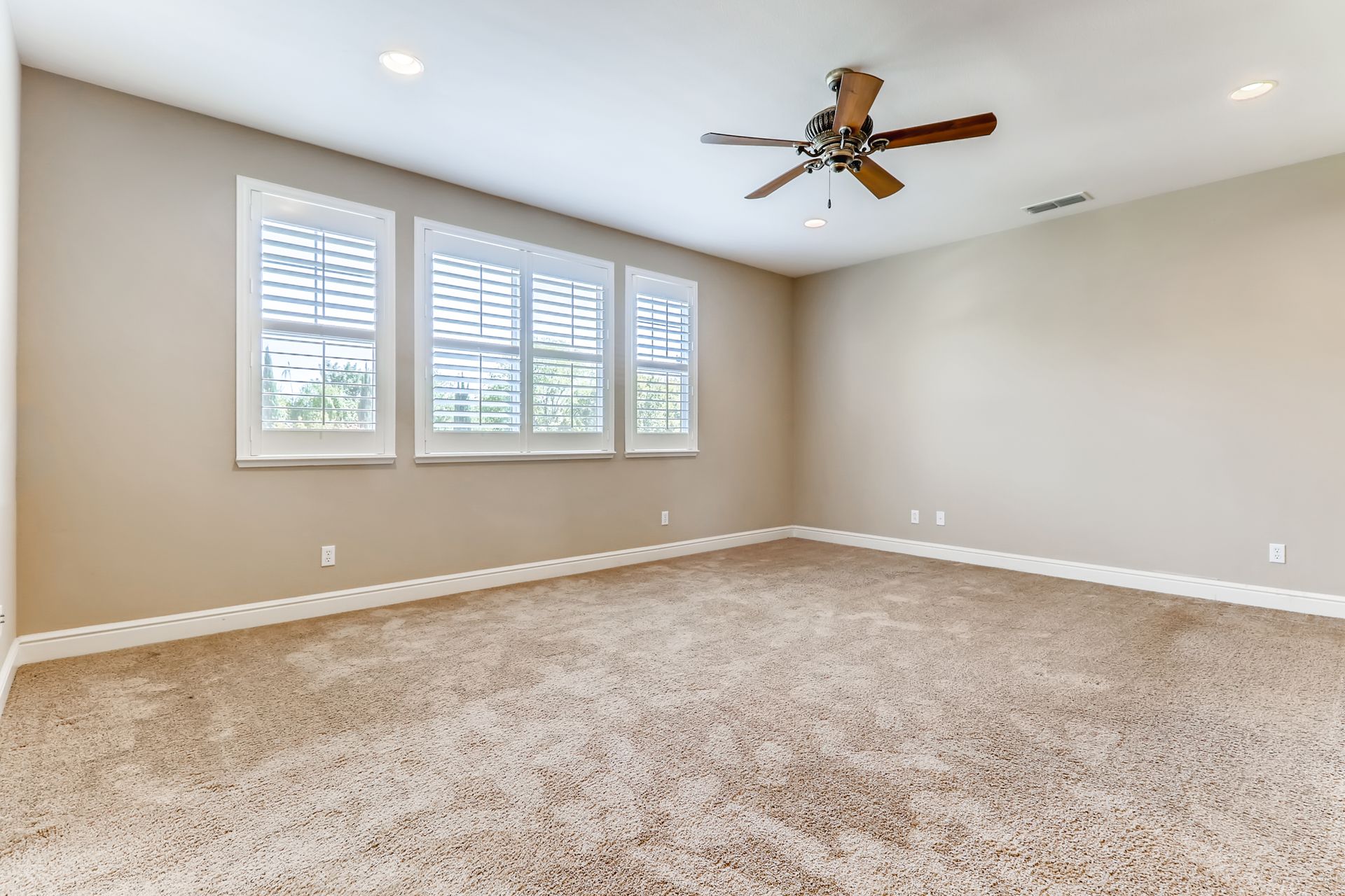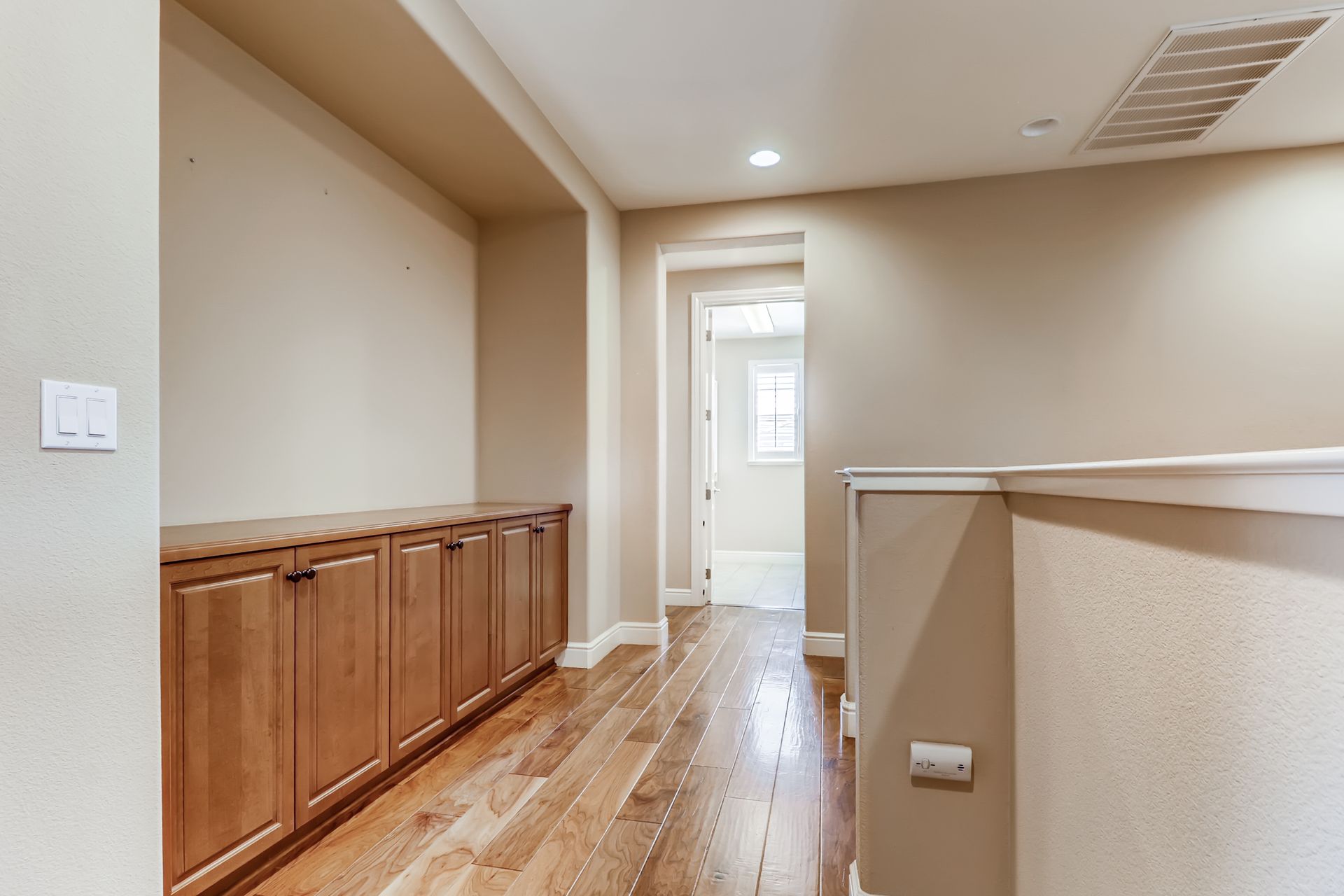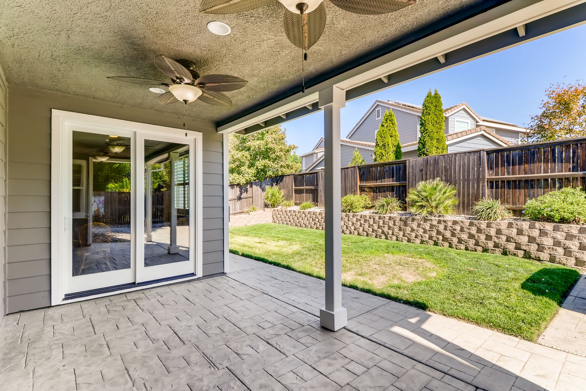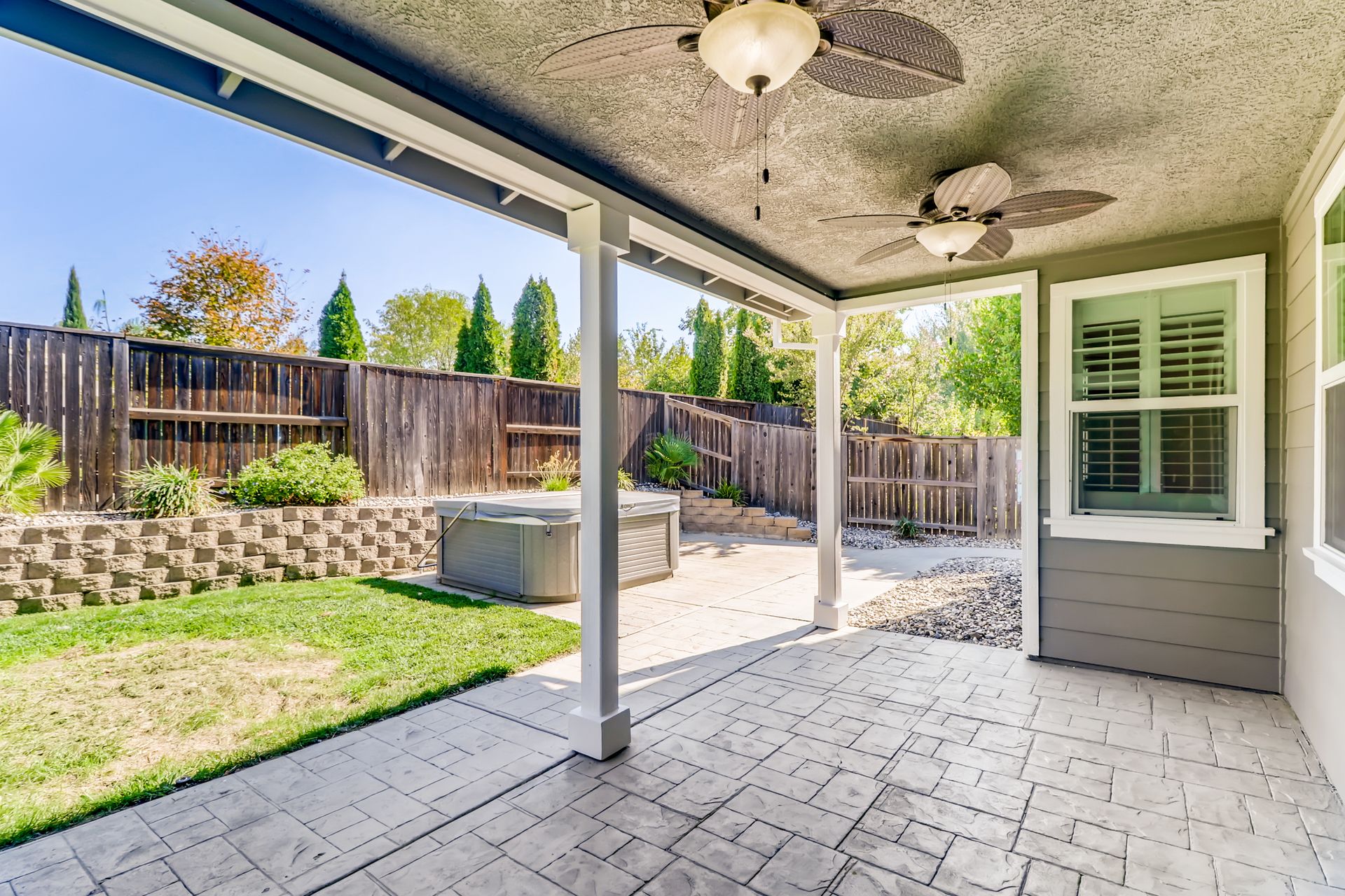 Home shows like a model! Gated courtyard in front of home, surrounding concrete hand stamped with a custom sea-shell design, and a long lasting tile roof. Recently painted both inside and out. Enjoy amazingly low utility bills, own your own solar and no Mello-Roos. This elegant home features over $100k in upgrades throughout such as a formal living with hand scraped walnut wood flooring, a vaulted ceiling, the separate dining room just off the grand hall, a dramatic hardwood staircase with custom iron work and wood banisters, large designer tile flooring, 5 inch wide baseboards and oversized front door. An entertainer's dream kitchen features maple cabinets w/toffee stain & old antique hardware, built in stainless steel appliances, a 5 burner gas range, Granite counters w/tumbled brick back splash, Huge kitchen island with sink and Recessed lighting. The family room has a Gas fireplace with hearth. Hand scraped walnut wood flooring throughout the house, plantation shutters, upstairs laundry, a Downstairs bedroom and full bath. Large covered patio in back with ample lighting and multiple ceiling fans. Storage shed built to match on side of property. 5 bedrooms, 4 full baths, 3 car garage on over 10,000 SF lot with plenty of room for RV and/or Boat storage on right side of home. Close to Morgan Creek Golf Club, parks and walking trails. Community backs to wild life preserve.