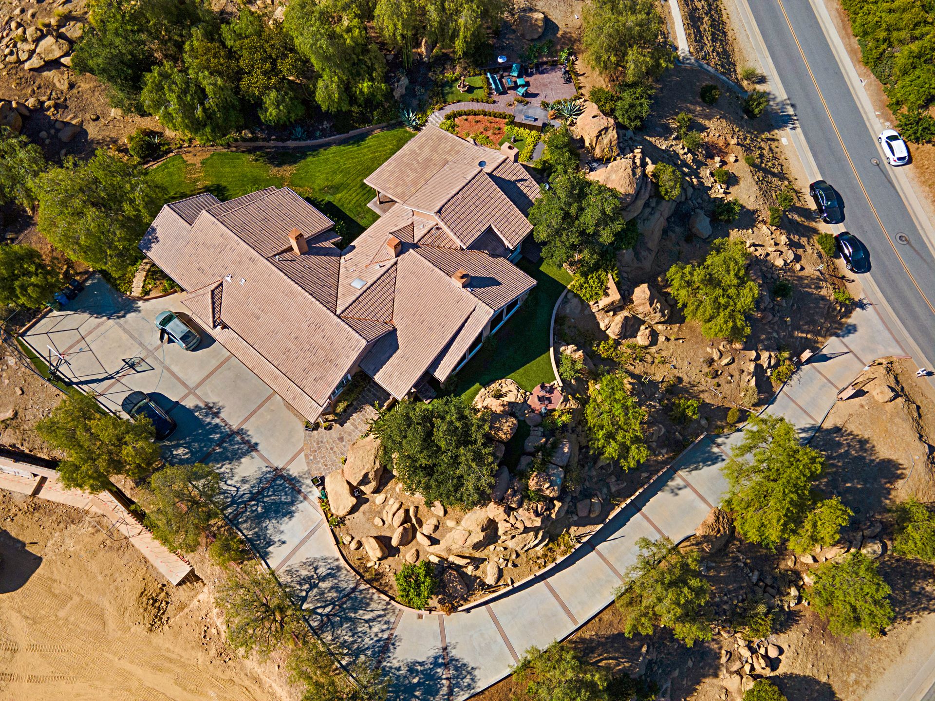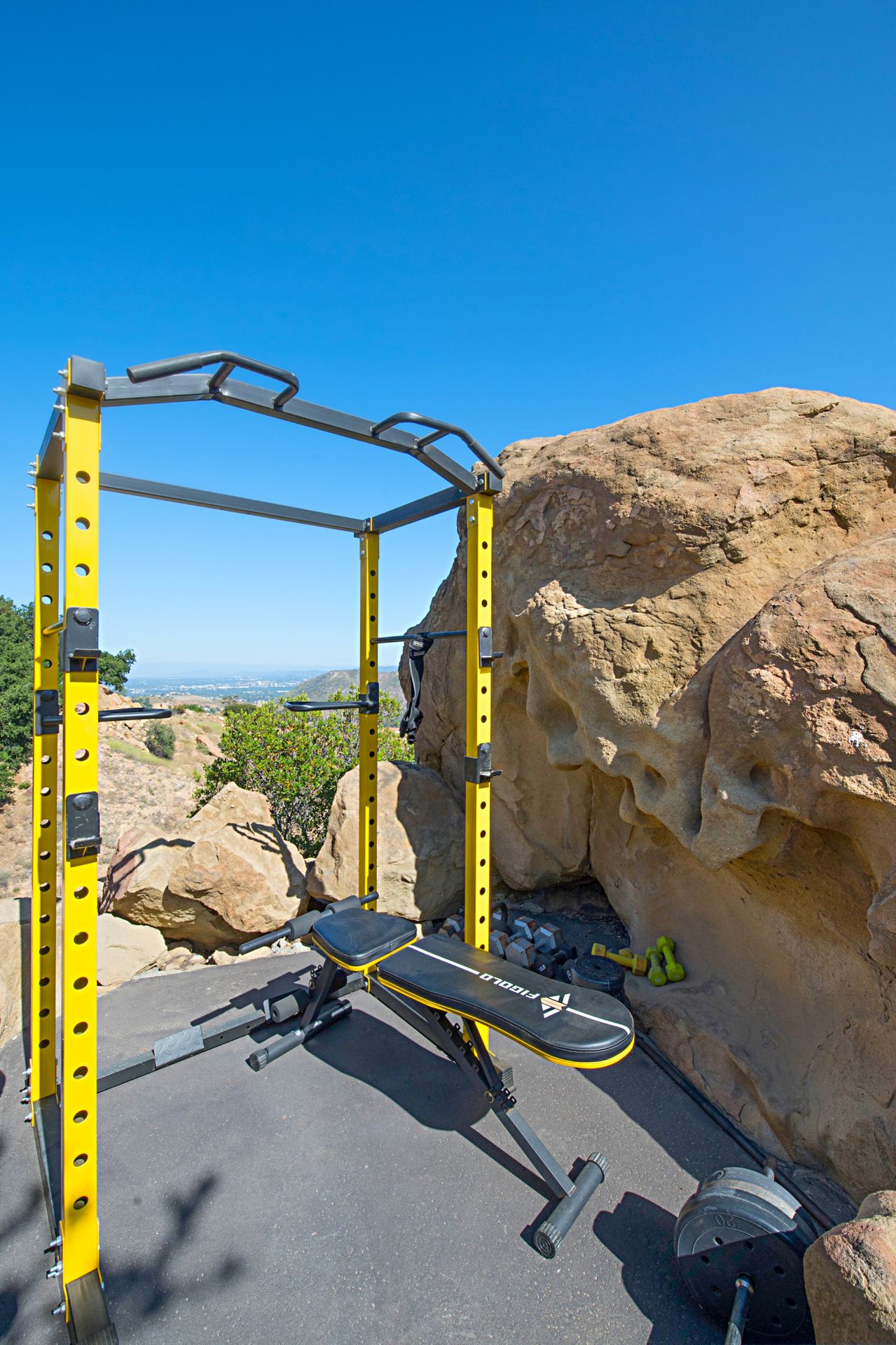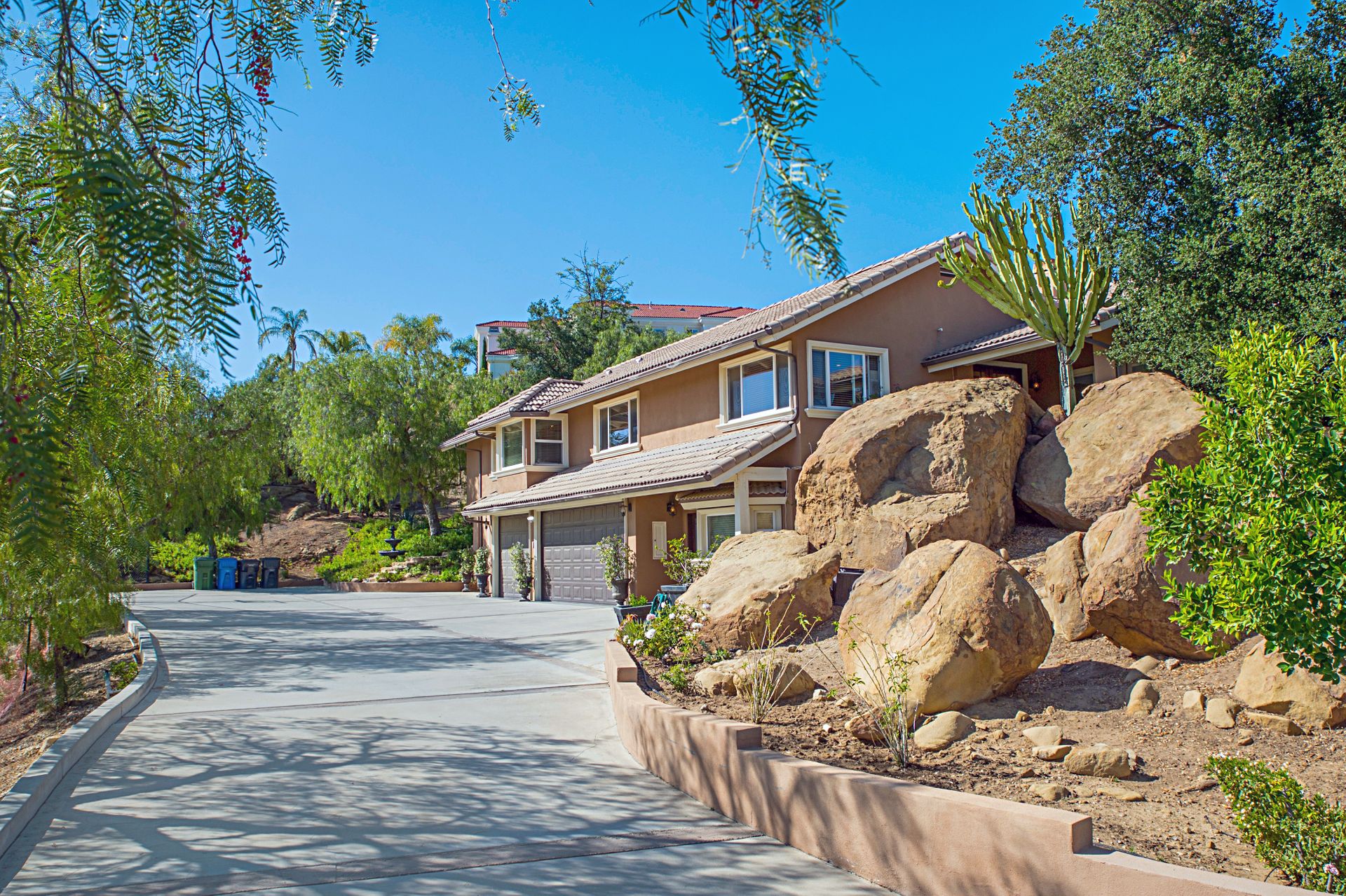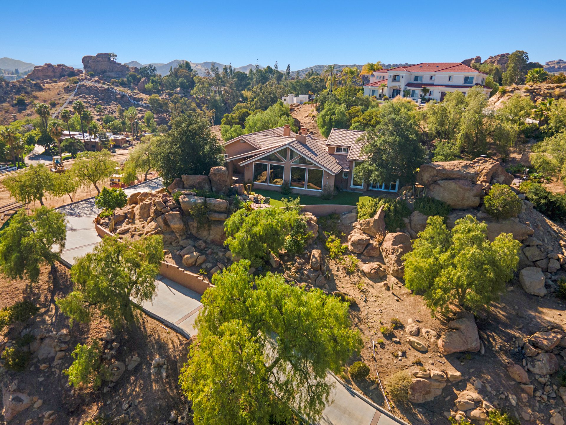 There is a half basketball court and ample parking space complemented by an oversized three-car garage with a spacious storage room. Witness breathtaking sunrises and sunsets framed by the majestic boulders, making this property a true gem.