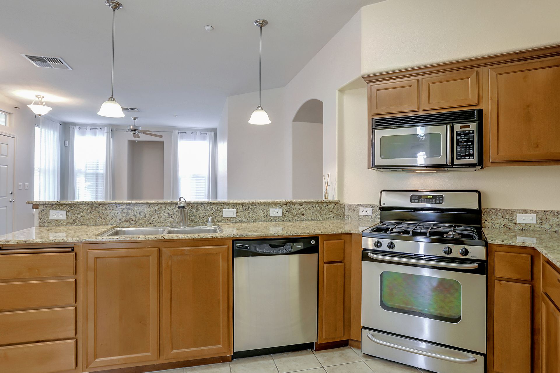 3 bedroom, 2 bath, single-story home in highly desirable Boardwalk at Lakeside features high ceilings, open floorplan, kitchen with granite countertops, gas range, & built-in microwave; French door to cute private patio. Large primary bedroom suite with huge walk-in closet, spacious bath with double sinks & storage closet. Two additional bedrooms also feature large closets & east-facing windows. Big office nook in the hallway is a perfect place to work from home or handle homework. Loads of storage in this lovely property; an extra-deep garage with shelving offers storage for bikes & other toys. Fantastic community features luxurious clubhouse with theater-room, gym, kitchen, pool table, meeting rooms, & pool & spa. Don't miss this one.