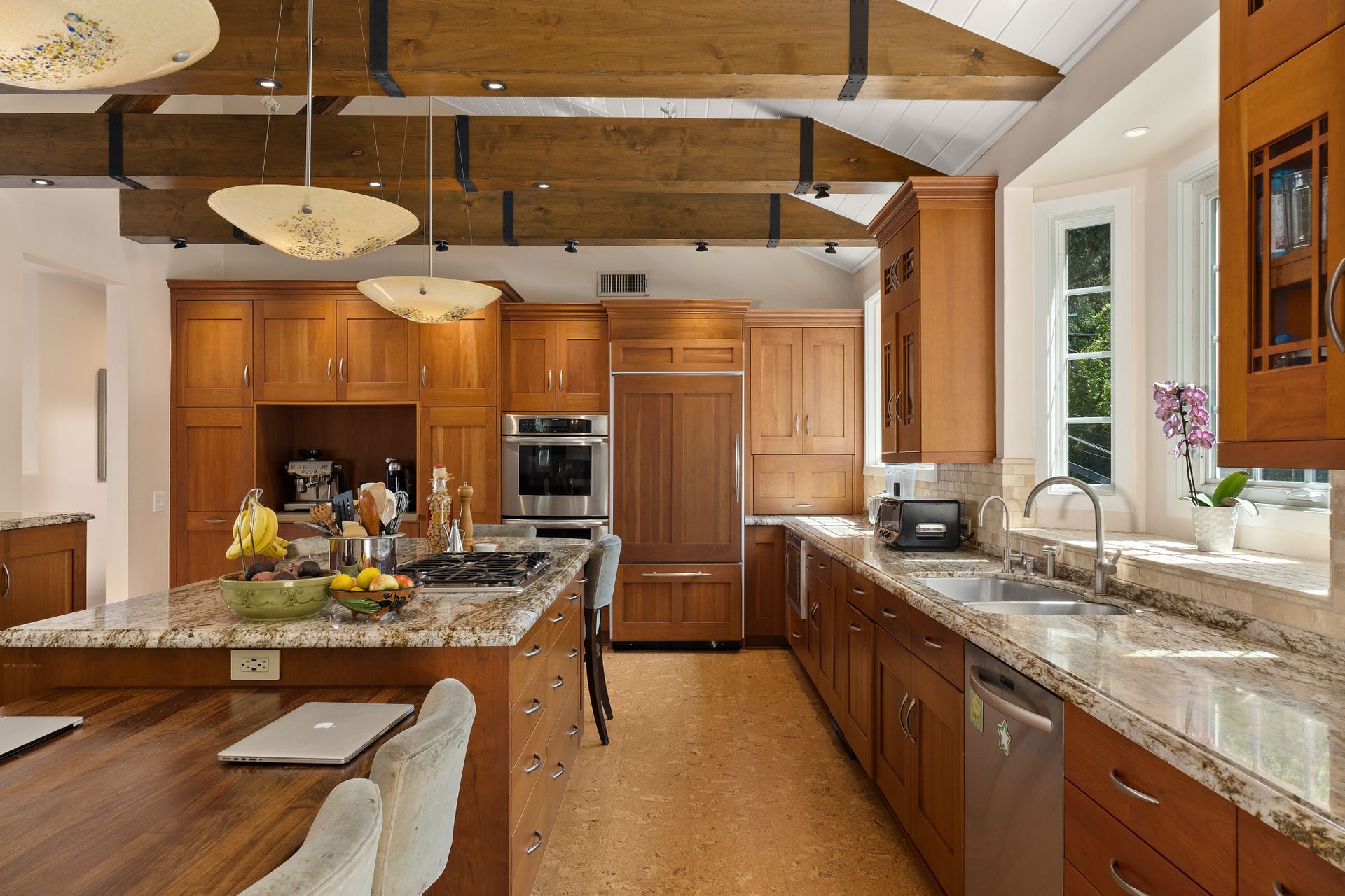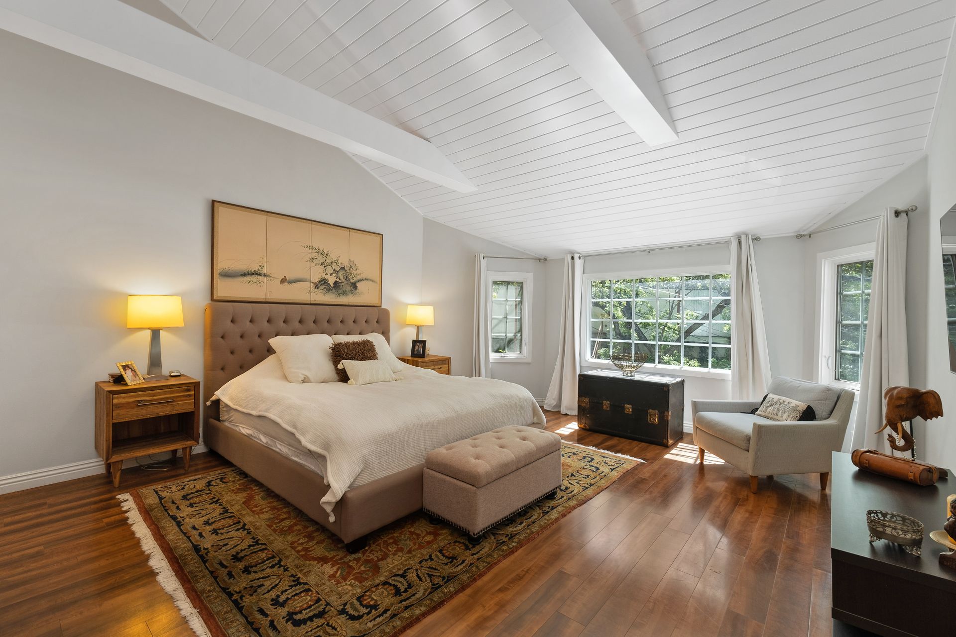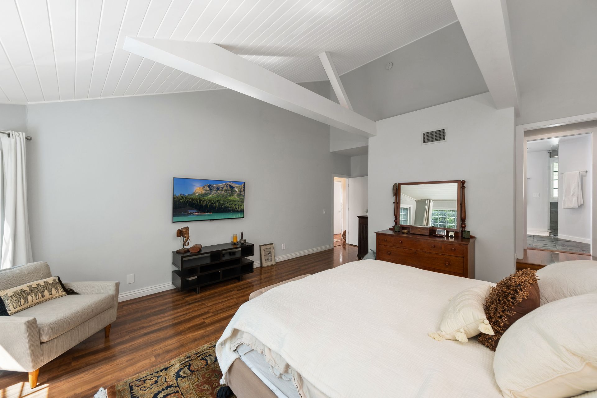 One of the best buys in the city with possible music/recording studio! Sited at the end of a quiet and serene cul-de-sac, nestled in the lushly landscaped canyons sits this stunning Traditional with modern flair and soaring ceilings of just over 4,000 square feet. The heart of this home is the over-sized great room featuring a large bar, flat screen TV, fireplace and doors opening out to the private yard. A formal dining room area adjoins the enormous gourmet kitchen with top-of-the-line appliances and huge center island that will be the envy of any chef. The primary suite boasts a remodeled bathroom, separate oversized closets and opens out to the private spa. Three additional bedrooms all with high ceilings have their own bathrooms. A large bedroom suite on the entry level makes an ideal second primary. There is a large office with an adjoining sound-proof media room that would also make an ideal music studio. There is more storage space than one would know what to do with. Three zones of HVAC. Most of the bathrooms have recently been updated. The private and sun-drenched patio has a built-in BBQ center, fireplace and built-in spa making this home ideal for entertaining on a large or intimate scale. Two-car garage with direct entry. Five minutes to the Beverly Glen Center. All of this in the highly coveted Warner School District.