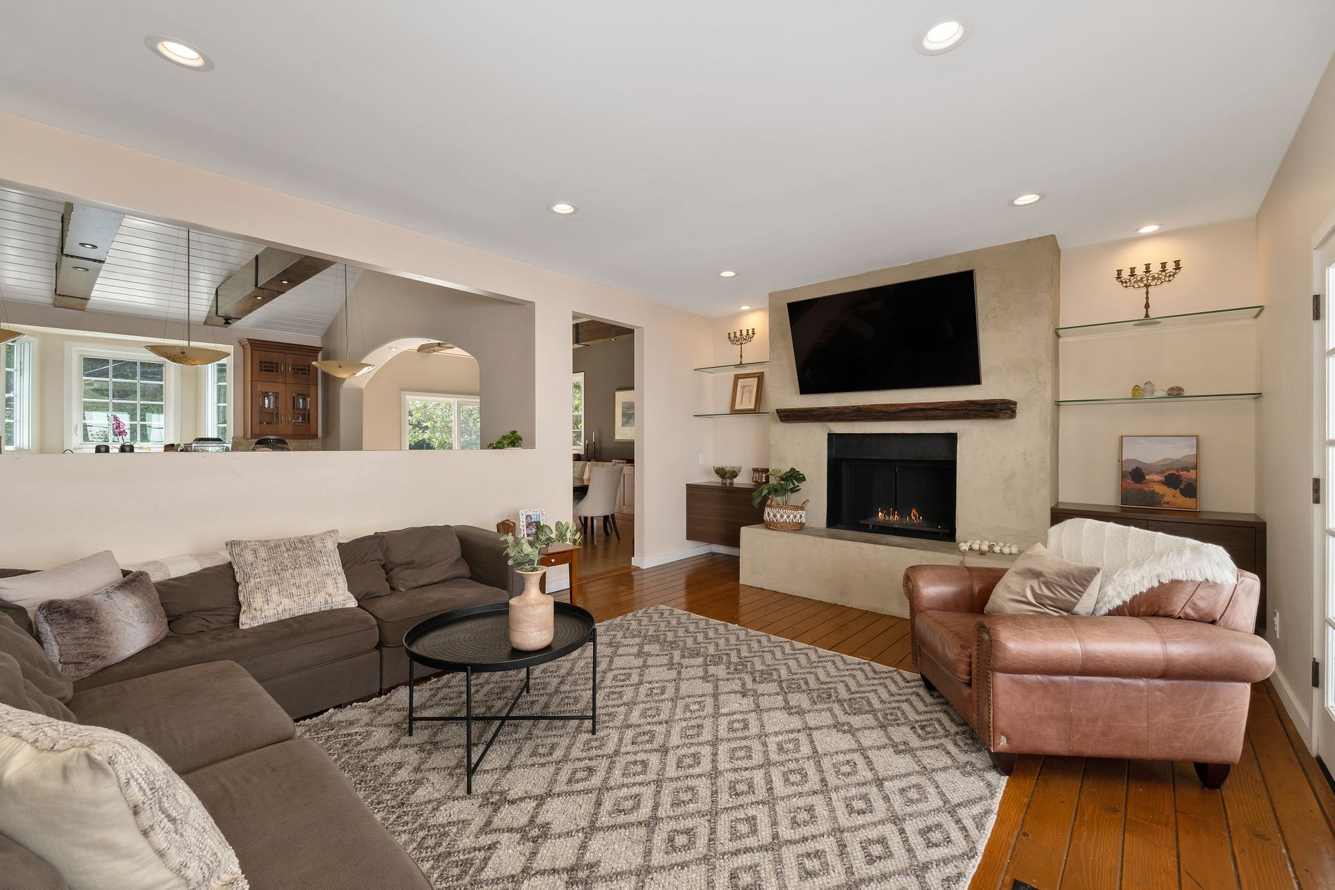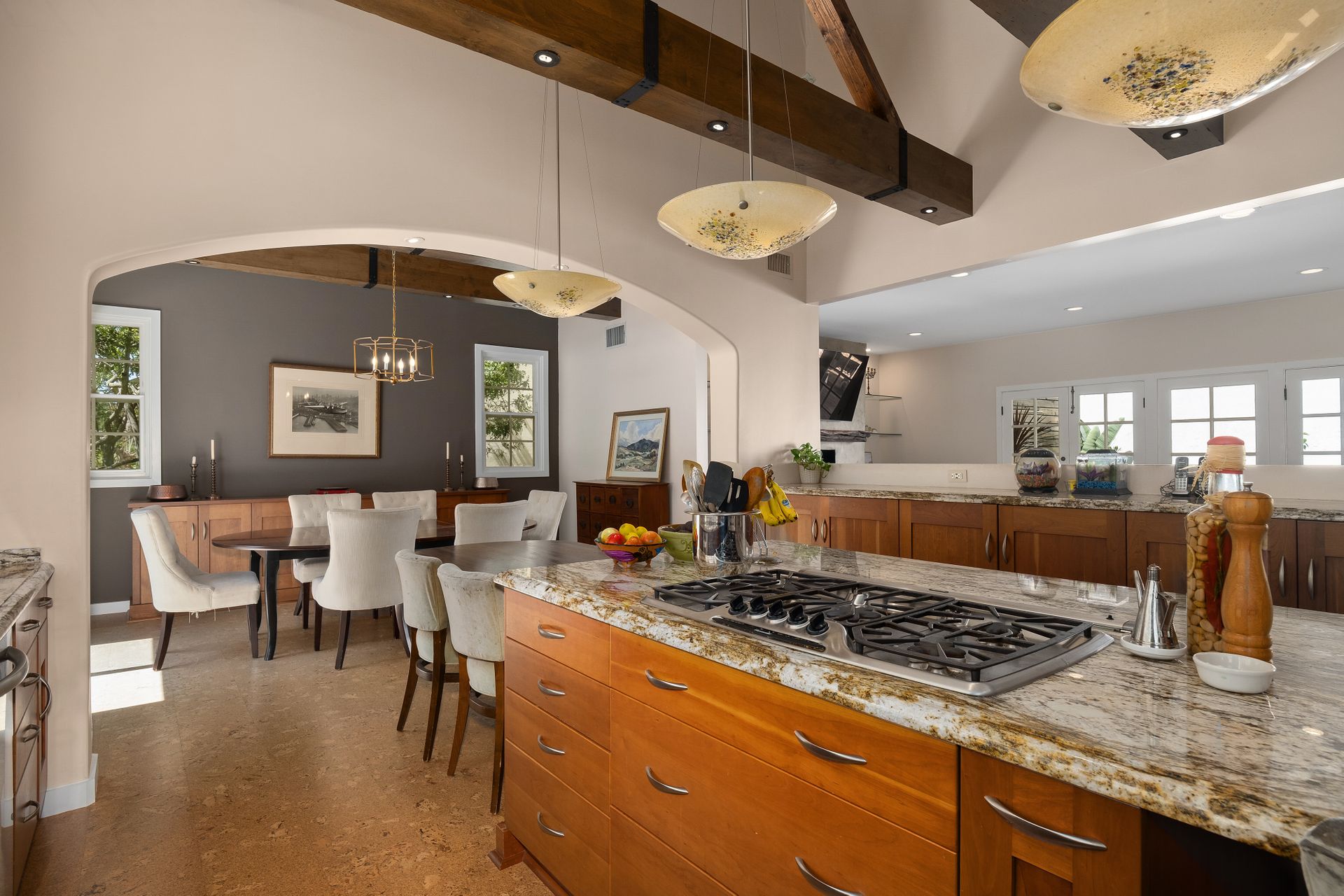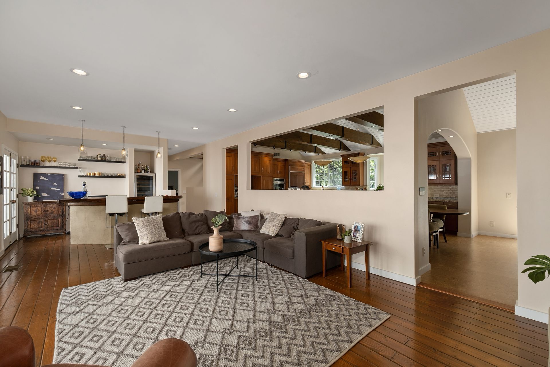 One of the best buys in the city with possible music/recording studio! Sited at the end of a quiet and serene cul-de-sac, nestled in the lushly landscaped canyons sits this stunning Traditional with modern flair and soaring ceilings of just over 4,000 square feet. The heart of this home is the over-sized great room featuring a large bar, flat screen TV, fireplace and doors opening out to the private yard. A formal dining room area adjoins the enormous gourmet kitchen with top-of-the-line appliances and huge center island that will be the envy of any chef. The primary suite boasts a remodeled bathroom, separate oversized closets and opens out to the private spa. Three additional bedrooms all with high ceilings have their own bathrooms. A large bedroom suite on the entry level makes an ideal second primary. There is a large office with an adjoining sound-proof media room that would also make an ideal music studio. There is more storage space than one would know what to do with. Three zones of HVAC. Most of the bathrooms have recently been updated. The private and sun-drenched patio has a built-in BBQ center, fireplace and built-in spa making this home ideal for entertaining on a large or intimate scale. Two-car garage with direct entry. Five minutes to the Beverly Glen Center. All of this in the highly coveted Warner School District.