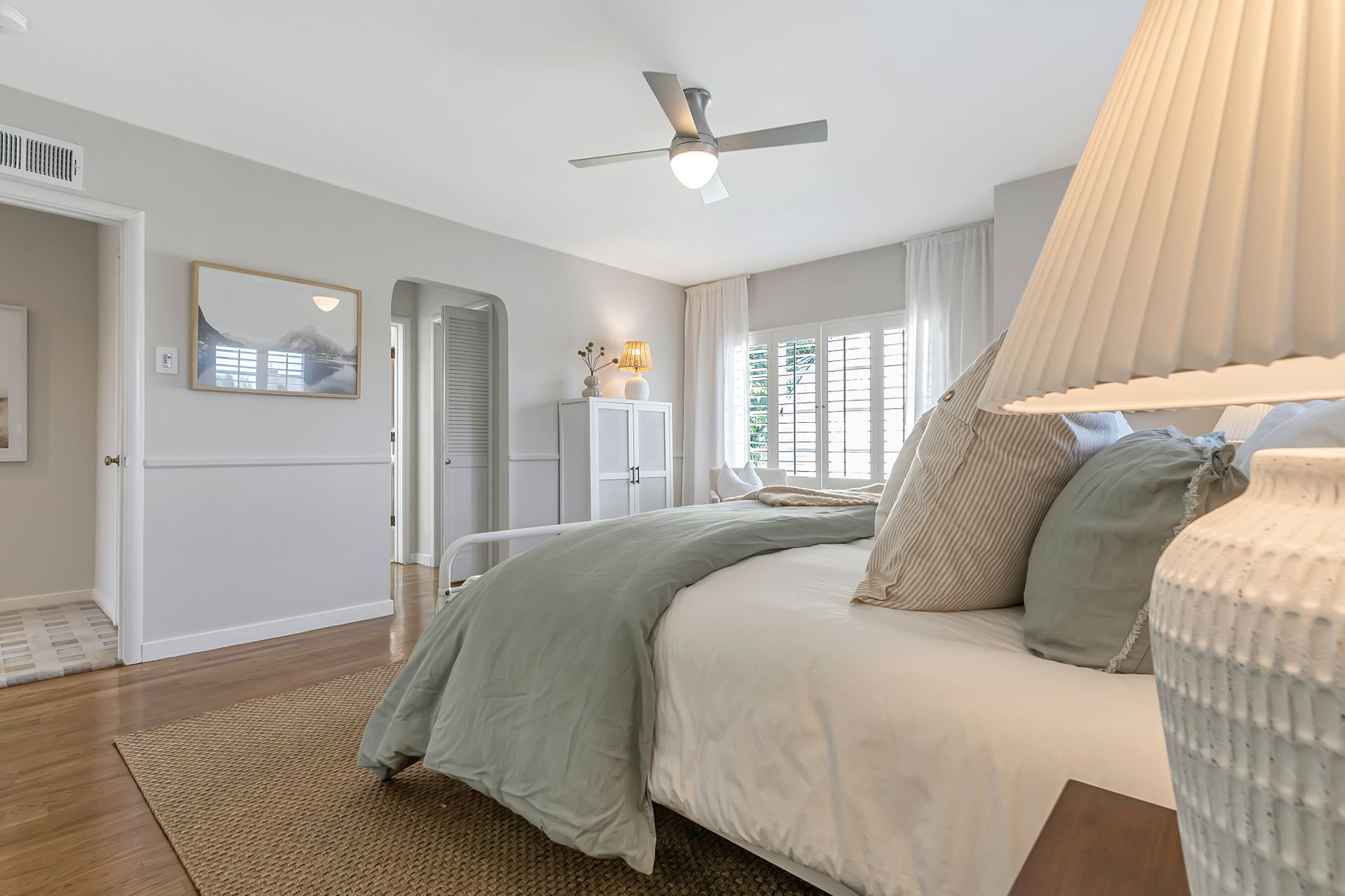 •Warm hardwood floors and luxurious plantation shutters