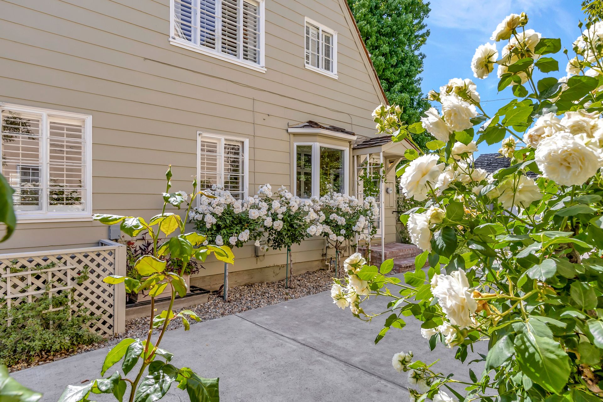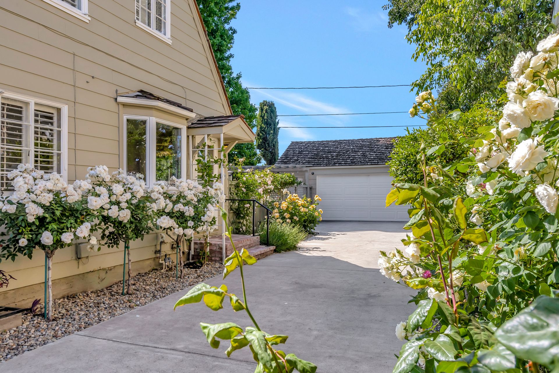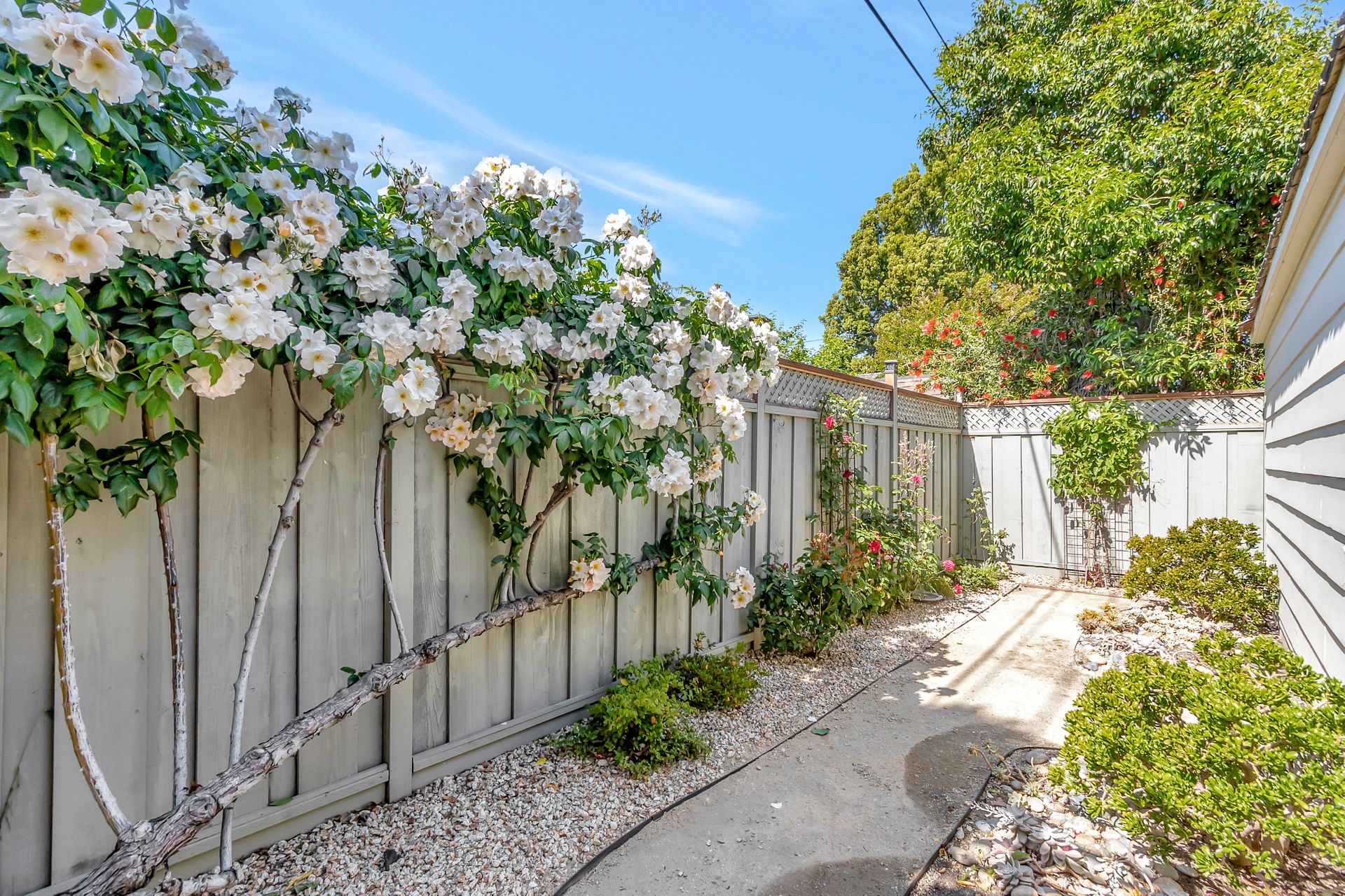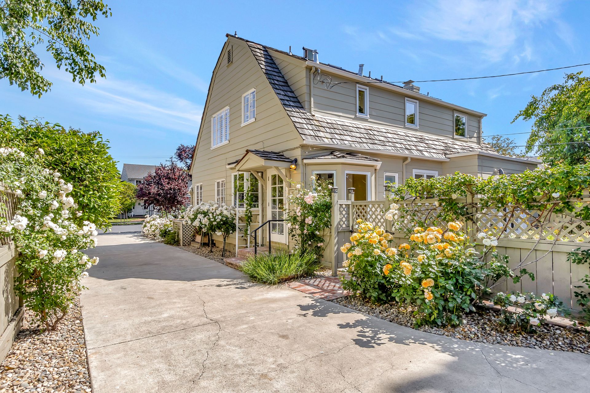 •Professionally landscaped yard with a combination of drought tolerant plantings and roses