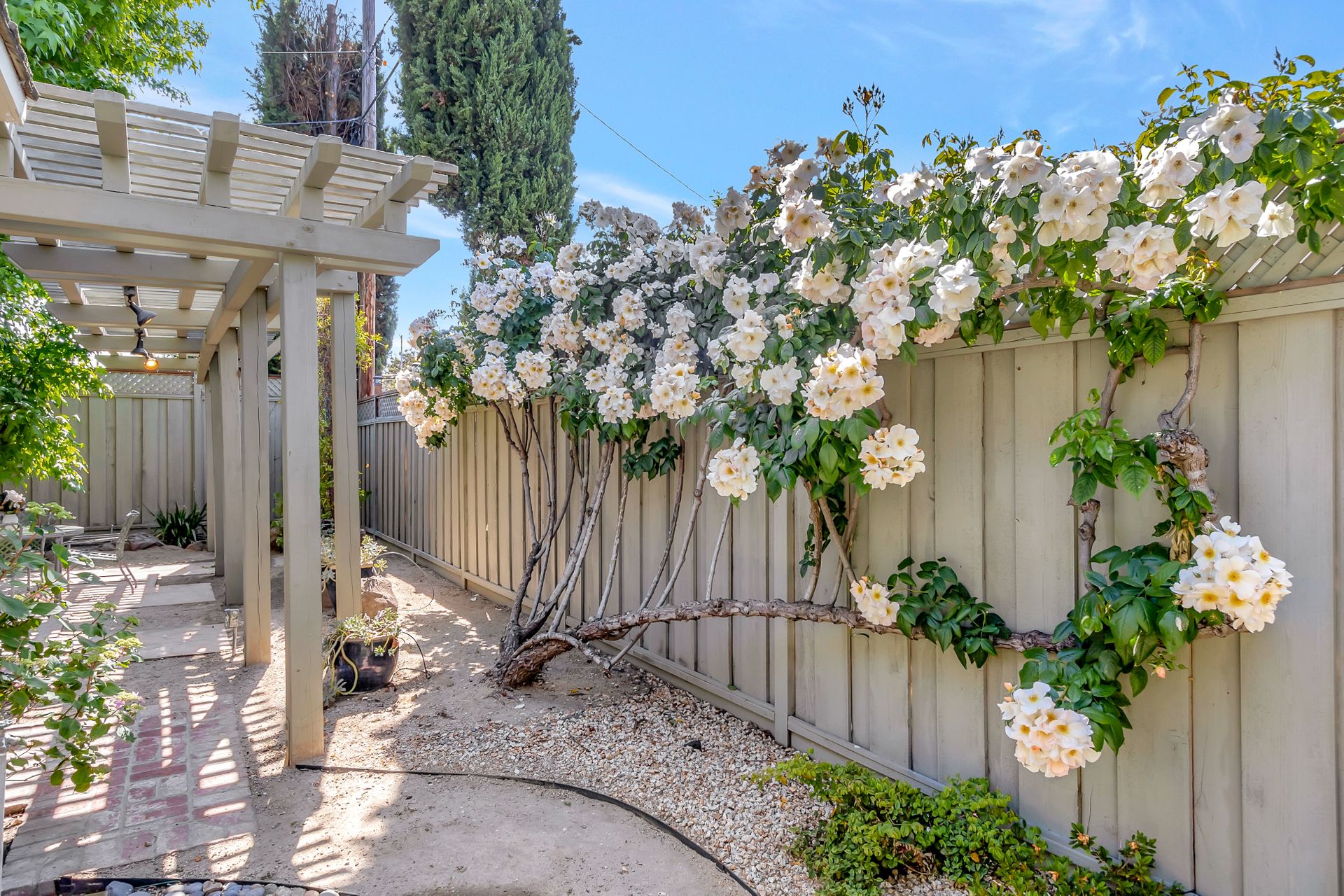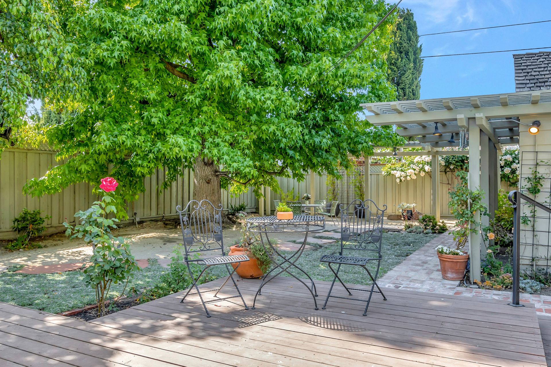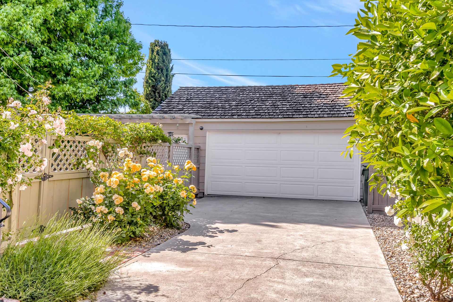 •Professionally landscaped yard with a combination of drought tolerant plantings and roses