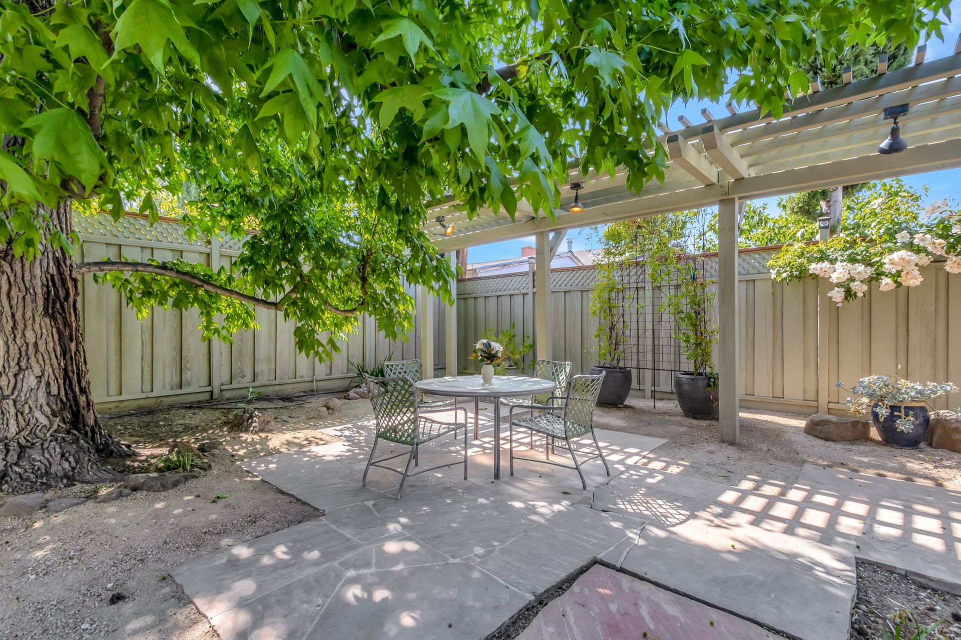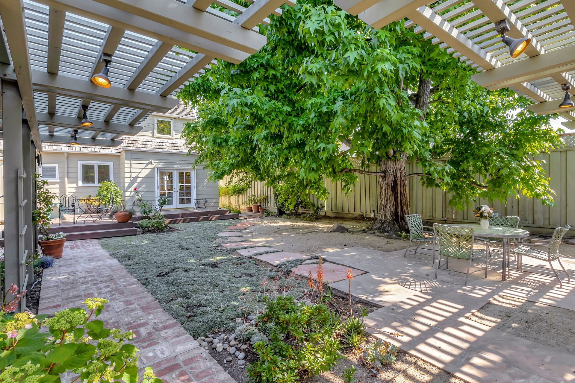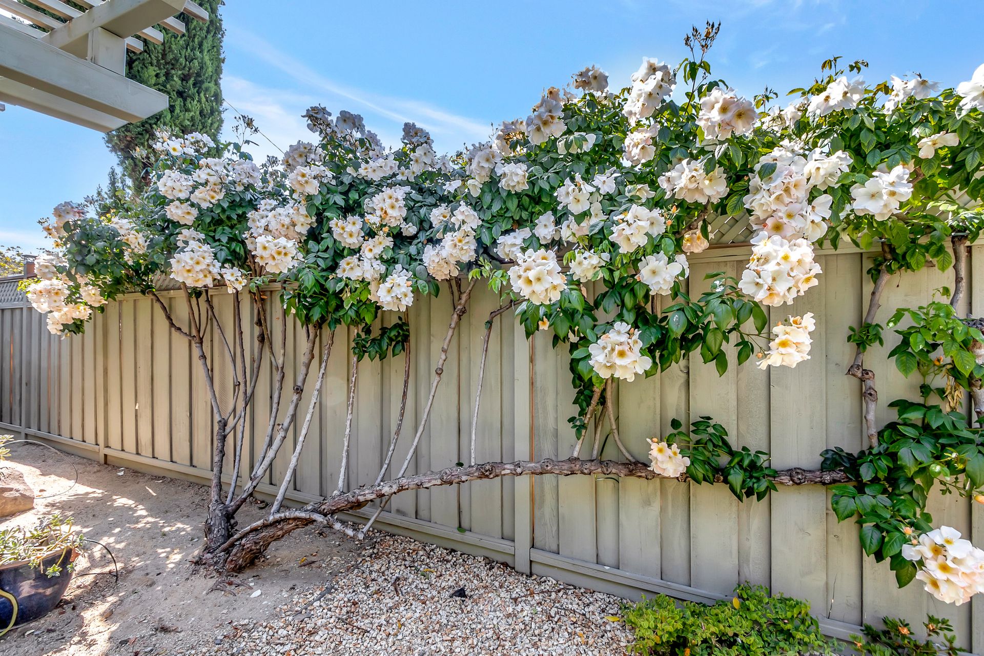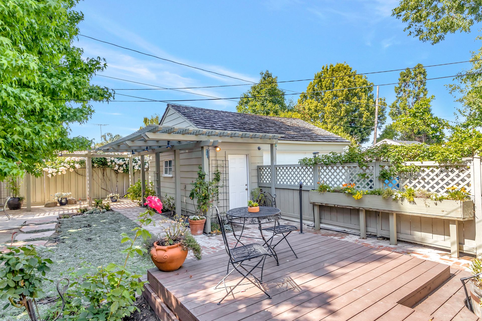 •Professionally landscaped yard with a combination of drought tolerant plantings and roses