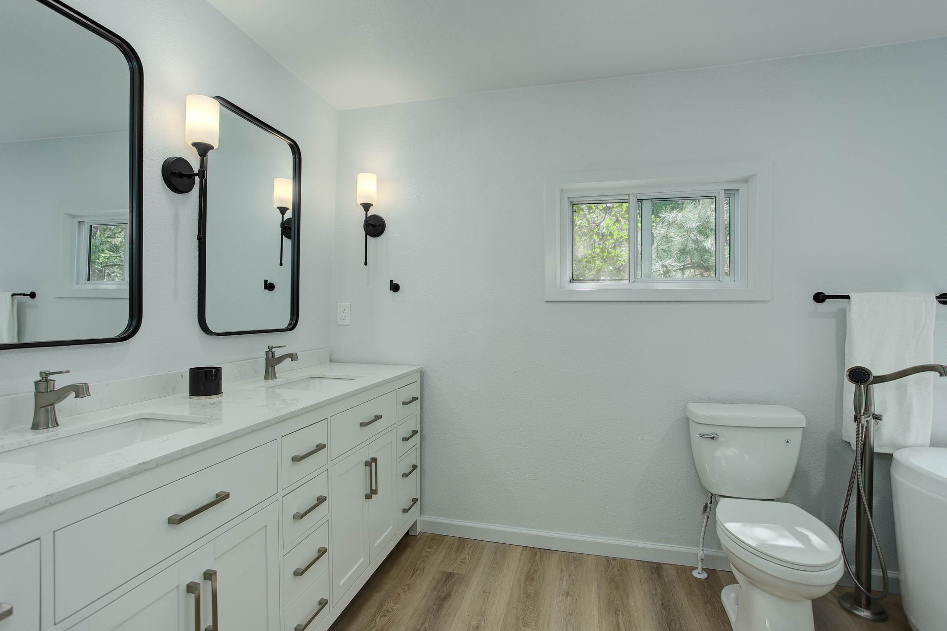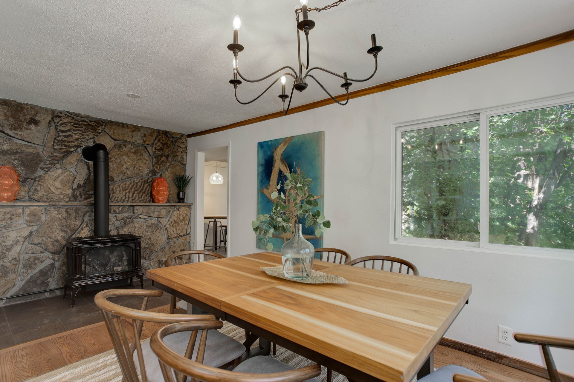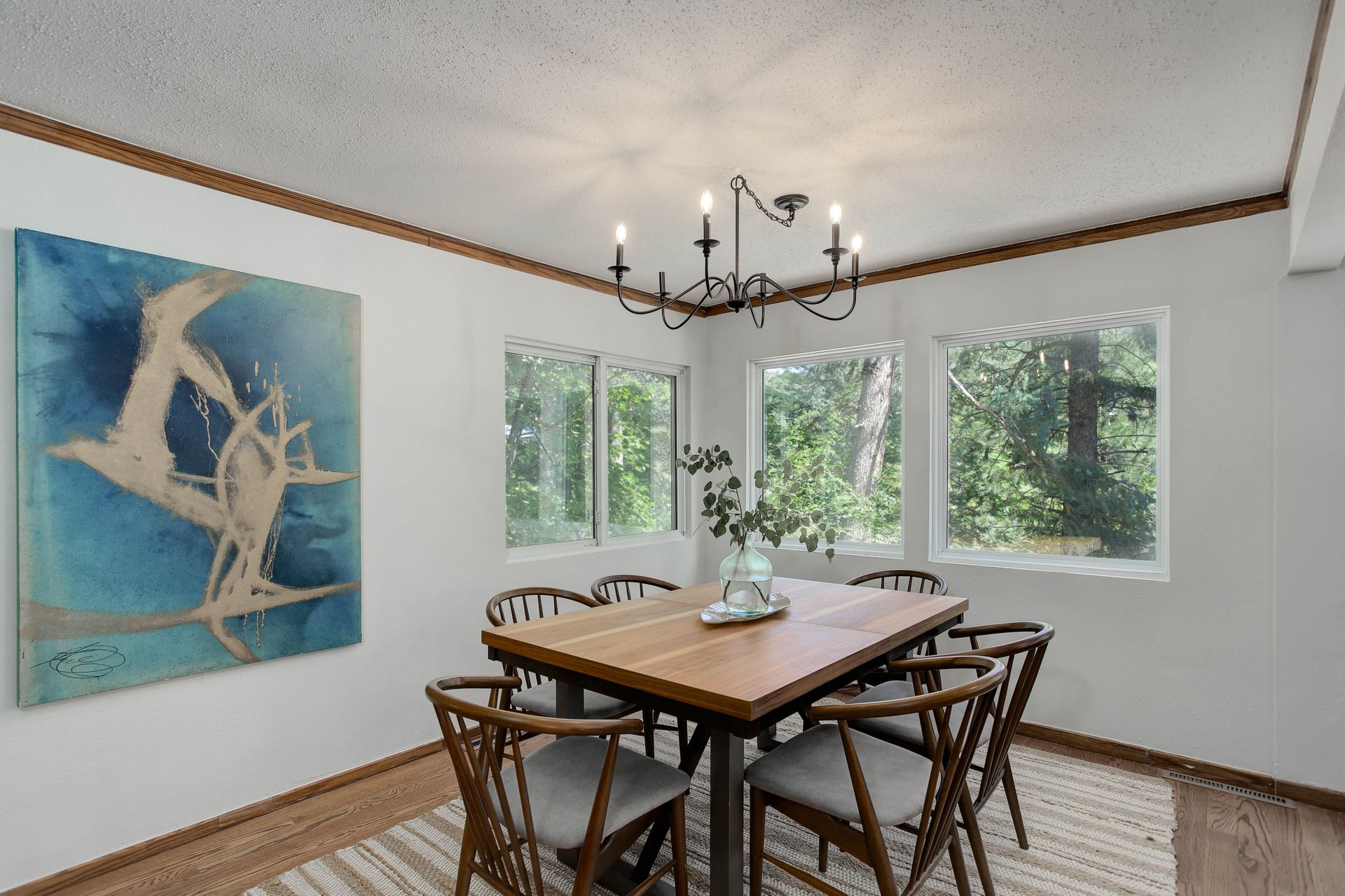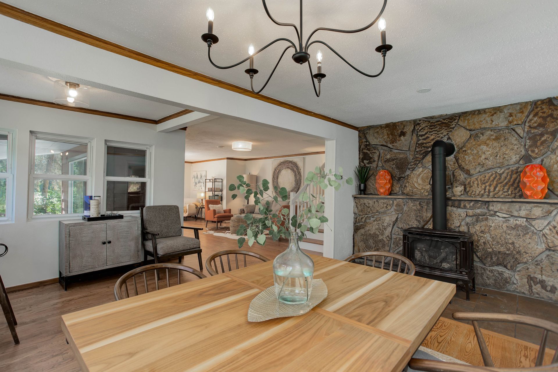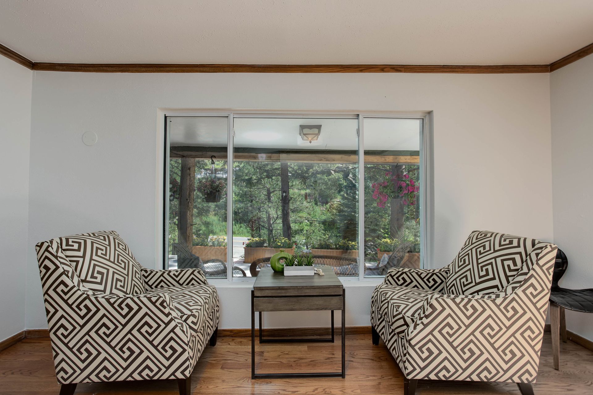 Do you dream of mountain living, with a babbling creek, towering trees, busy hummingbirds and a sense of peace surrounding you? Look no further! Only minutes, via a paved, county-maintained road, to C-470, Lockheed Martin, Chatfield and all the conveniences of town-- but feels like a private retreat the minute you pull into the driveway. This cozy modern mountain home is the perfect blend of rustic and contemporary. So much is new: interior paint, exterior terracing and concrete work, low-maintenance landscaping, JUST FINISHED remodeled bathroom, remodeled kitchen (2021), brand new hardwood stairs, flooring/carpet upstairs, light fixtures... The main floor has a huge entertaining space, that flows effortlessly from indoors to outdoors. Covered front porch and open side patio connect to the great room, which is flooded with natural light, and can be configured in many ways to accommodate extra office space, a music area or a playroom. The dining room, adjacent to the kitchen, is the perfect place to gather on chilly evenings, and bask in the warmth of the gas stove with natural stone surround. The kitchen features solid quartz countertops, a farmhouse sink, new cabinetry and appliances. Easy access to the newly finished laundry room! Upstairs, you'll find three large bedrooms (one staged as an office) and a brand-new five-piece bathroom! From the office, there is direct access to the back porch and an oversized outbuilding, that can serve as extra storage or could be fully finished for additional living or office space. This home is oozing with charm, has close proximity to multiple parks and trailheads, and provides an unmatched connection to nature.