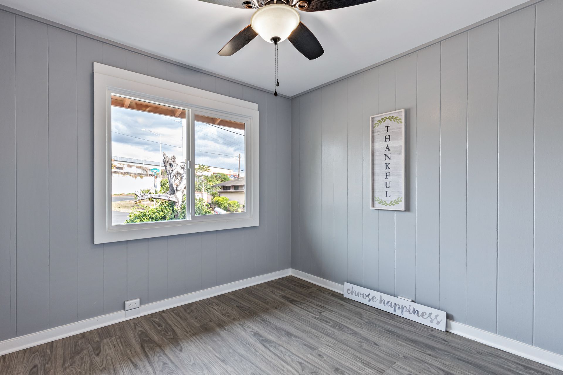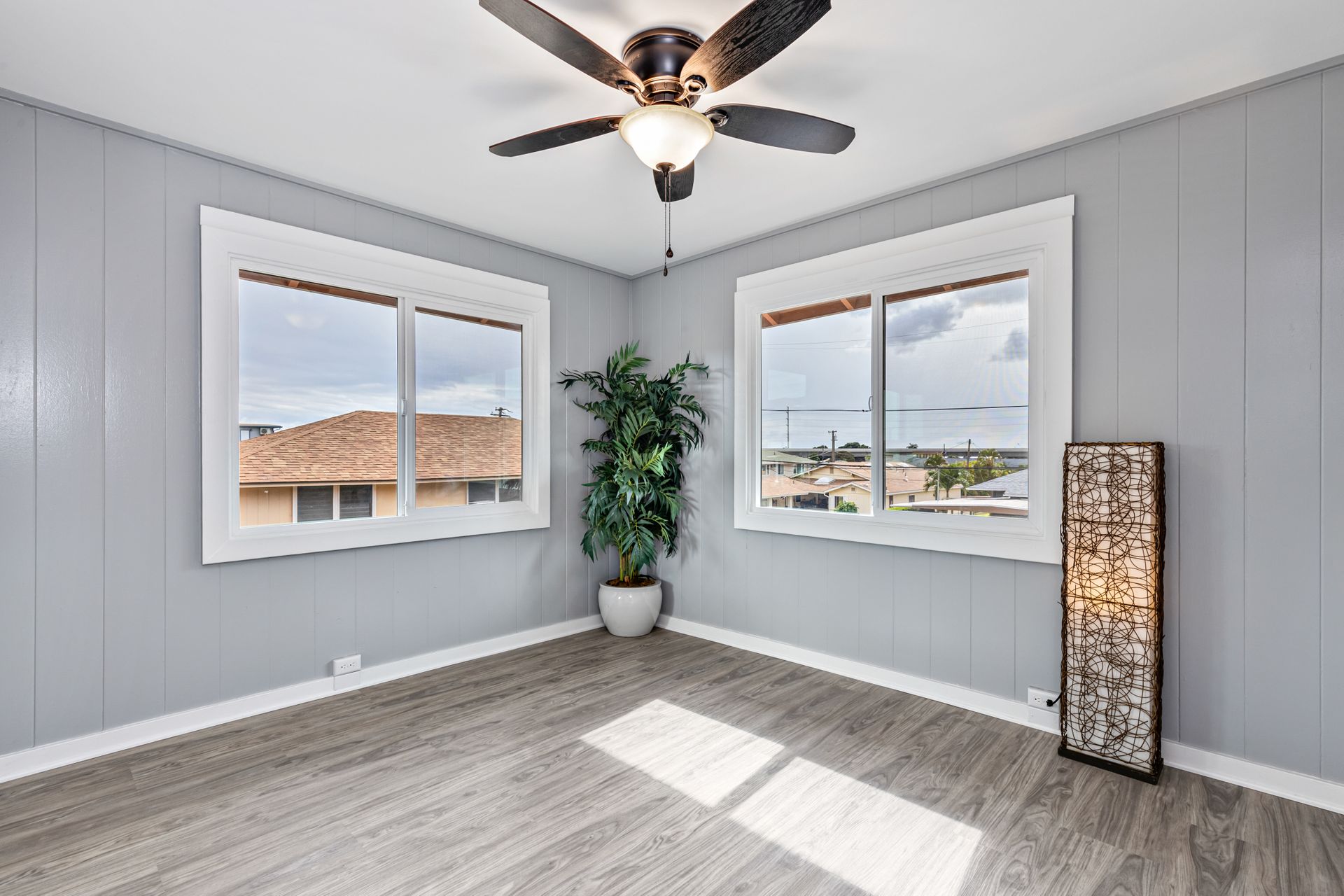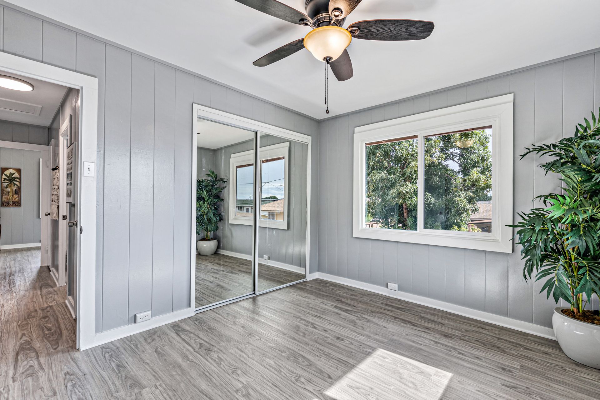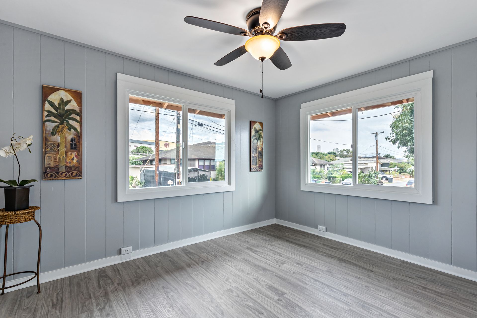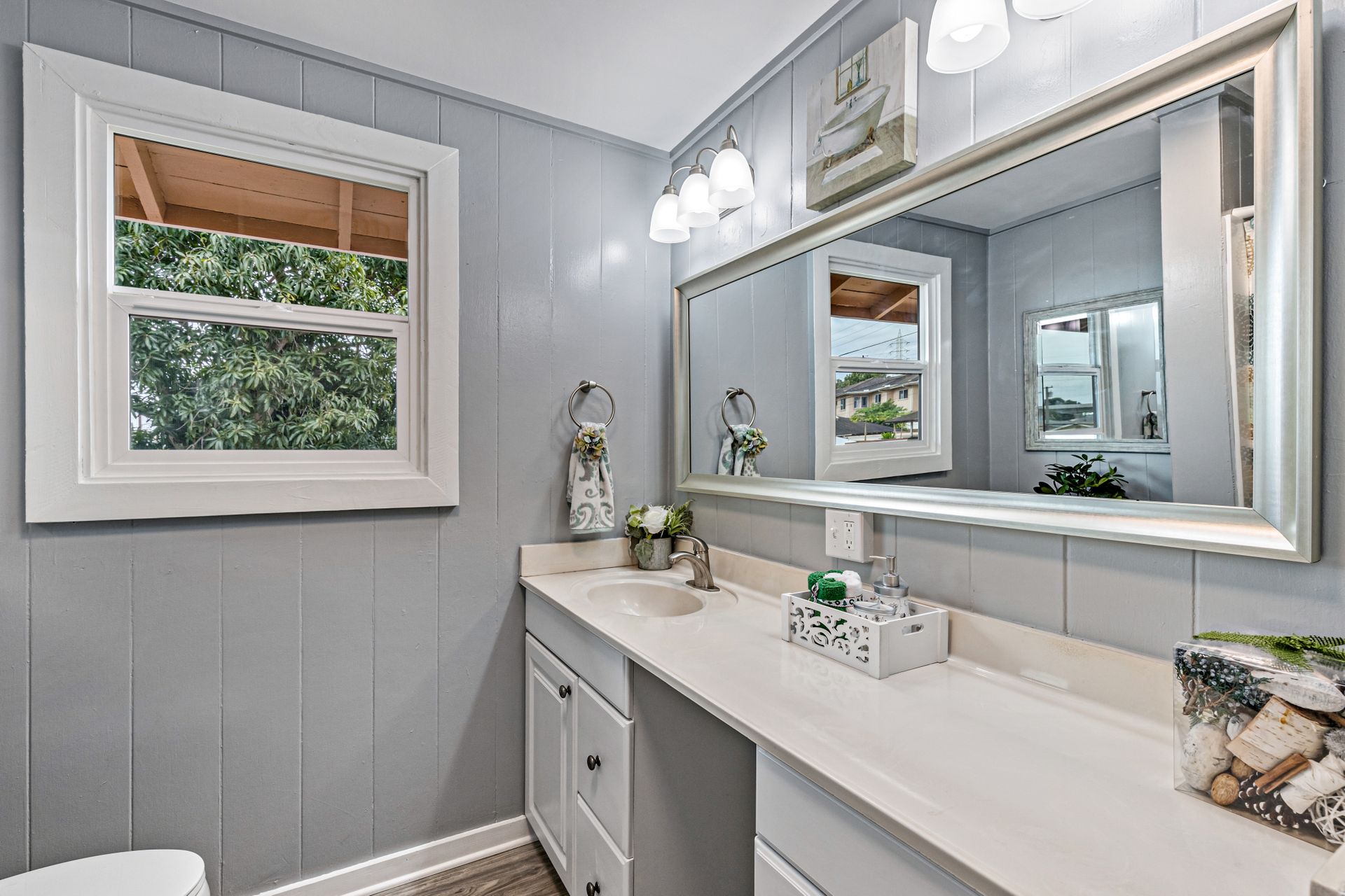 Tastefully and meticulously renovated five bedroom, two bath duplex-style home in Waimalu/Pearl City with easy access to almost everything from stores, freeway, banks and restaurants. Completely new kitchen with elegant quartz countertops and cabinets, brand new vinyl plank flooring and new double pane windows throughout, new doors, complete rewire, new electrical fixtures from lights to ceiling fans and smoke detectors. Fresh interior and exterior paint and the ceiling is newly and completely insulated. Two separate meters for electric are available. Ideal to live on one and rent the other right away. Why drive afar if you can live in the center, have instant move-in rental unit to help you pay for your mortgage or have a place for extended family? Live the life of your dream, this house has all the convenience.