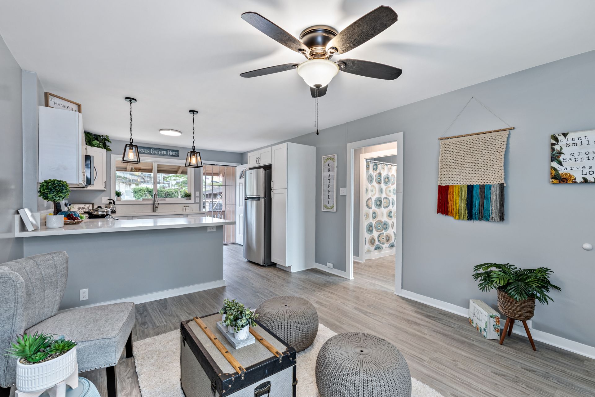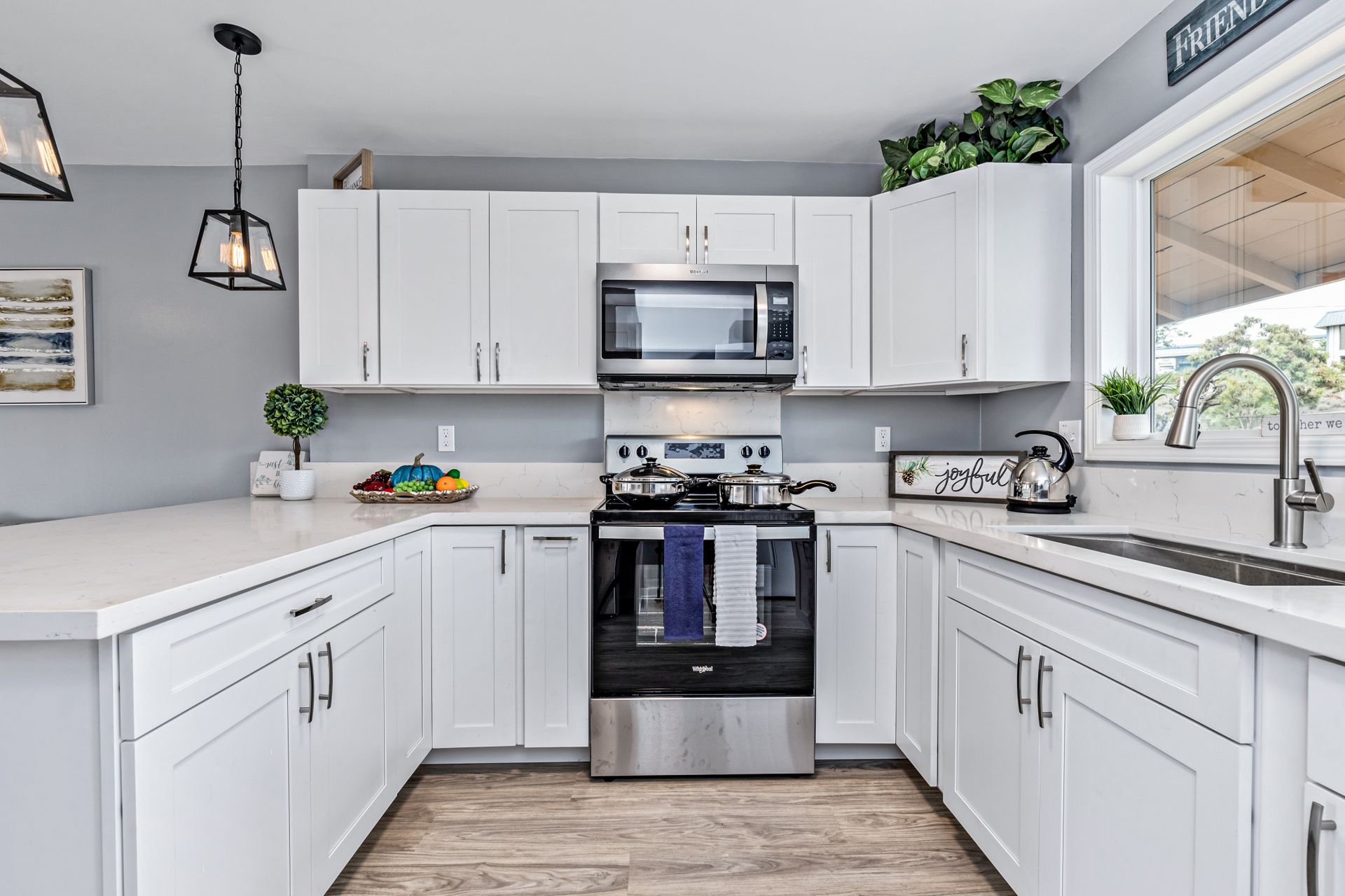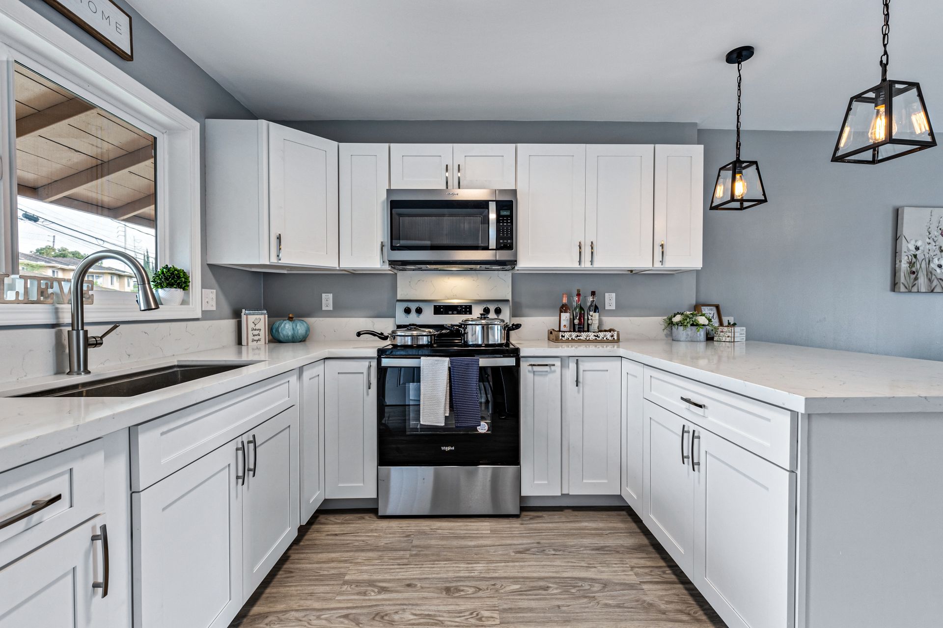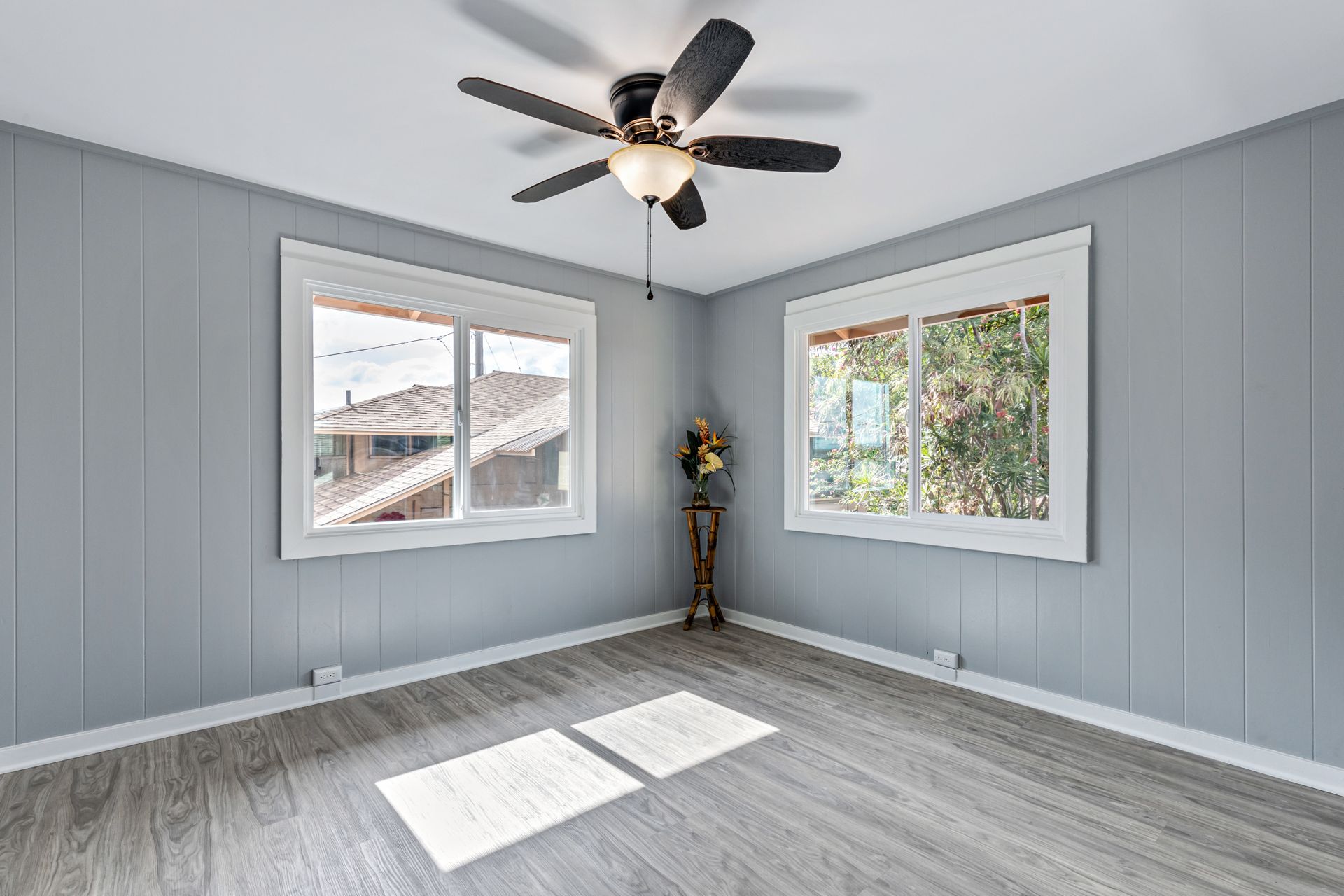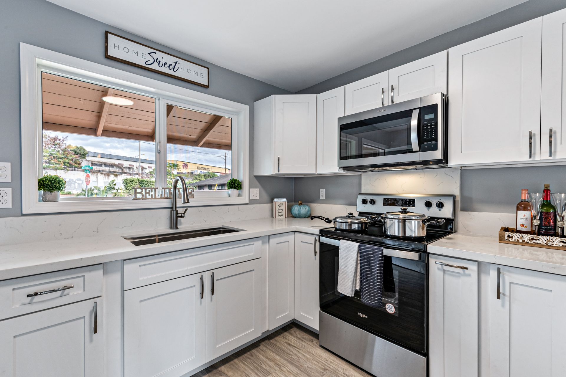 Tastefully and meticulously renovated five bedroom, two bath duplex-style home in Waimalu/Pearl City with easy access to almost everything from stores, freeway, banks and restaurants. Completely new kitchen with elegant quartz countertops and cabinets, brand new vinyl plank flooring and new double pane windows throughout, new doors, complete rewire, new electrical fixtures from lights to ceiling fans and smoke detectors. Fresh interior and exterior paint and the ceiling is newly and completely insulated. Two separate meters for electric are available. Ideal to live on one and rent the other right away. Why drive afar if you can live in the center, have instant move-in rental unit to help you pay for your mortgage or have a place for extended family? Live the life of your dream, this house has all the convenience.