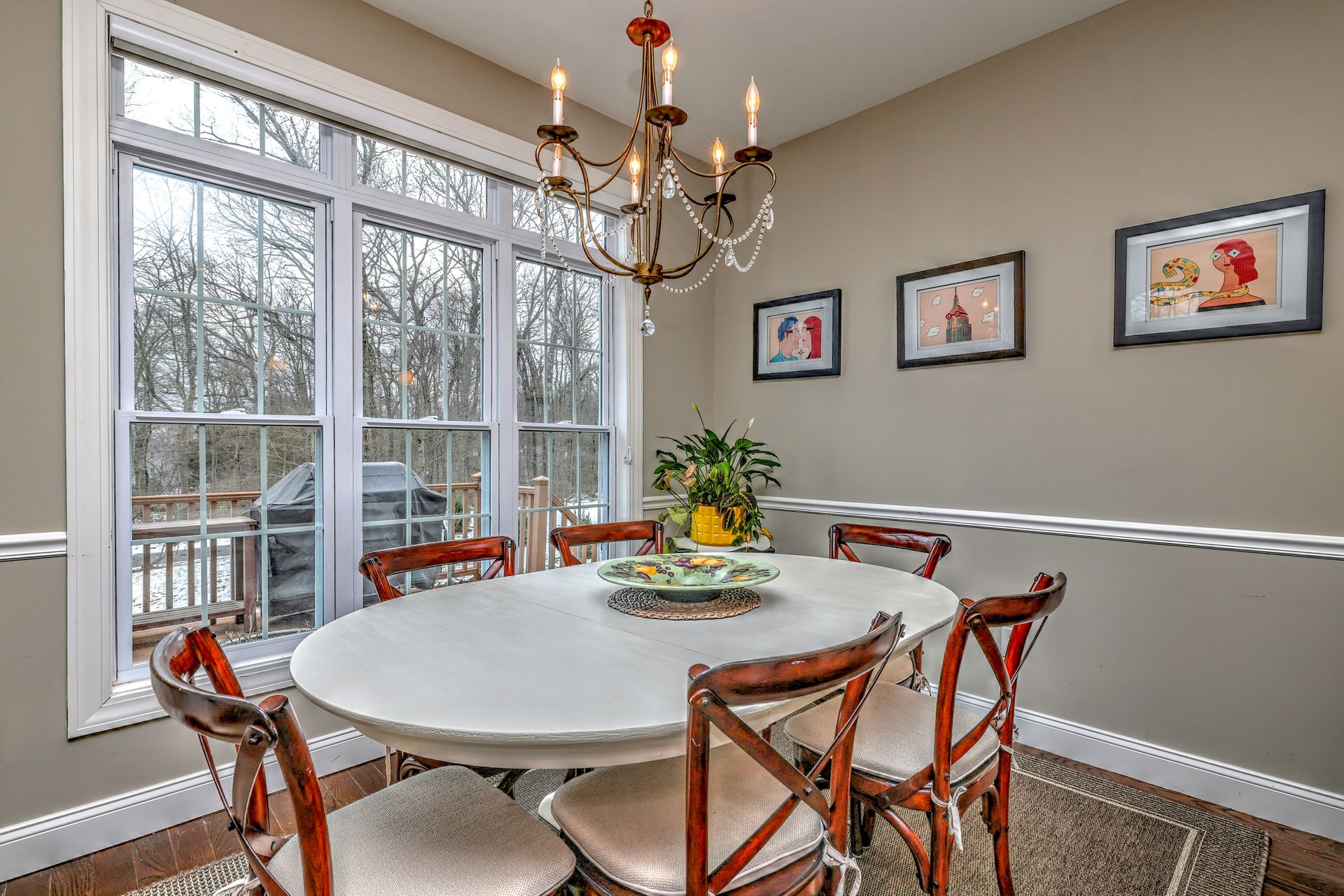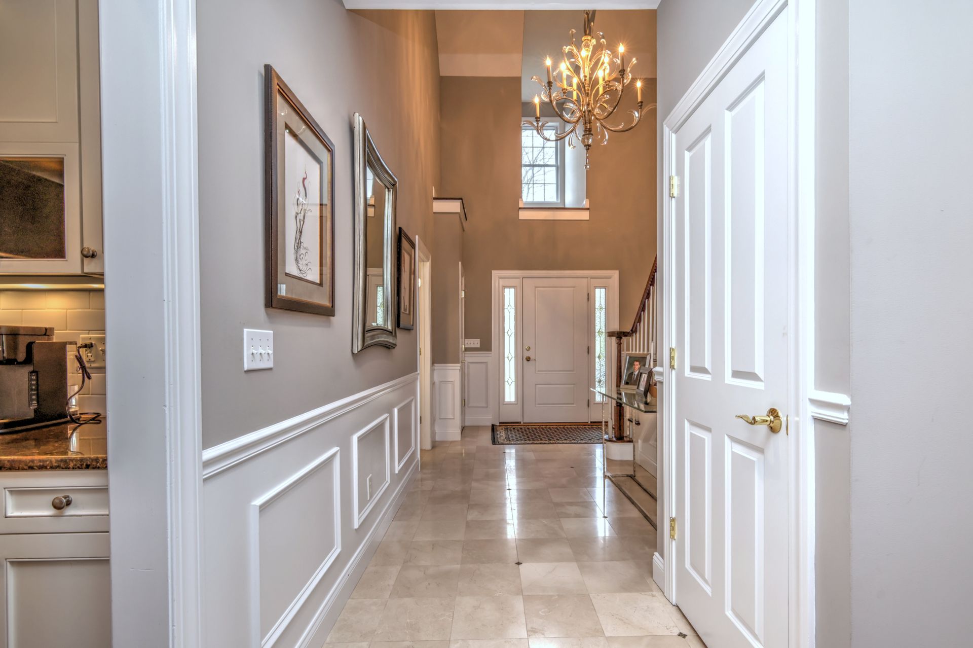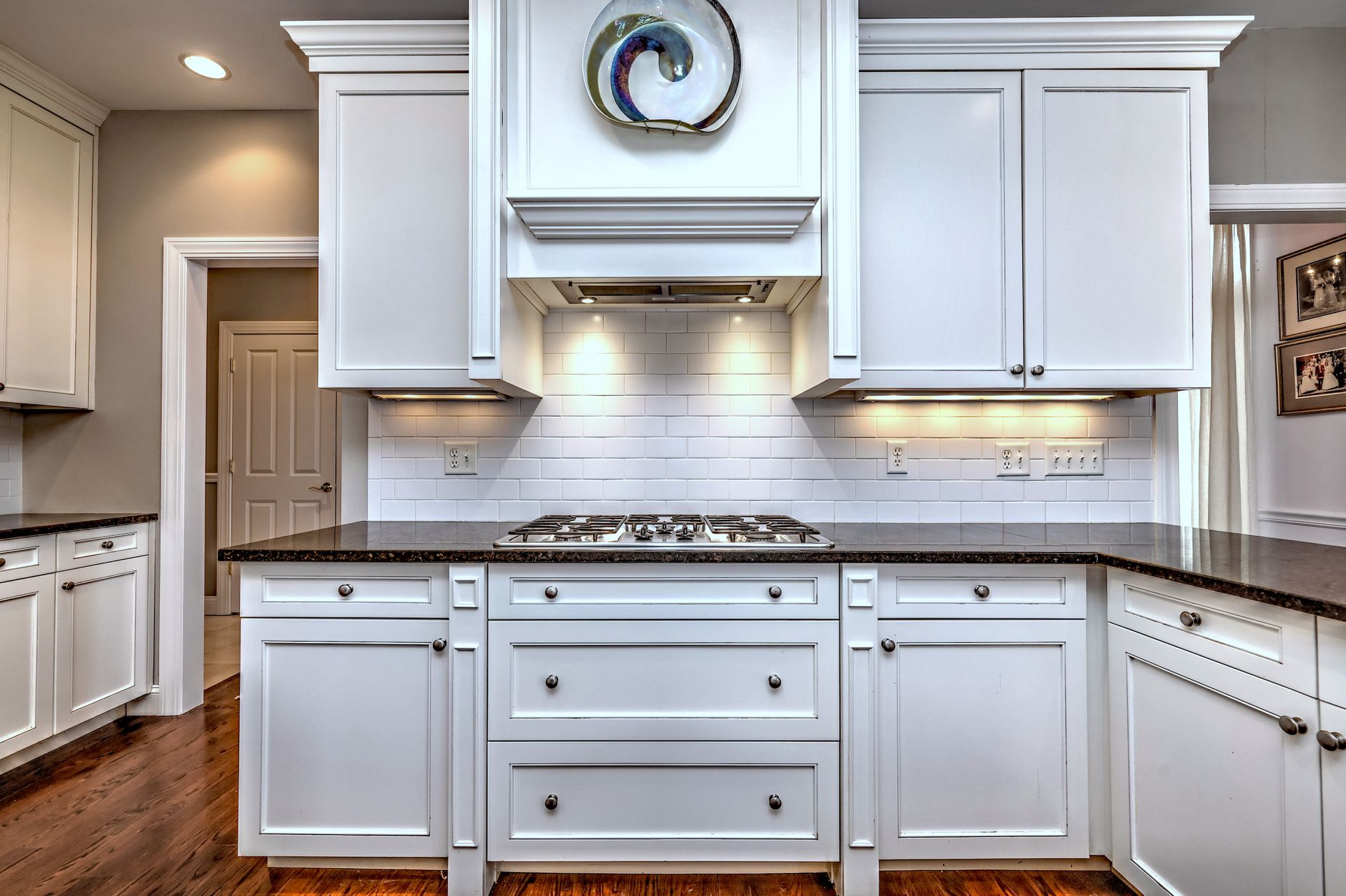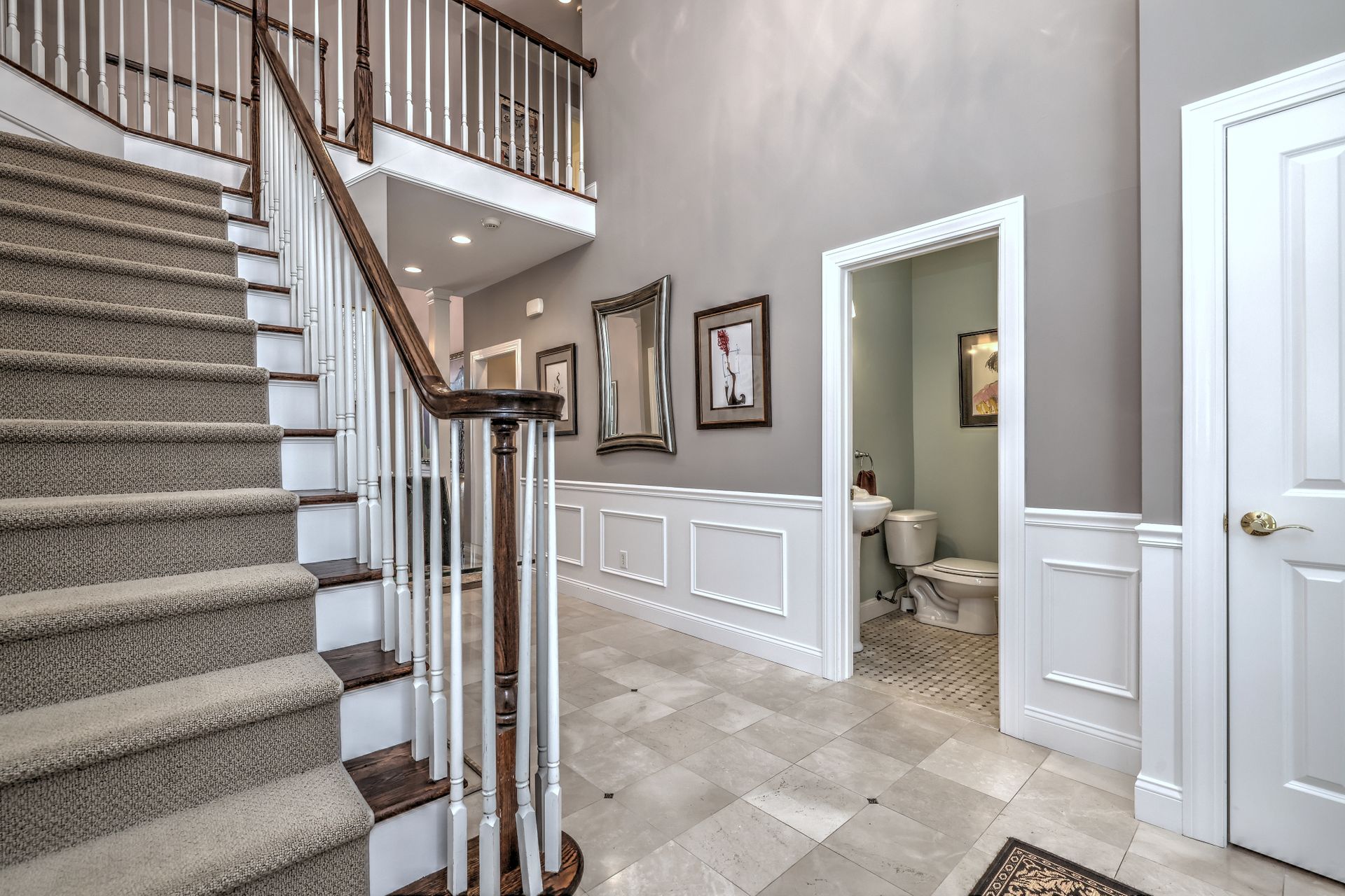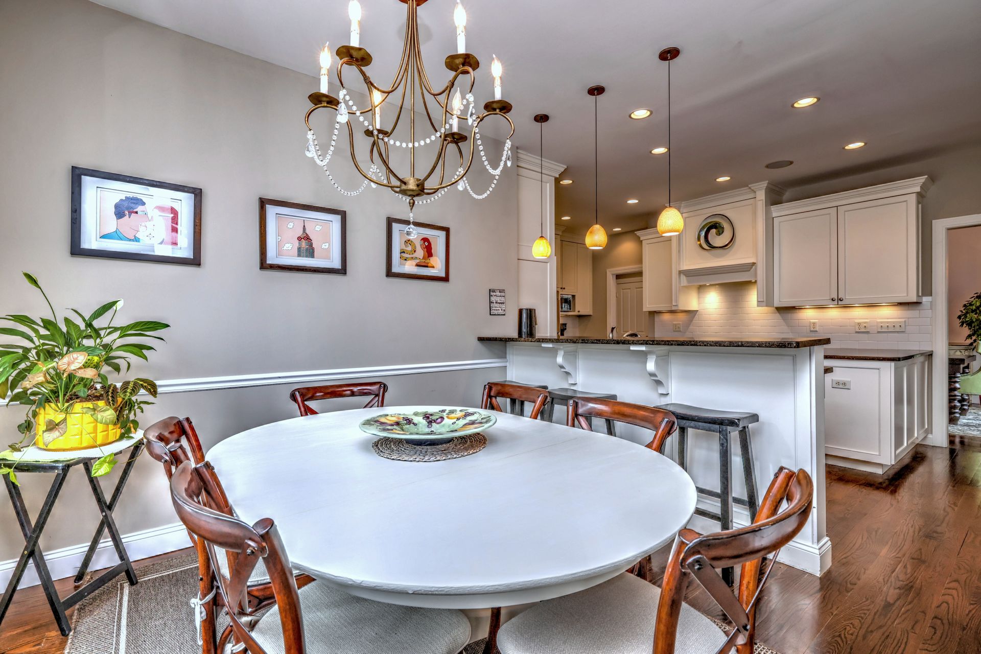 Upon entering through the delightful covered front porch, you’re greeted by a grand foyer with a stunning chandelier, gleaming marble floors with pewter accents, and detailed wall moldings. The chef’s kitchen is a dream, featuring double wall ovens, a gas cooktop with a professional-grade vent, hardwood floors, gorgeous granite counters, a breakfast bar, and a sunny breakfast nook. The sun-splashed two-story family room has a wood-burning fireplace, oversized windows, and access to a comfortable deck. The indoor/outdoor sound system with a seven-zone speaker design is an extraordinary feature, providing immersive sound throughout this amazing home. The formal dining room features a delightful balcony from the second floor, hardwood floors, and large sliders to the second deck.