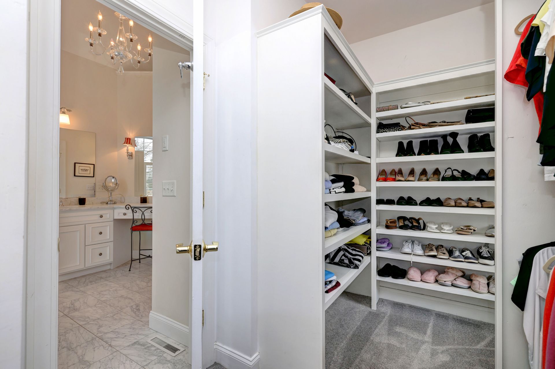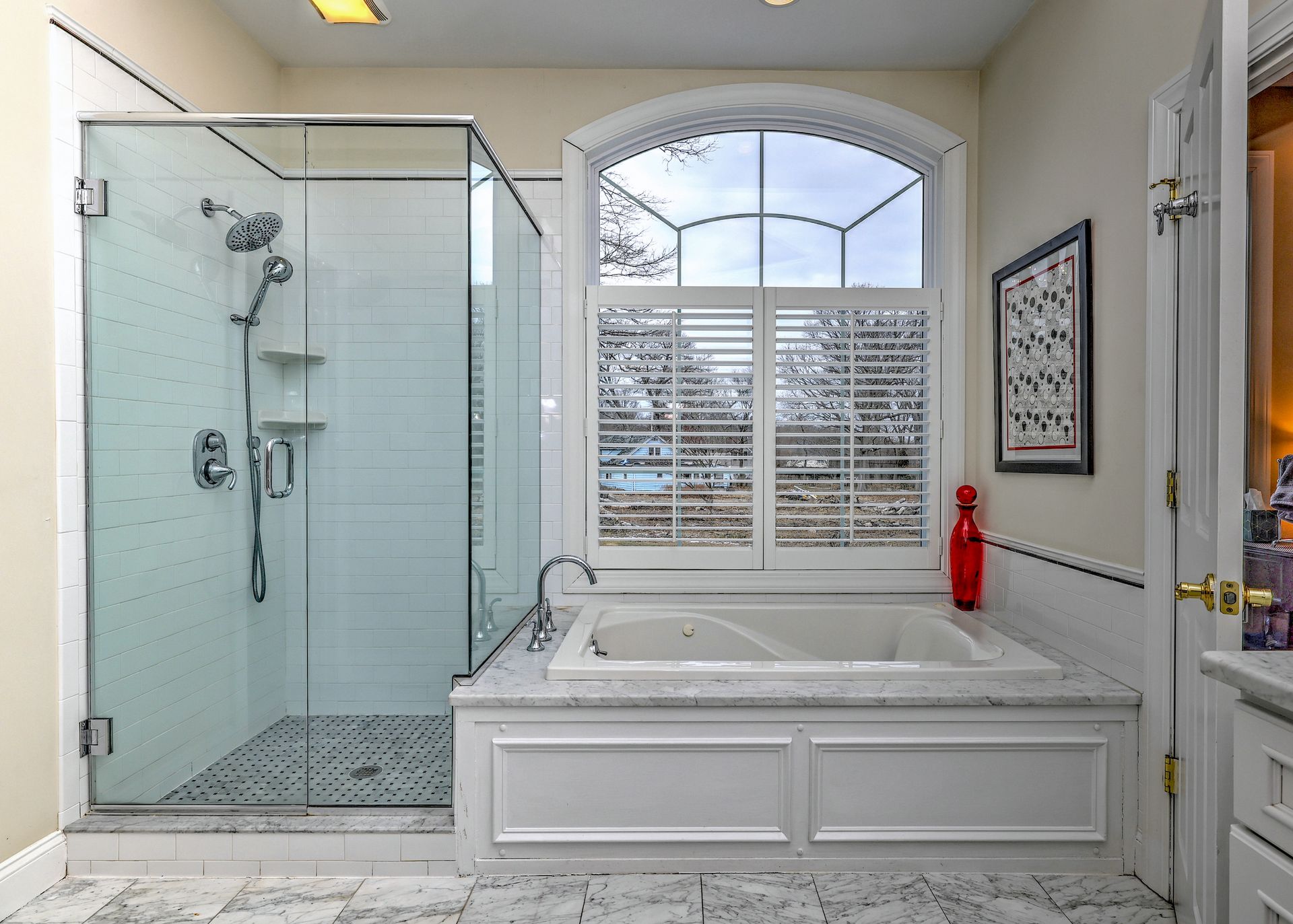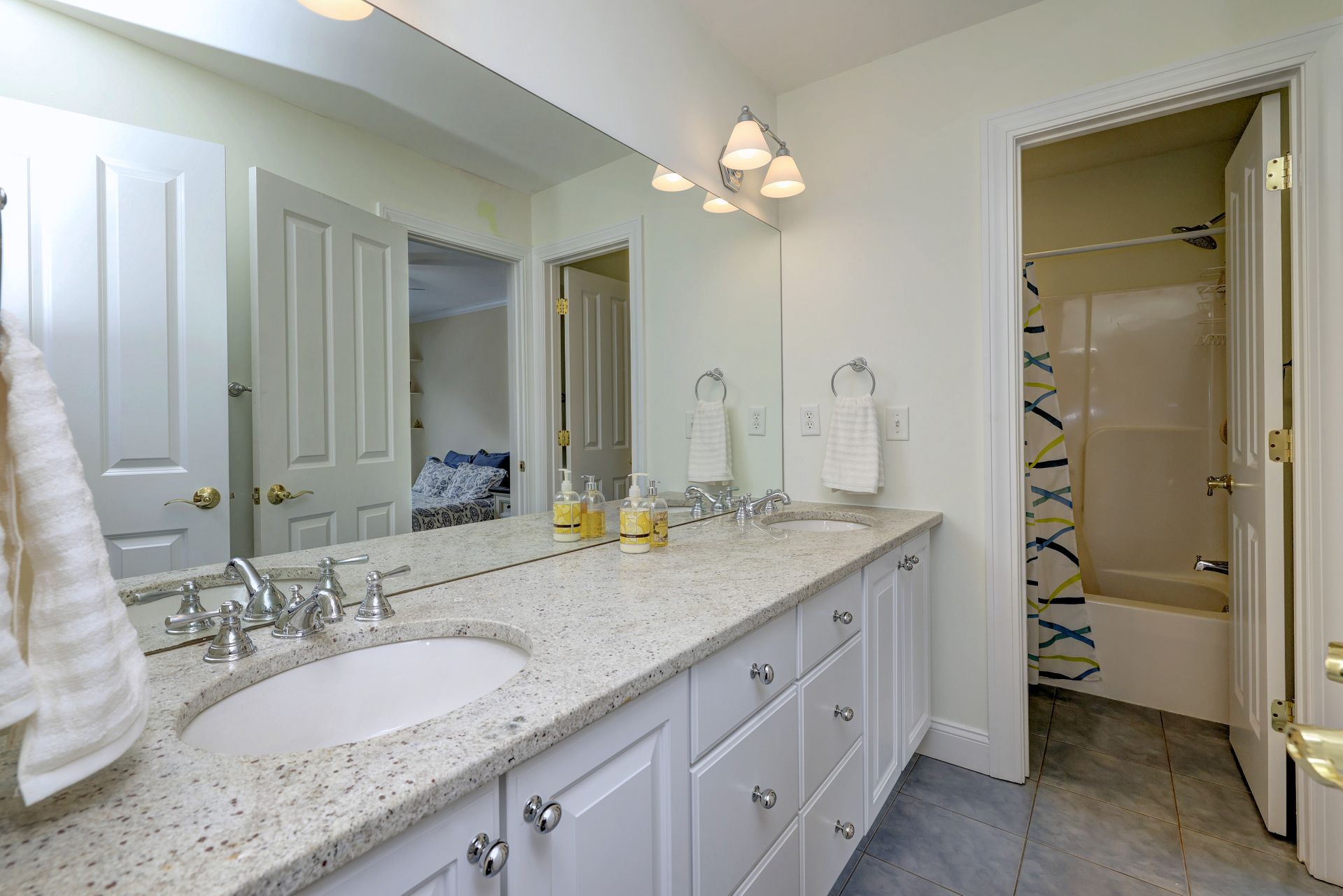 The first-floor primary suite is a peaceful retreat with additional sliders to the deck, a tray ceiling, a luxurious bath with a Whirlpool tub, an oversized shower, and a walk-in closet. A private office on the main floor with walk-in closet and adjacent full bath offers versatility—ideal for a fifth bedroom.