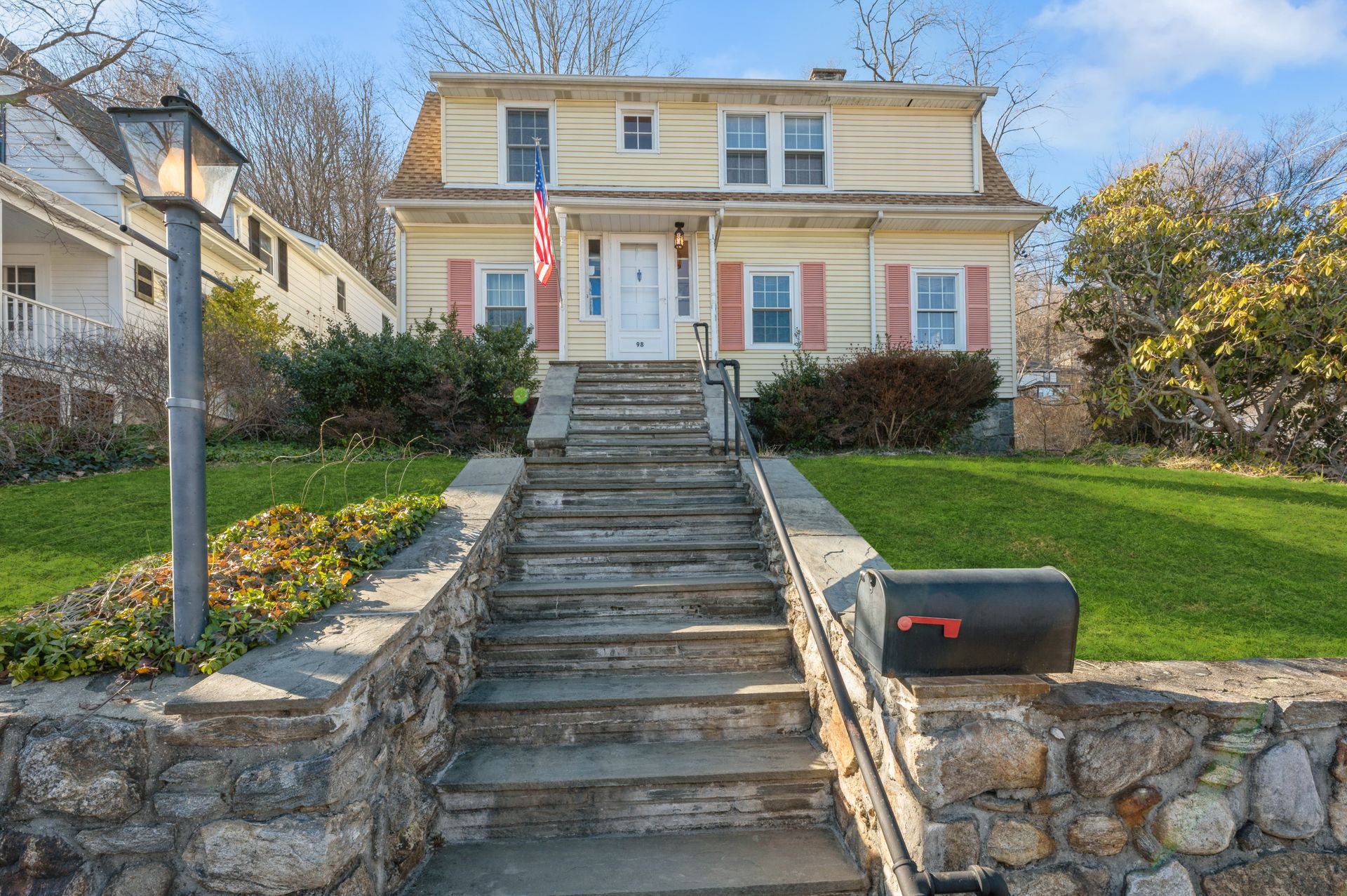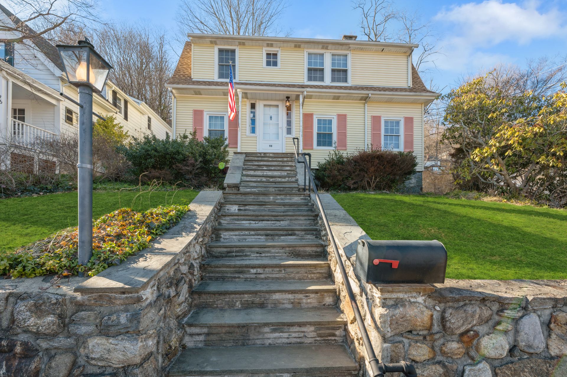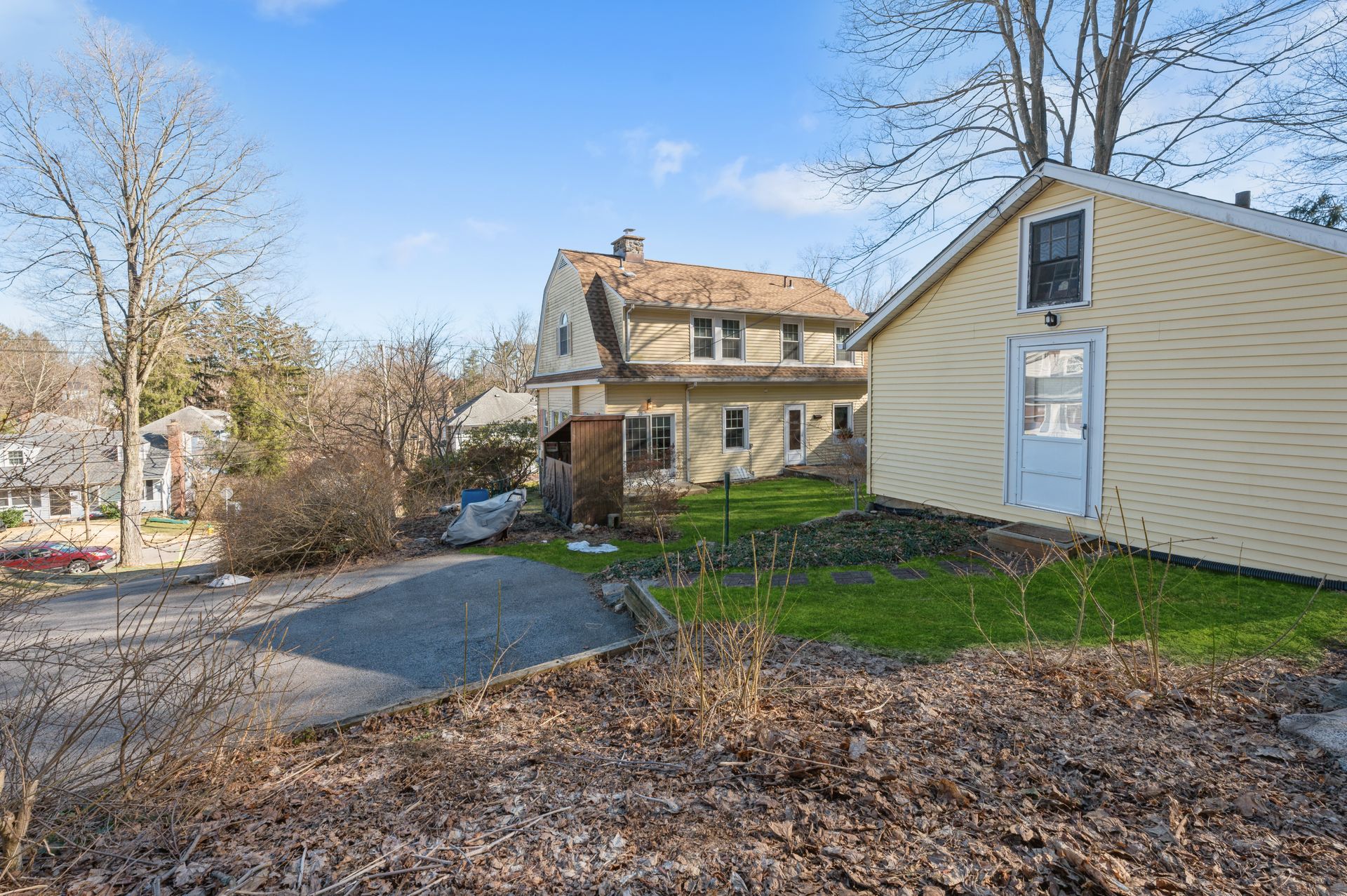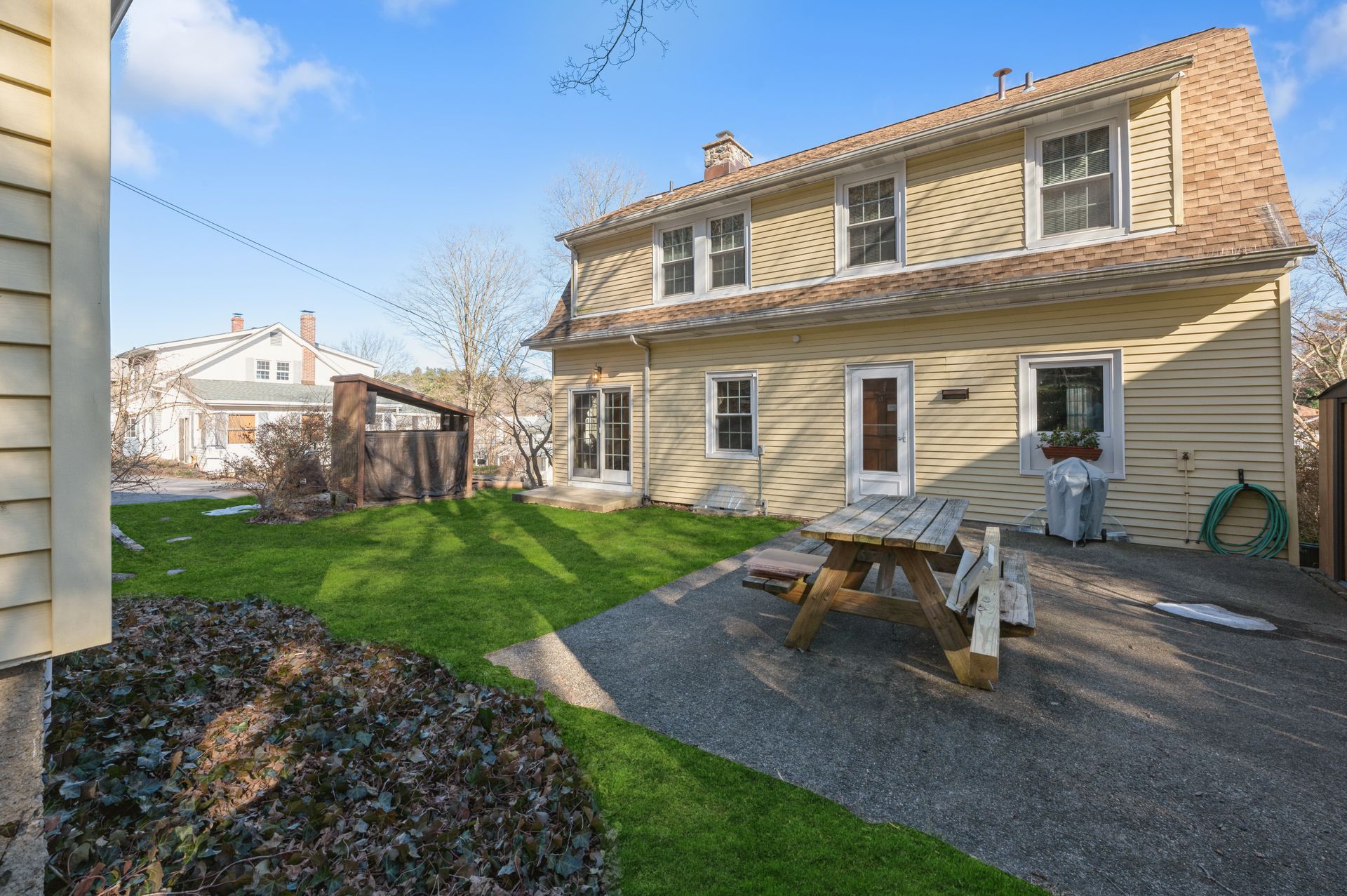 This charming colonial-style home is just a few blocks away from Village shops, train to NYC, Burns Film Center and Farmers Market. Center hall entry opens to an extra-wide staircase to the second floor. To the right of the entry is the living room with gas-fired stone fireplace to keep you warm and cozy. Behind the fireplace is a sunny office area with sliding glass door to the backyard. To the left of the entry is the formal dining room and then the eat-in kitchen. The first-floor features nine-foot ceilings, hardwood floors, pendulum lighting and thermal windows all around. The second-floor features three bedrooms including an expanded master suite with bathroom and walk-in closet. At the top of the staircase is a window seat with a built-in laundry chute. The attic is walk-up and can accommodate lots of storage. The basement is unfinished and has the laundry, a workbench, the oil tank and all the other mechanicals including generator hook up and electric meter to keep track of the cabin's electric usage. Owner's solar electric panels on roof cover most electric cost. There is more, a cute 3 room cabin is located behind the house.
