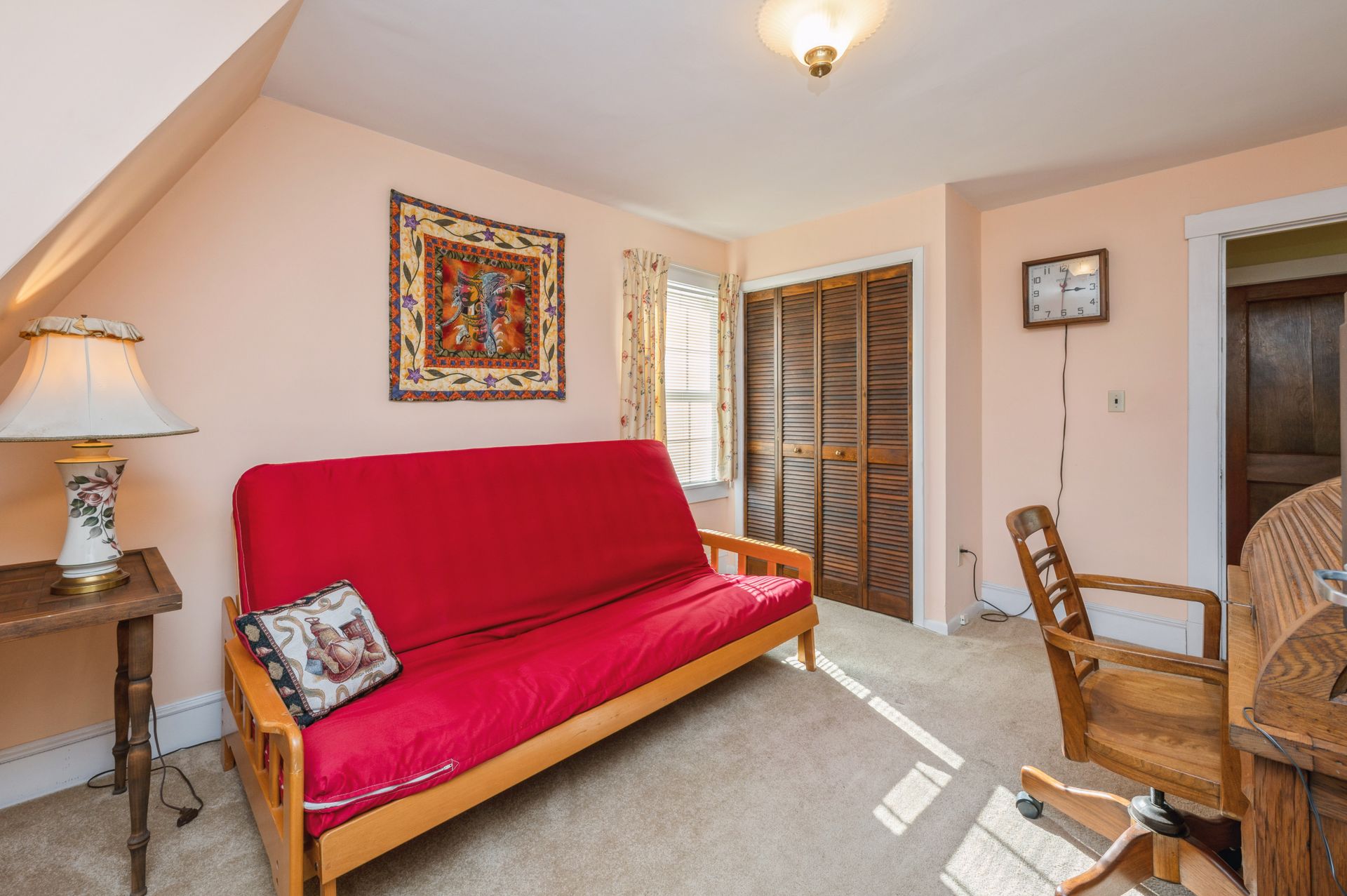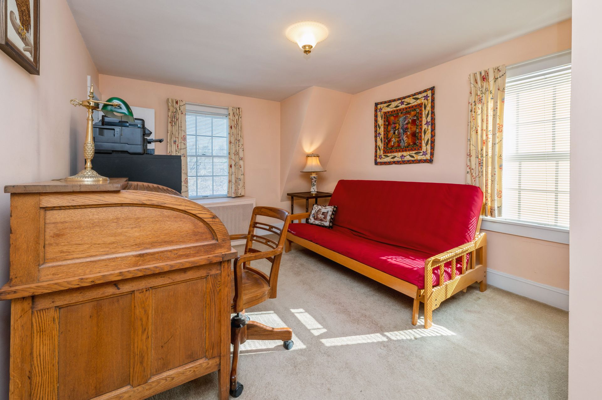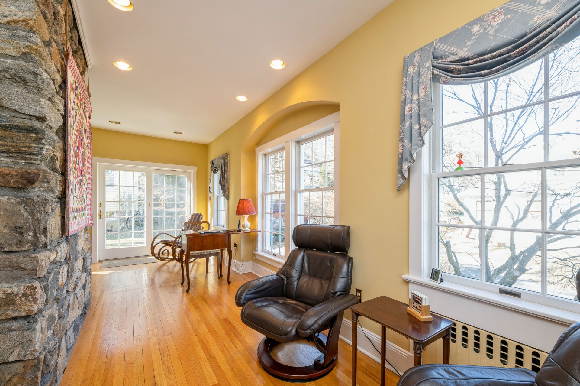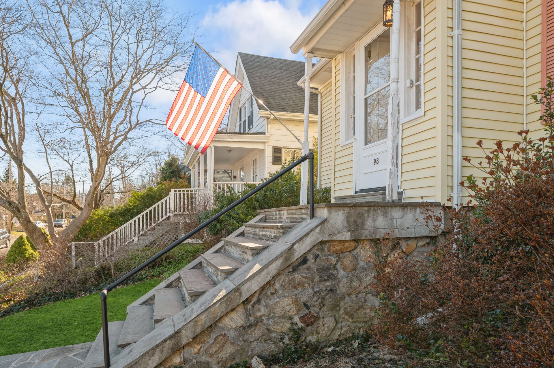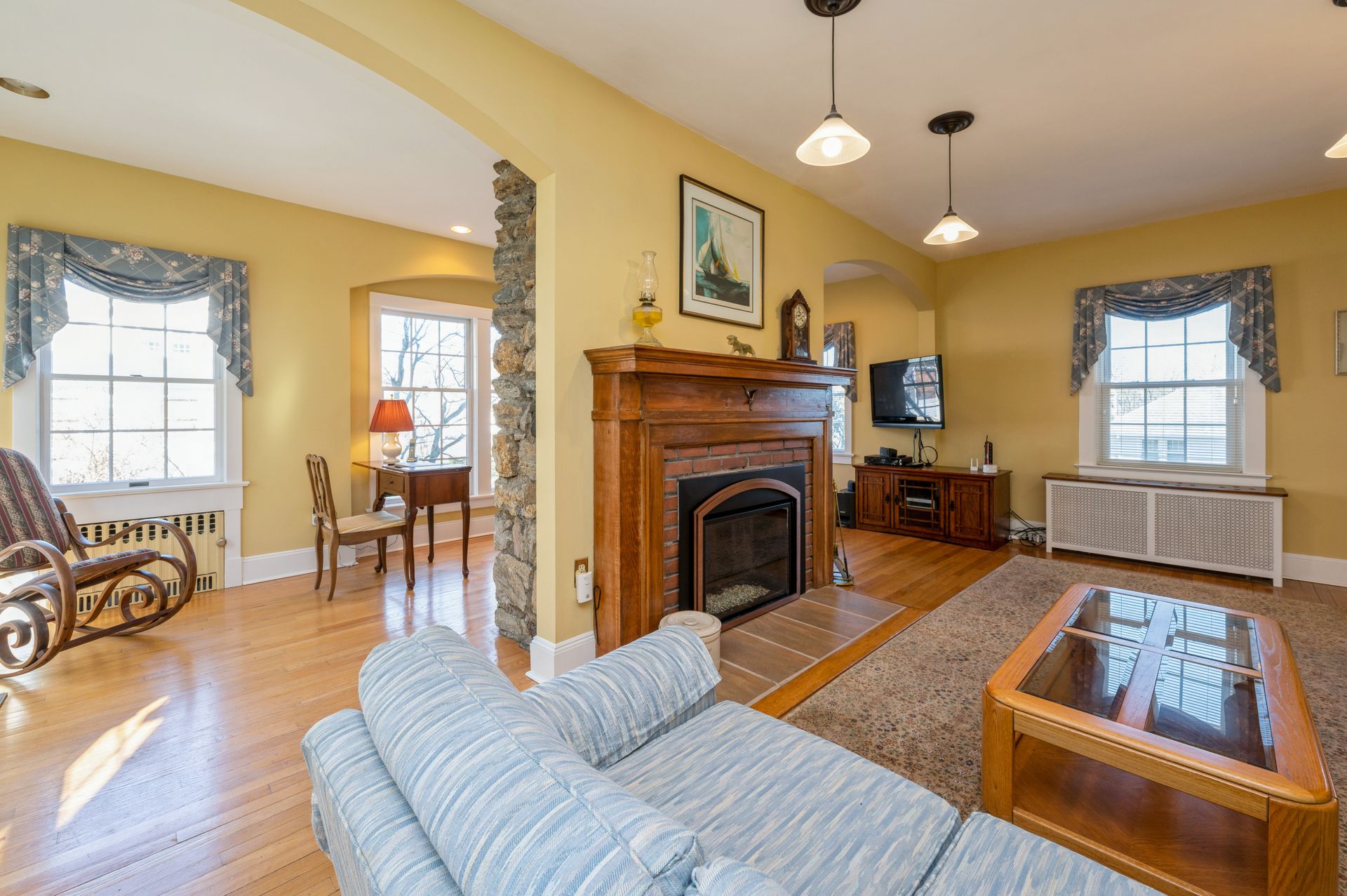 This charming colonial-style home is just a few blocks away from Village shops, train to NYC, Burns Film Center and Farmers Market. Center hall entry opens to an extra-wide staircase to the second floor. To the right of the entry is the living room with gas-fired stone fireplace to keep you warm and cozy. Behind the fireplace is a sunny office area with sliding glass door to the backyard. To the left of the entry is the formal dining room and then the eat-in kitchen. The first-floor features nine-foot ceilings, hardwood floors, pendulum lighting and thermal windows all around. The second-floor features three bedrooms including an expanded master suite with bathroom and walk-in closet. At the top of the staircase is a window seat with a built-in laundry chute. The attic is walk-up and can accommodate lots of storage. The basement is unfinished and has the laundry, a workbench, the oil tank and all the other mechanicals including generator hook up and electric meter to keep track of the cabin's electric usage. Owner's solar electric panels on roof cover most electric cost. There is more, a cute 3 room cabin is located behind the house.