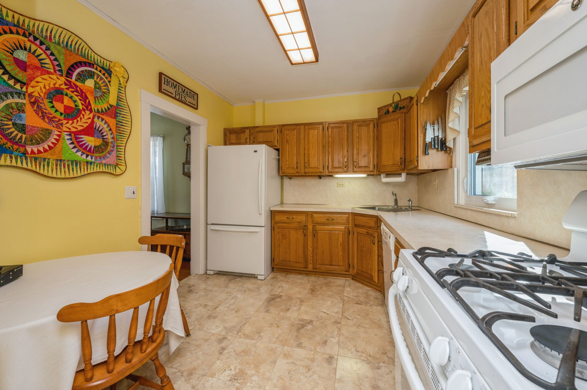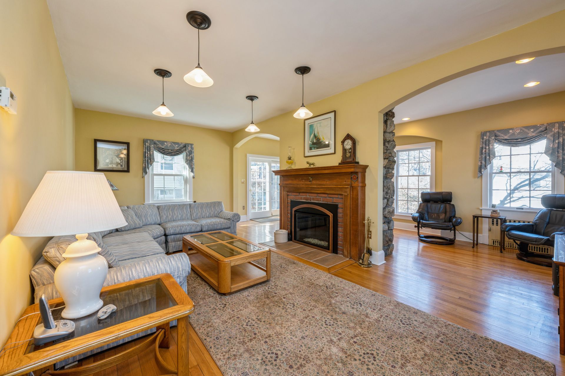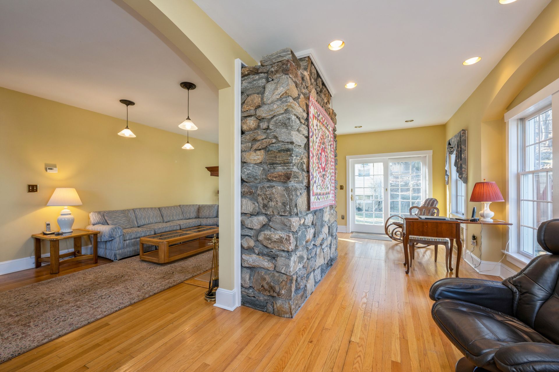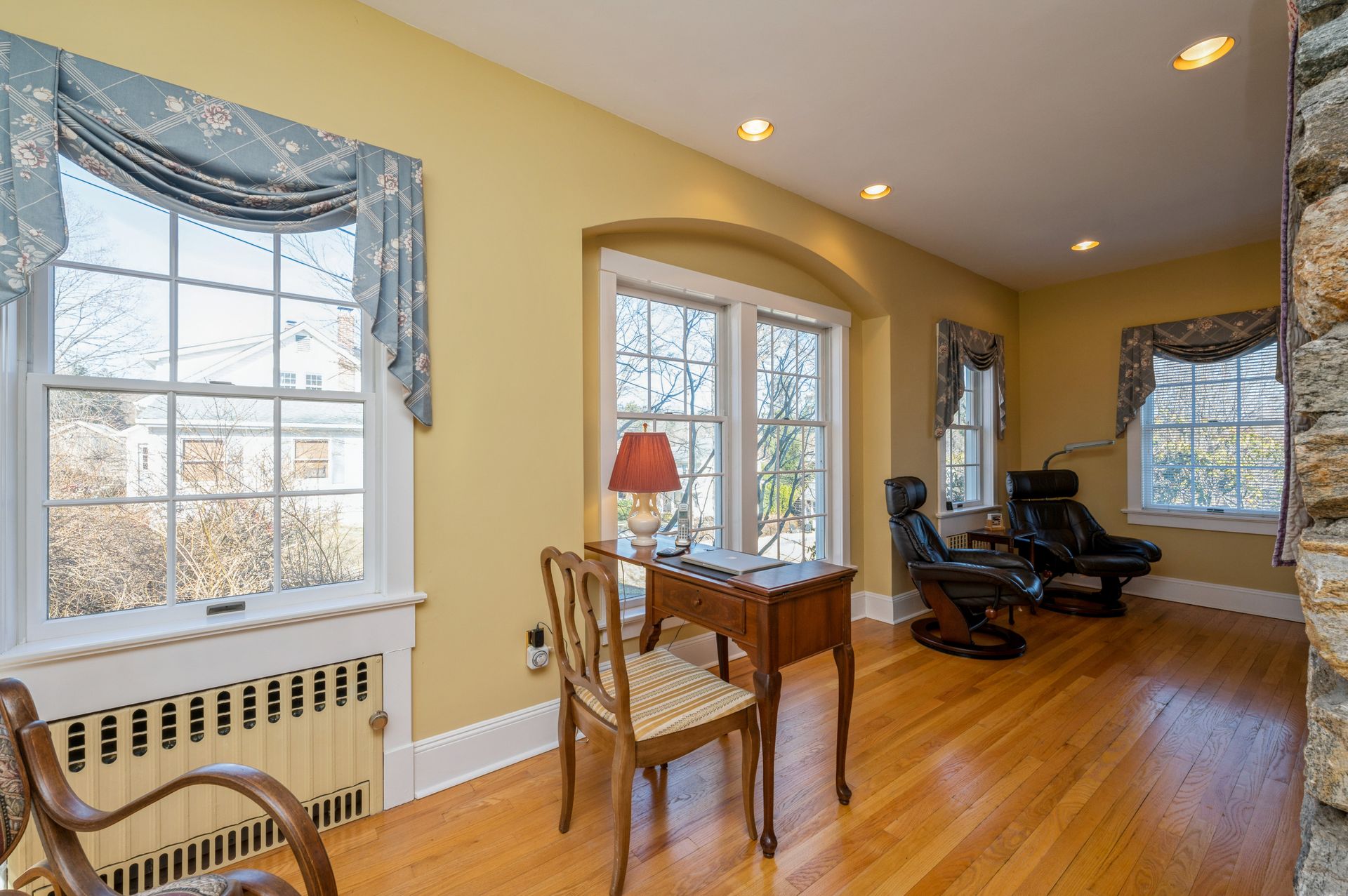 This charming colonial-style home is just a few blocks away from Village shops, train to NYC, Burns Film Center and Farmers Market. Center hall entry opens to an extra-wide staircase to the second floor. To the right of the entry is the living room with gas-fired stone fireplace to keep you warm and cozy. Behind the fireplace is a sunny office area with sliding glass door to the backyard. To the left of the entry is the formal dining room and then the eat-in kitchen. The first-floor features nine-foot ceilings, hardwood floors, pendulum lighting and thermal windows all around. The second-floor features three bedrooms including an expanded master suite with bathroom and walk-in closet. At the top of the staircase is a window seat with a built-in laundry chute. The attic is walk-up and can accommodate lots of storage. The basement is unfinished and has the laundry, a workbench, the oil tank and all the other mechanicals including generator hook up and electric meter to keep track of the cabin's electric usage. Owner's solar electric panels on roof cover most electric cost. There is more, a cute 3 room cabin is located behind the house.