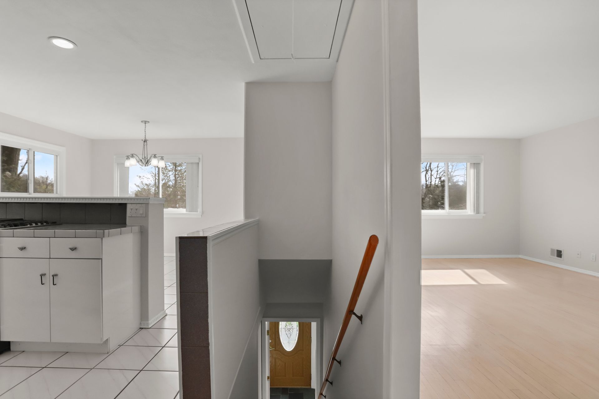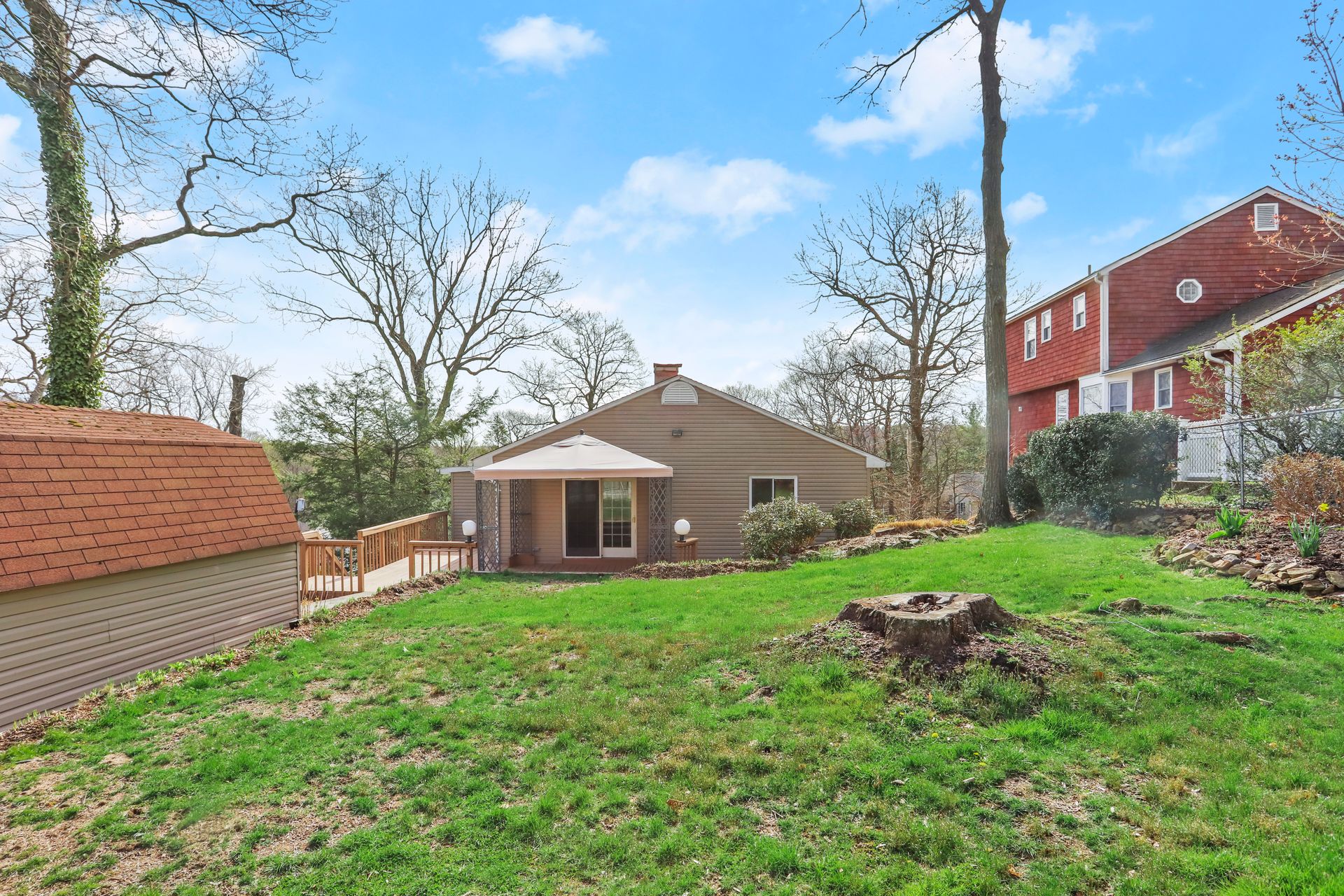 Spiffy high ranch in the Village of Pleasantville has a flexible floor plan, scenic view and level back yard for outdoor fun. Many features include polished hardwood floors, central air conditioning, freshly painted walls and open floor plan with lots of natural light. Sliding glass French door leads to covered deck, back yard and shed. Efficient gas boiler with on demand hot water. Newer vinyl siding and windows. It's time to move.
