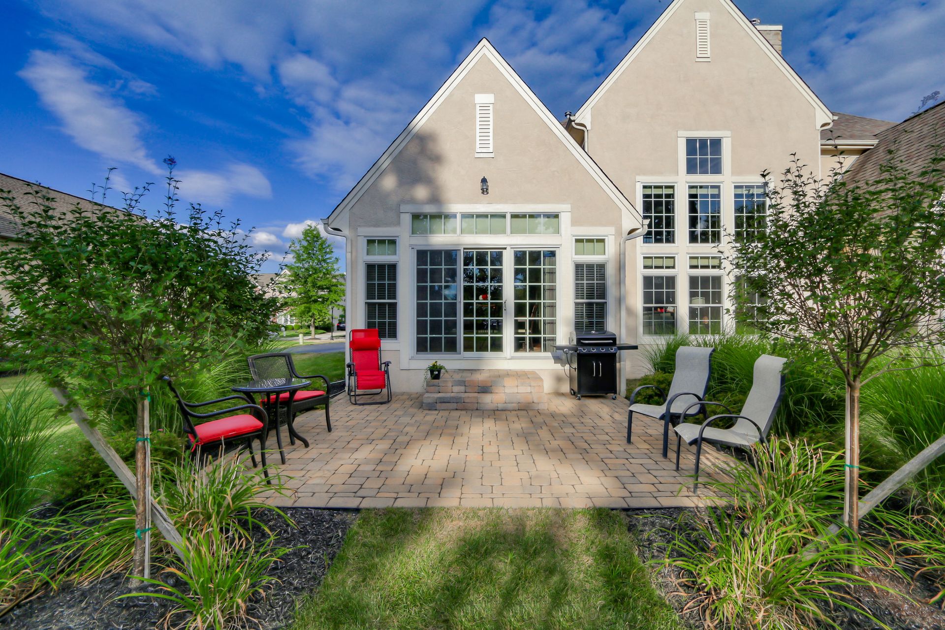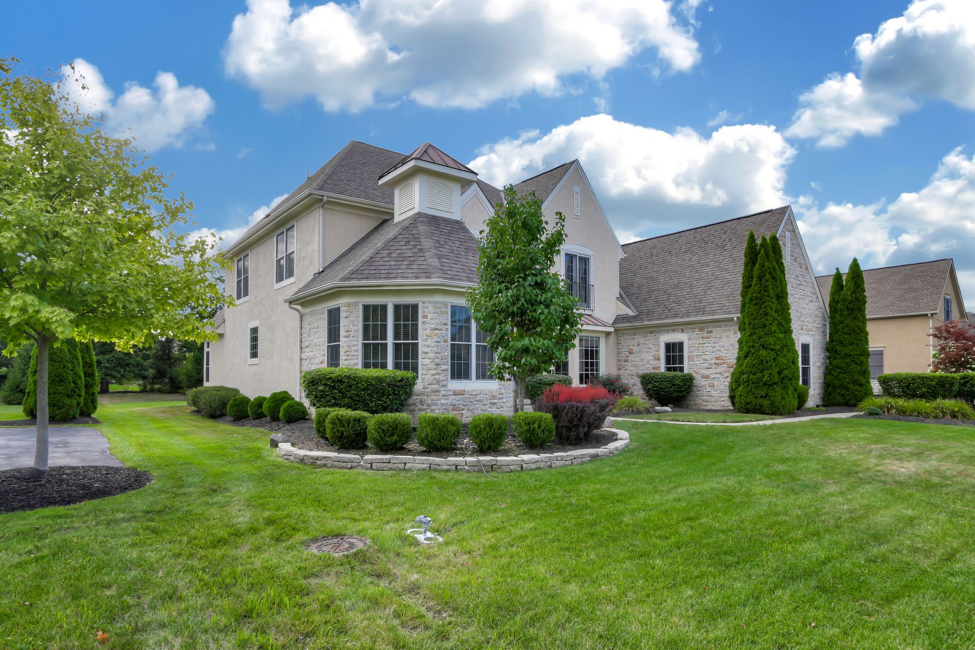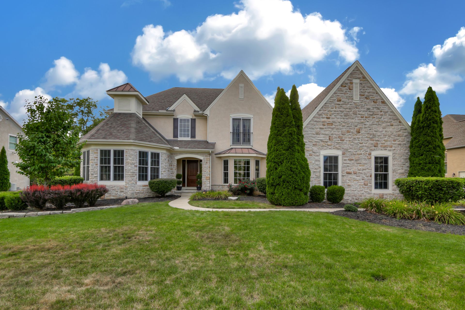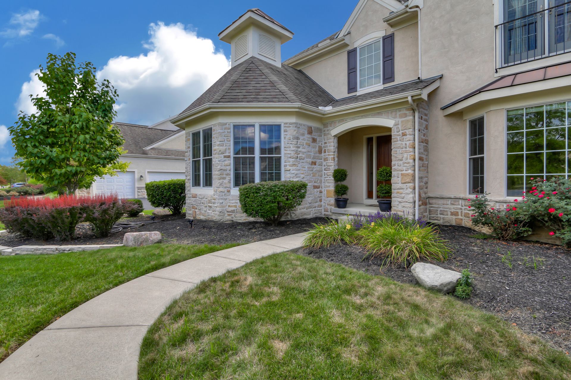 LOCATION! This gorgeous quality custom built home features luxurious craftsmanship throughout. Open concept floor plan with soaring ceilings in the Great Room, stone fireplace, and a wall of windows to let in lots of natural light. You'll love the Chef's Kitchen with extra large island, granite counters, stainless appliances, and a generous breakfast nook. More floor to ceiling windows and a glass slider that opens to a paver patio and a sizable backyard with mature landscaping. First floor Owner's Suite with spa-like bath and large walk-in closet. Large Den and Formal Dining Room with even more floor to ceiling windows make this home feel extra spacious and filled with light. Custom trim & built-ins, crown molding and hardwood floors, all in impeccable condition. You'll appreciate the craftsmanship in this home, and you'll love the neighborhood! Dublin Schools!