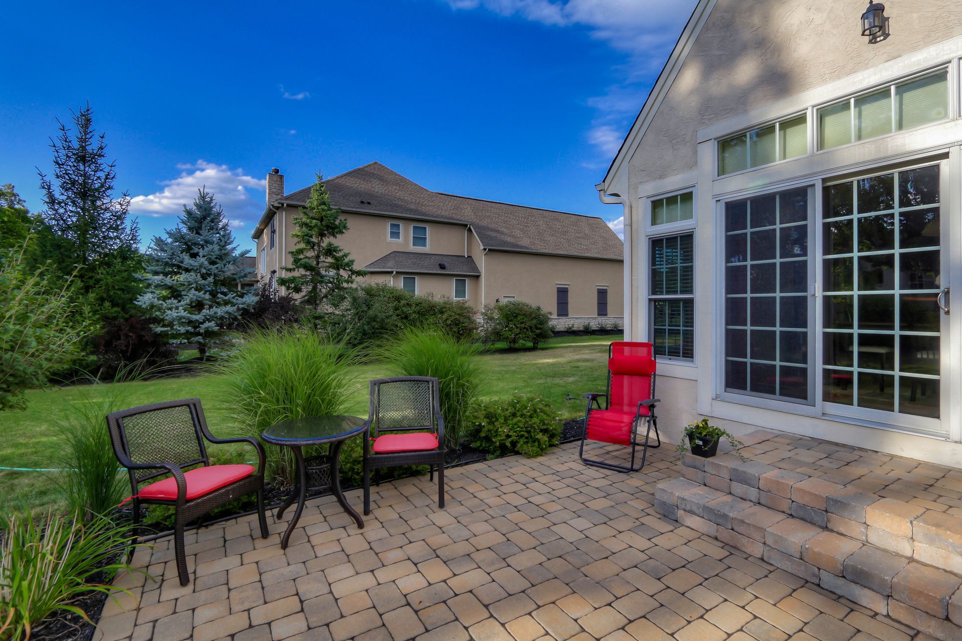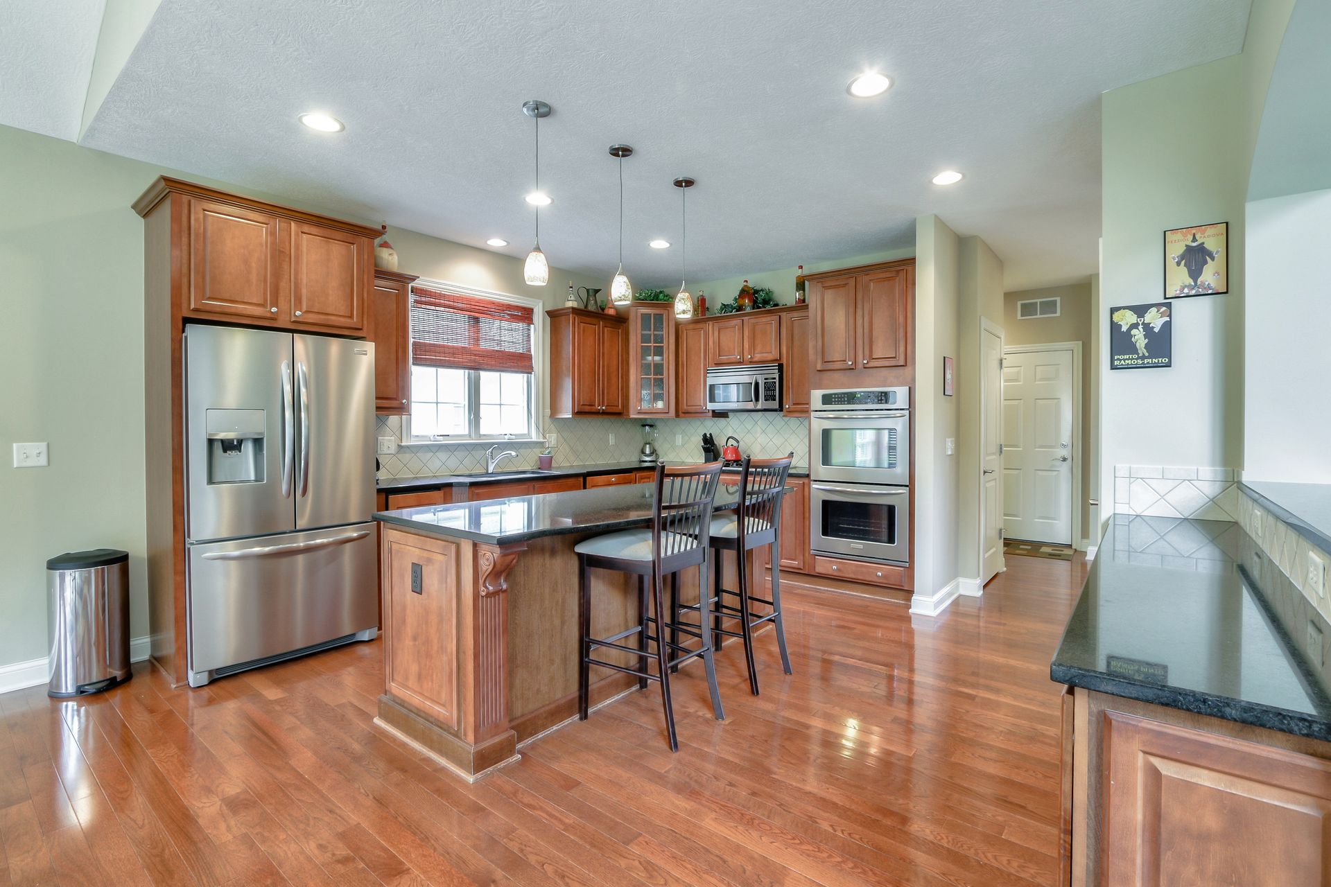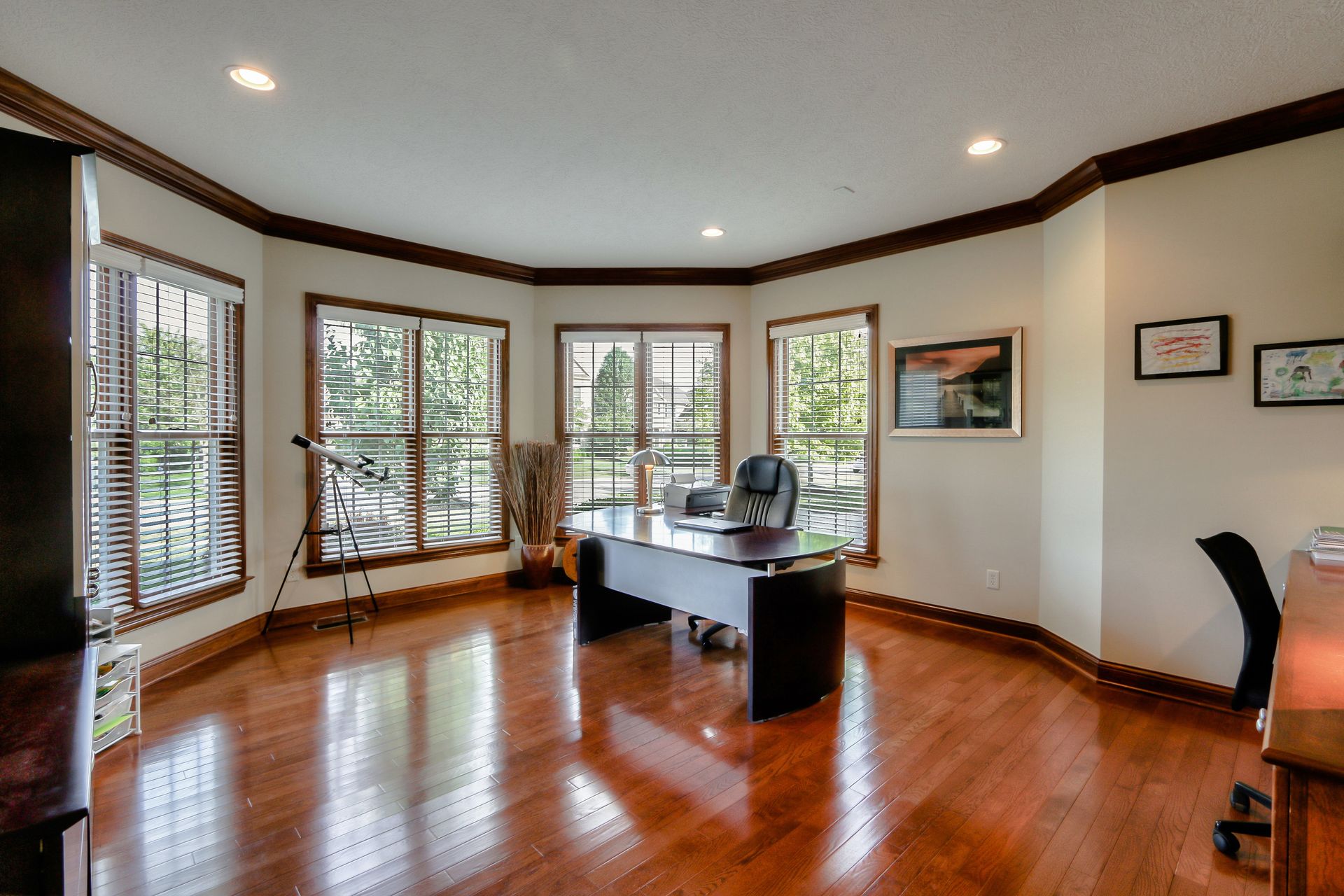 LOCATION! This gorgeous quality custom built home features luxurious craftsmanship throughout. Open concept floor plan with soaring ceilings in the Great Room, stone fireplace, and a wall of windows to let in lots of natural light. You'll love the Chef's Kitchen with extra large island, granite counters, stainless appliances, and a generous breakfast nook. More floor to ceiling windows and a glass slider that opens to a paver patio and a sizable backyard with mature landscaping. First floor Owner's Suite with spa-like bath and large walk-in closet. Large Den and Formal Dining Room with even more floor to ceiling windows make this home feel extra spacious and filled with light. Custom trim & built-ins, crown molding and hardwood floors, all in impeccable condition. You'll appreciate the craftsmanship in this home, and you'll love the neighborhood! Dublin Schools!