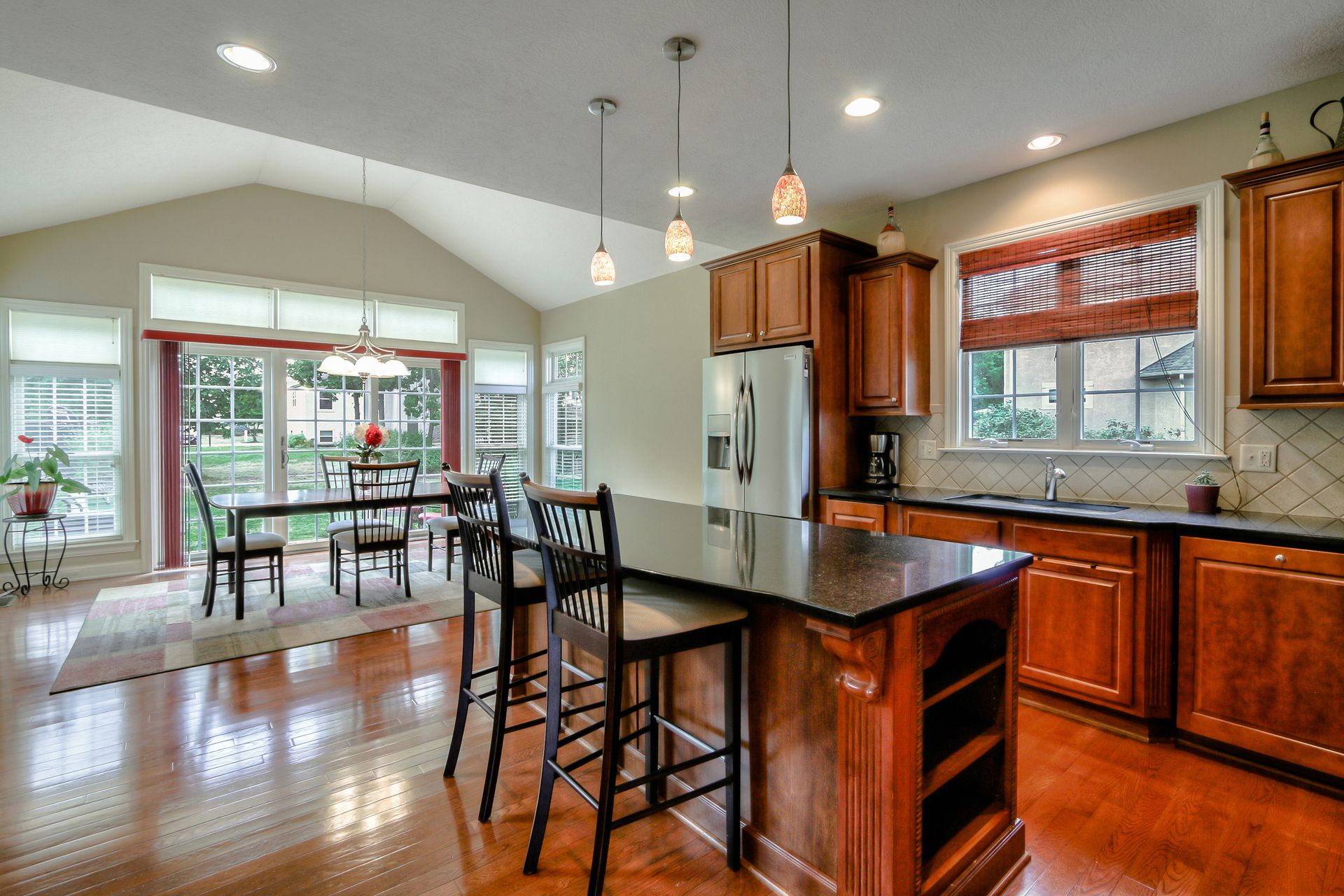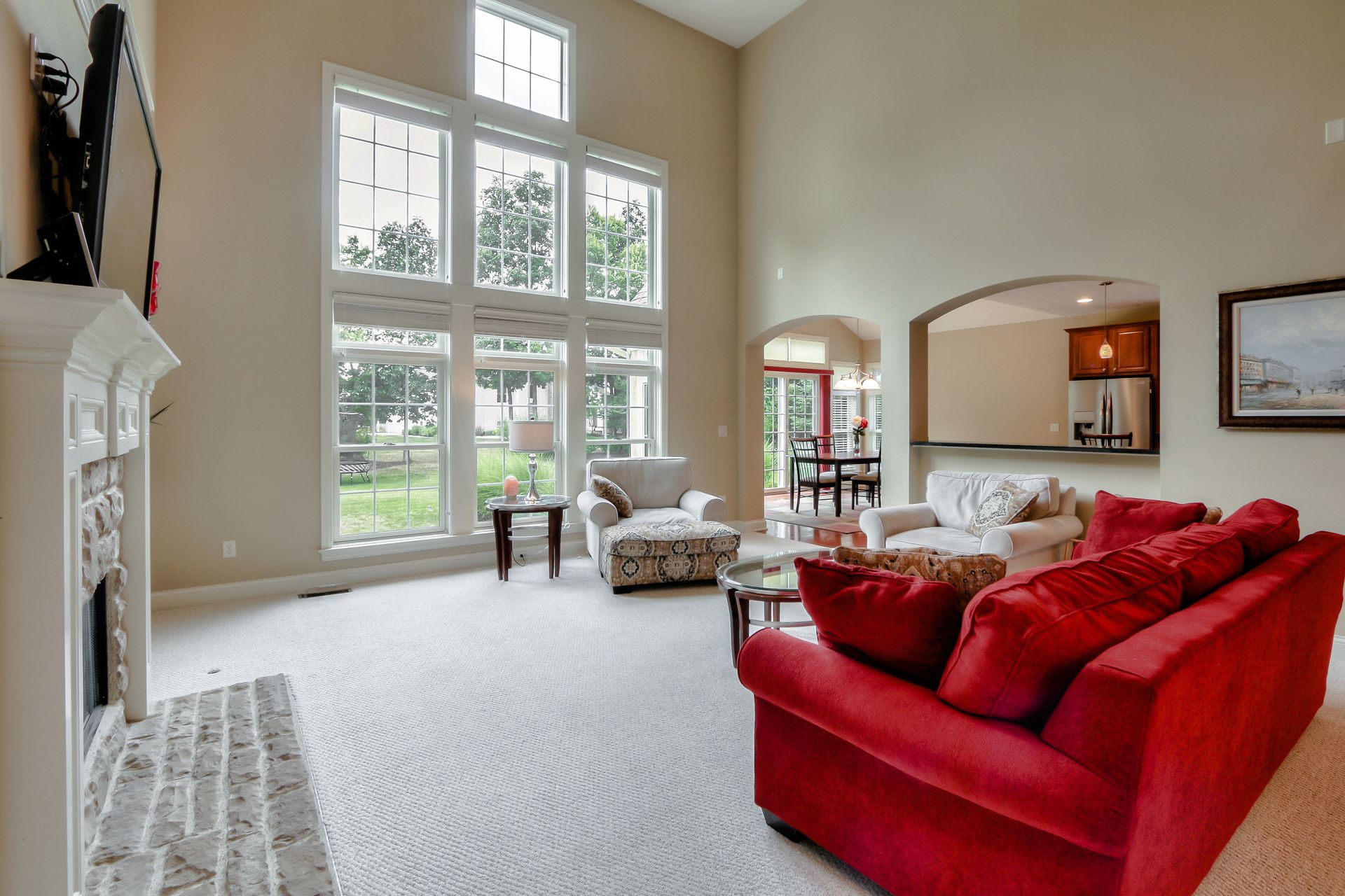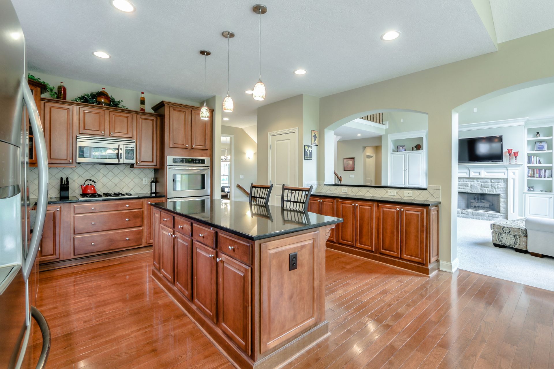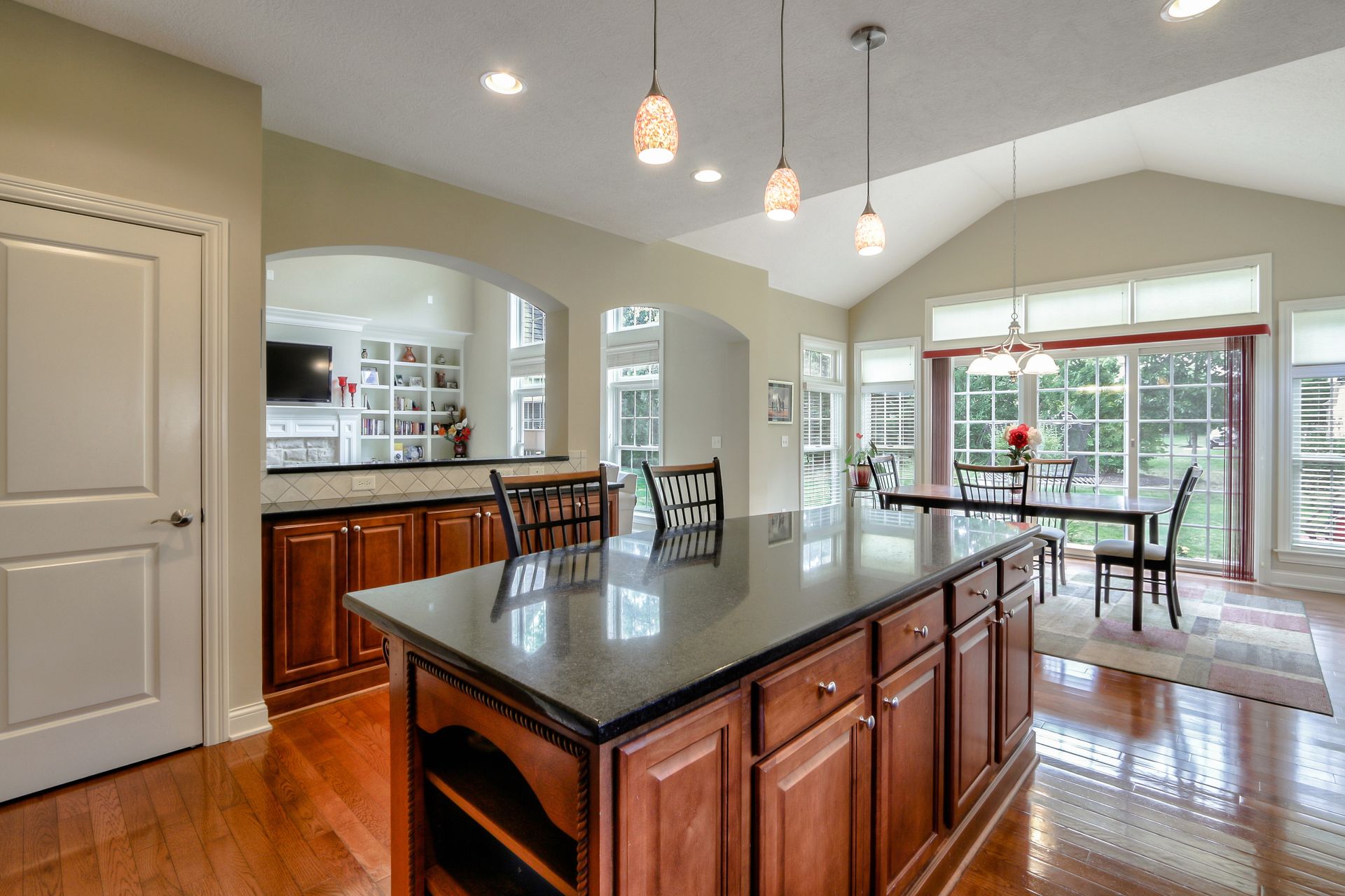 LOCATION! This gorgeous quality custom built home features luxurious craftsmanship throughout. Open concept floor plan with soaring ceilings in the Great Room, stone fireplace, and a wall of windows to let in lots of natural light. You'll love the Chef's Kitchen with extra large island, granite counters, stainless appliances, and a generous breakfast nook. More floor to ceiling windows and a glass slider that opens to a paver patio and a sizable backyard with mature landscaping. First floor Owner's Suite with spa-like bath and large walk-in closet. Large Den and Formal Dining Room with even more floor to ceiling windows make this home feel extra spacious and filled with light. Custom trim & built-ins, crown molding and hardwood floors, all in impeccable condition. You'll appreciate the craftsmanship in this home, and you'll love the neighborhood! Dublin Schools!