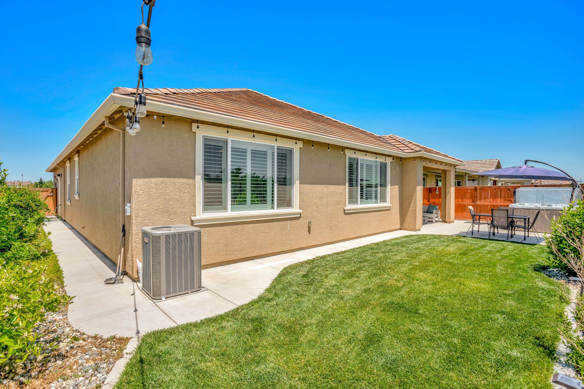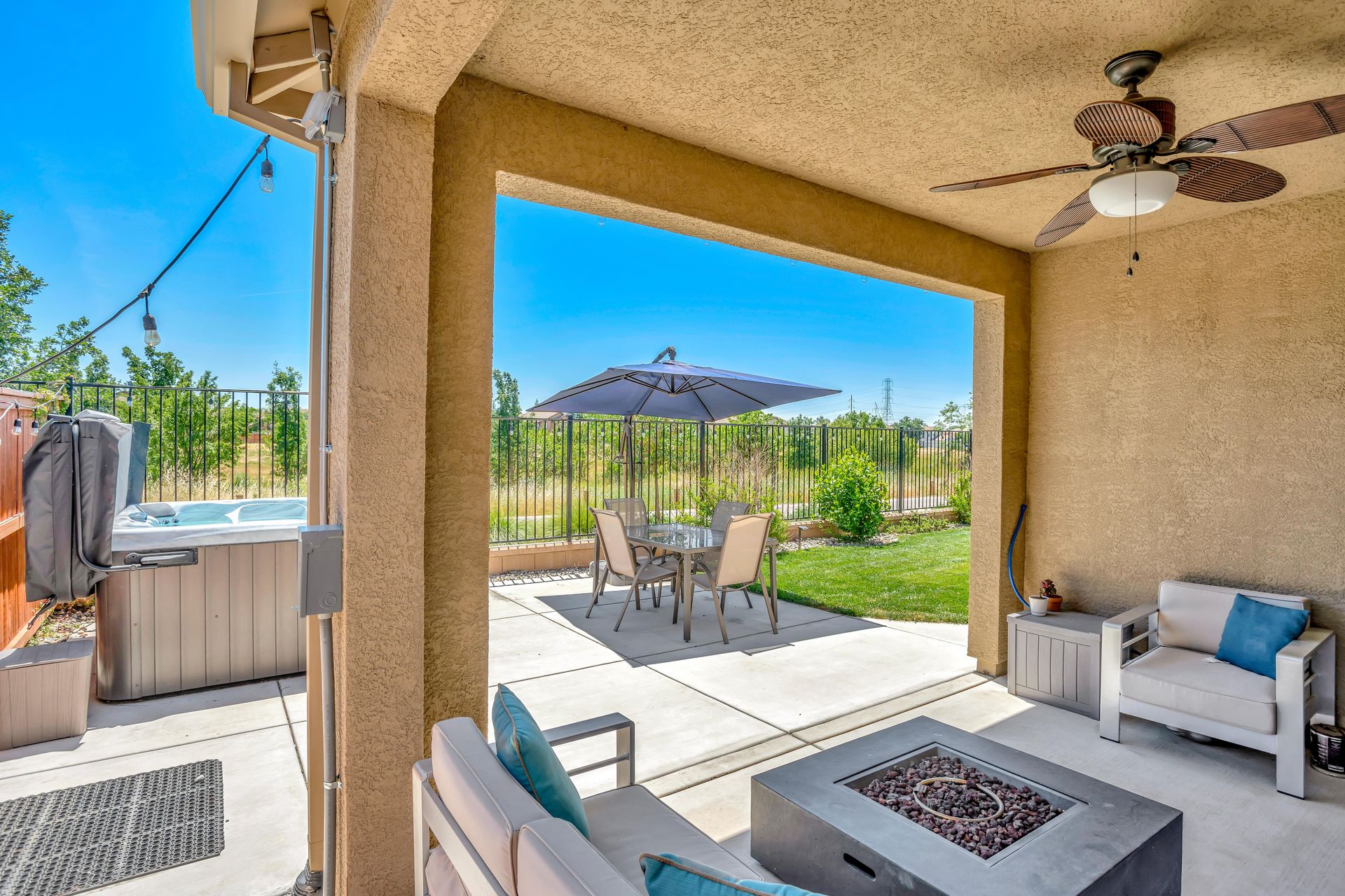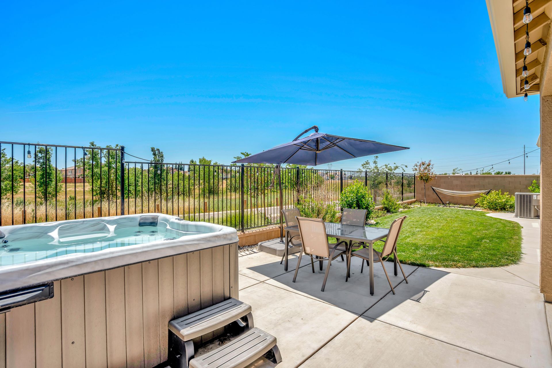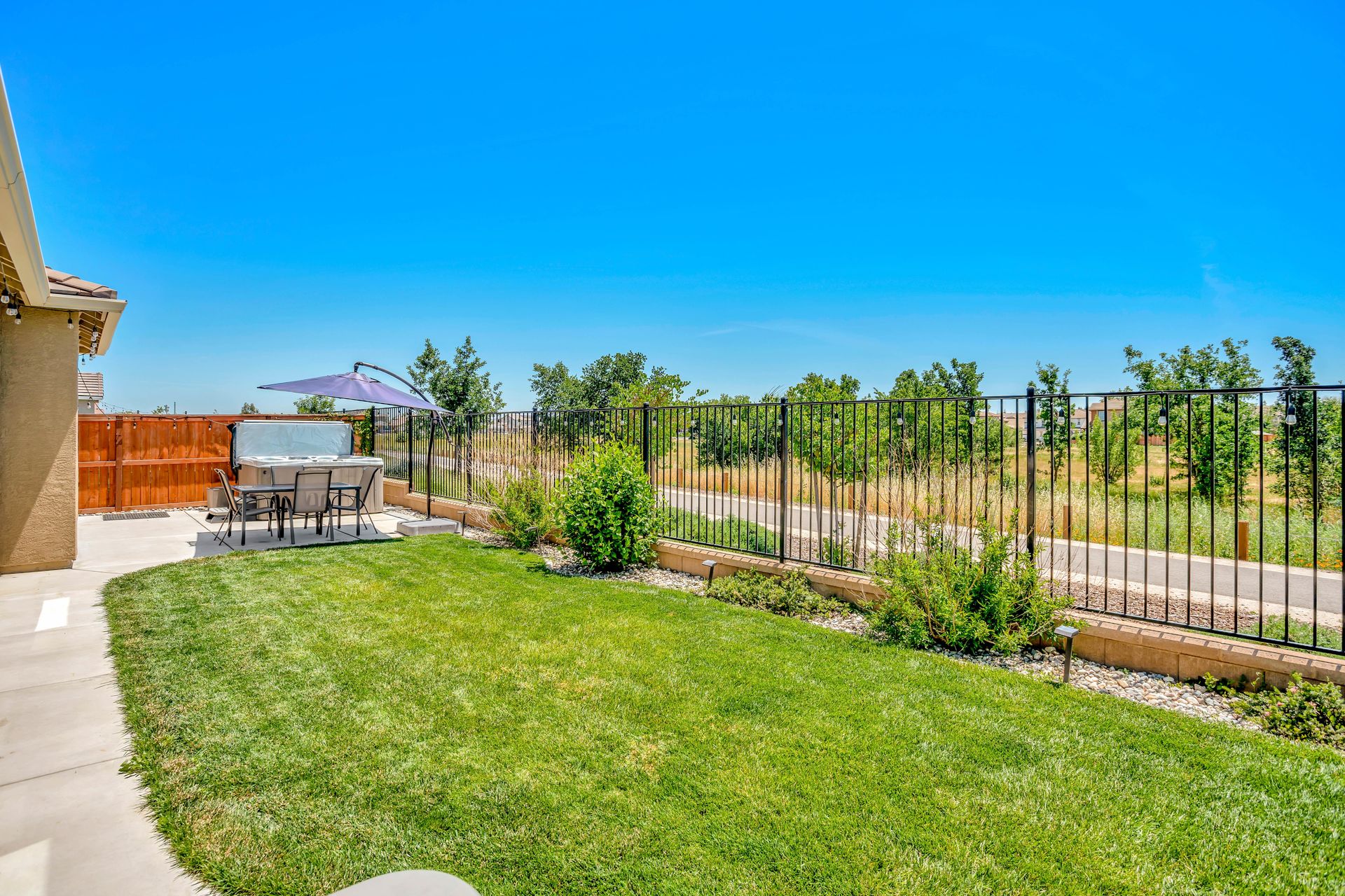 Welcome to this better than new, stunning single-story home. This home will fit all wants and needs with three separate bedroom areas. The front two bedrooms are connected by a shared bathroom, the third bedroom and full bath are off of the hallway and the primary suite is in the back of the home plus a den or fifth bedroom! This home features upgrades galore, including quartz countertops, beautiful kitchen backsplash, stainless steel appliances, a recently redone walk-in shower, tankless water heater, whole house fan, central indoor and garage vacuum, not to mention the fully landscaped backyard with a hot tub to enjoy all year round! You will not be disappointed with all that this home has to offer!