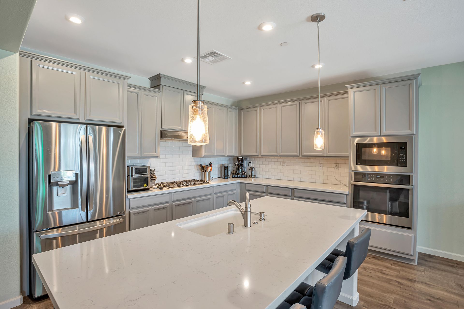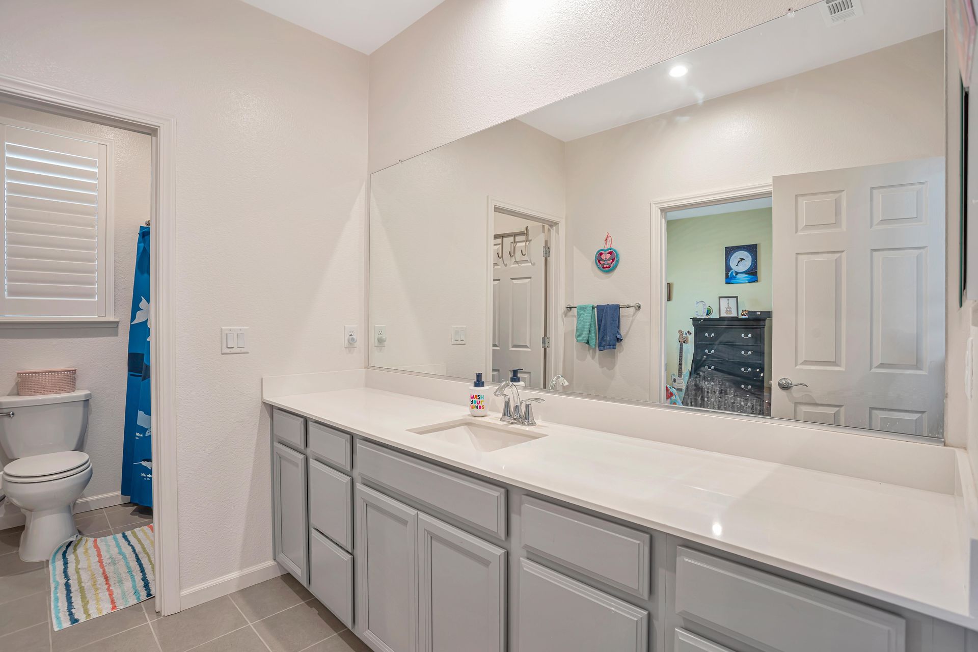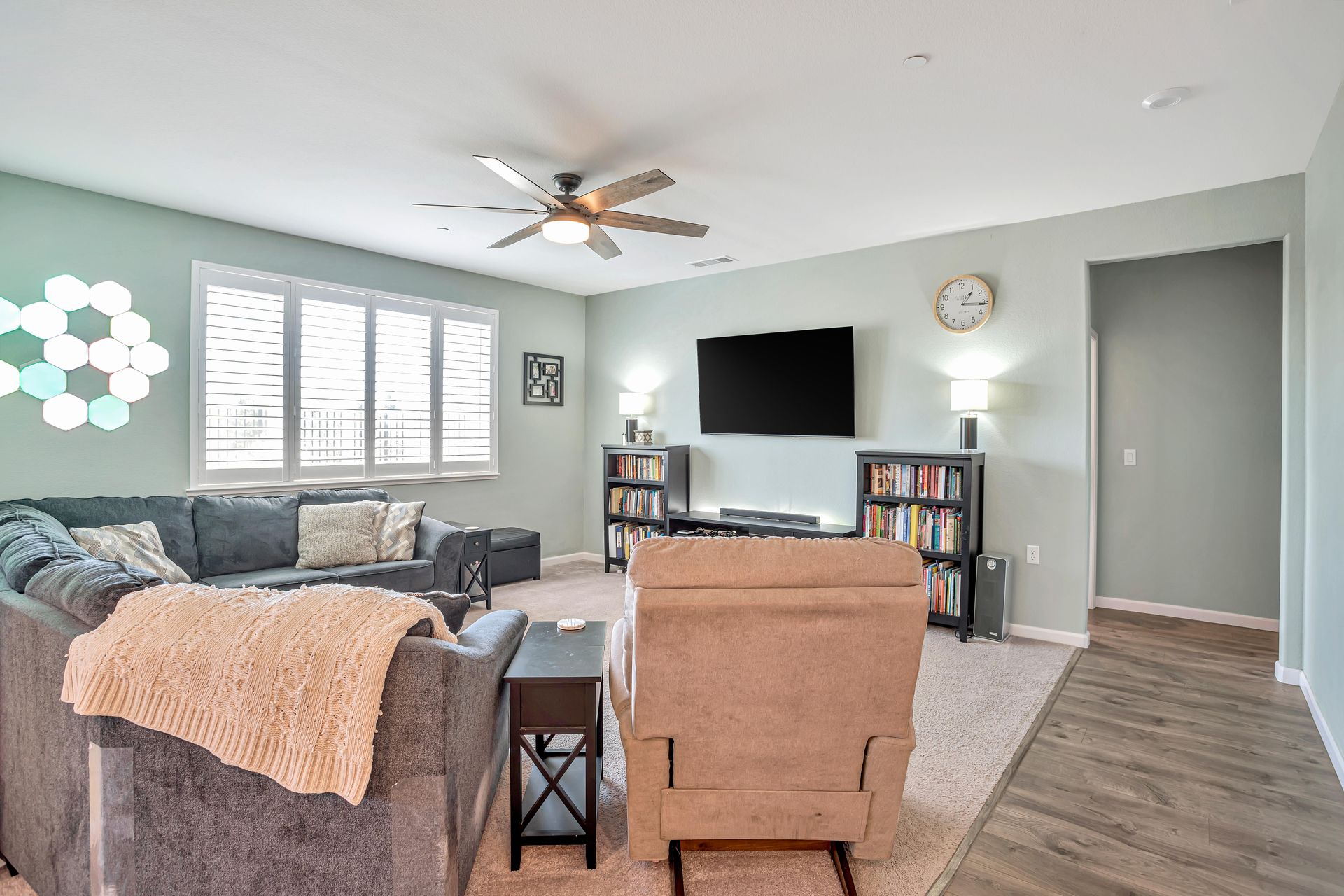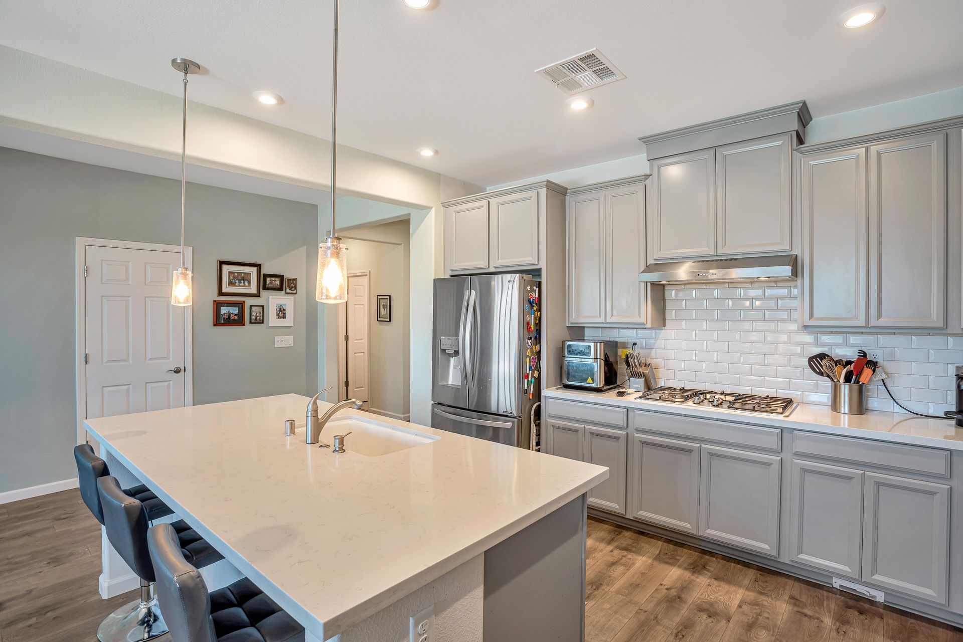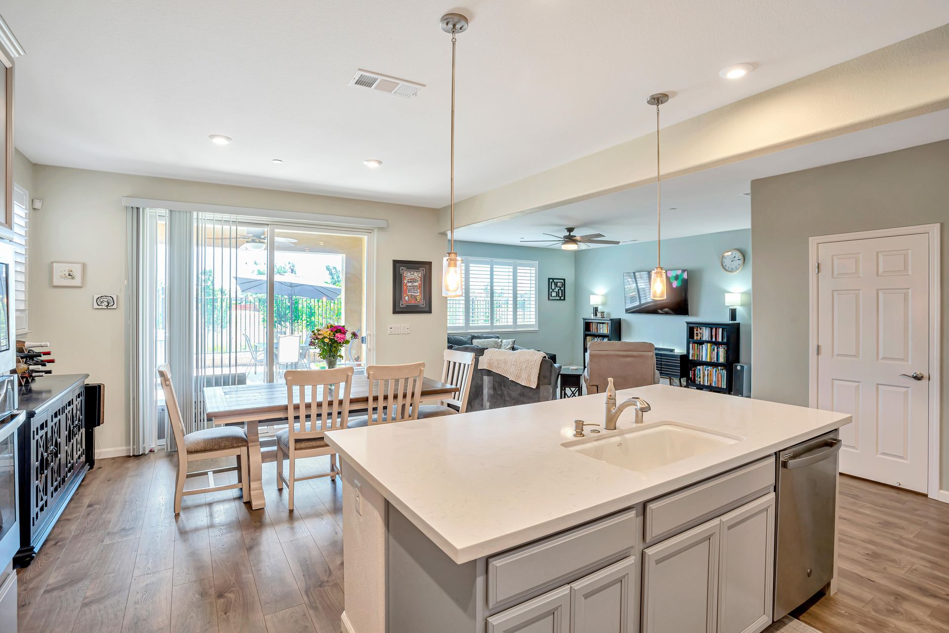 Welcome to this better than new, stunning single-story home. This home will fit all wants and needs with three separate bedroom areas. The front two bedrooms are connected by a shared bathroom, the third bedroom and full bath are off of the hallway and the primary suite is in the back of the home plus a den or fifth bedroom! This home features upgrades galore, including quartz countertops, beautiful kitchen backsplash, stainless steel appliances, a recently redone walk-in shower, tankless water heater, whole house fan, central indoor and garage vacuum, not to mention the fully landscaped backyard with a hot tub to enjoy all year round! You will not be disappointed with all that this home has to offer!
