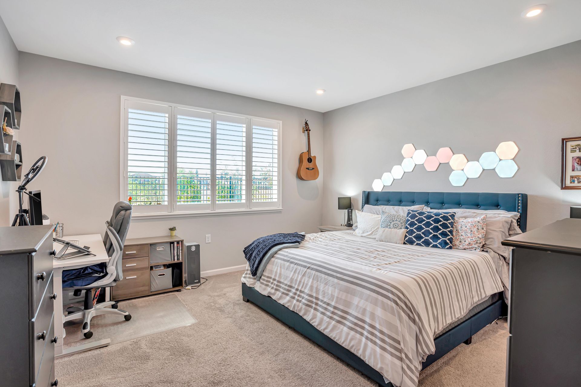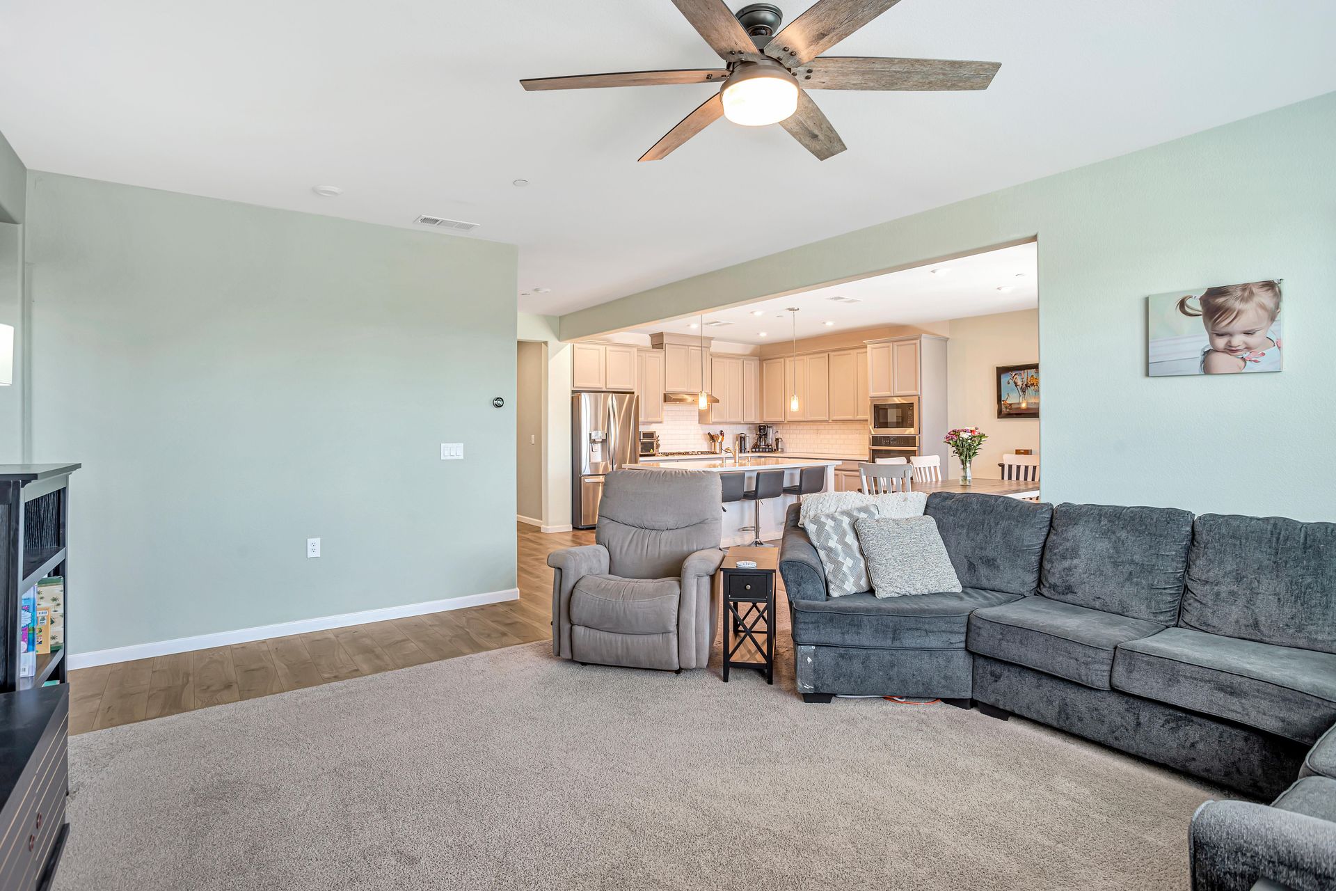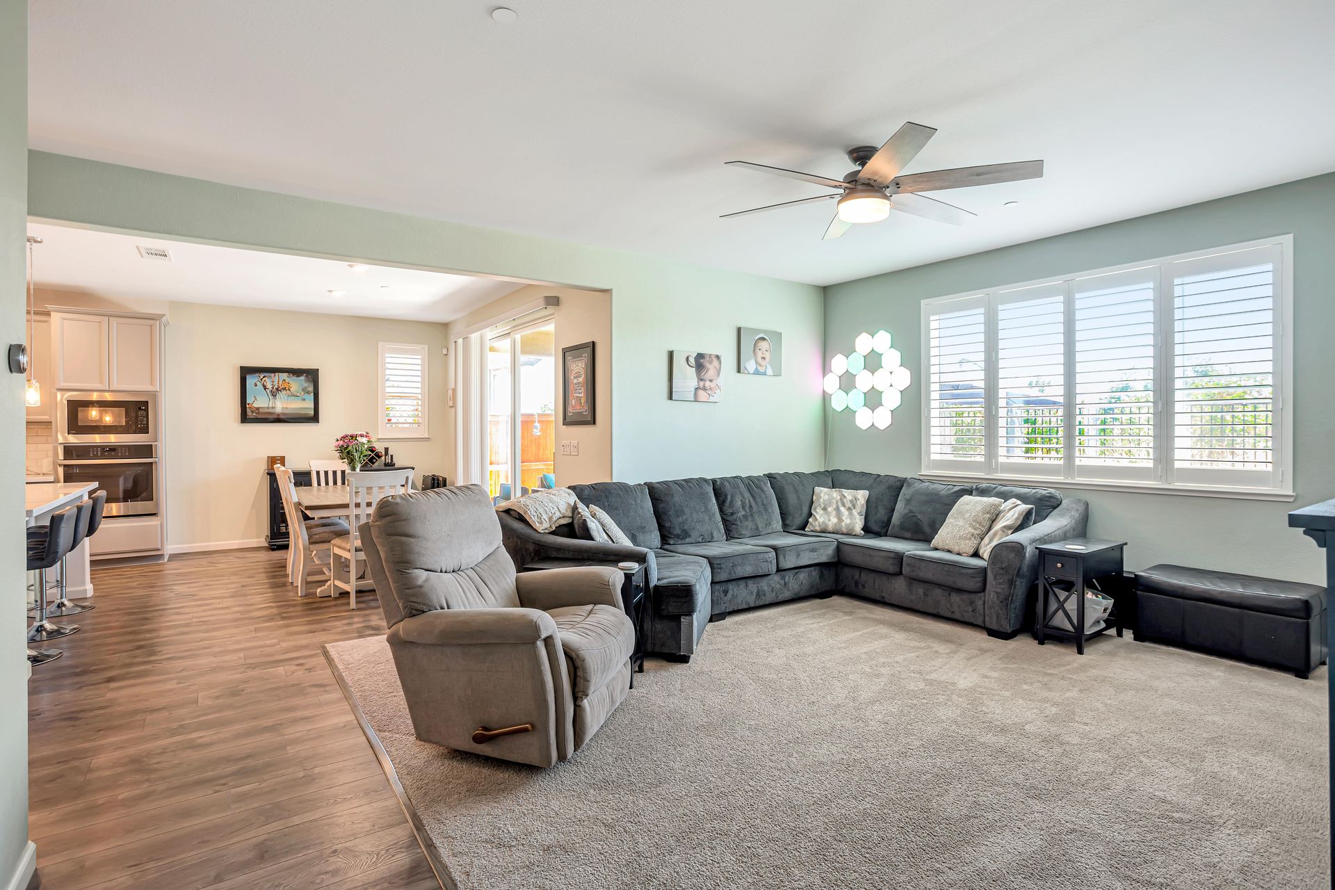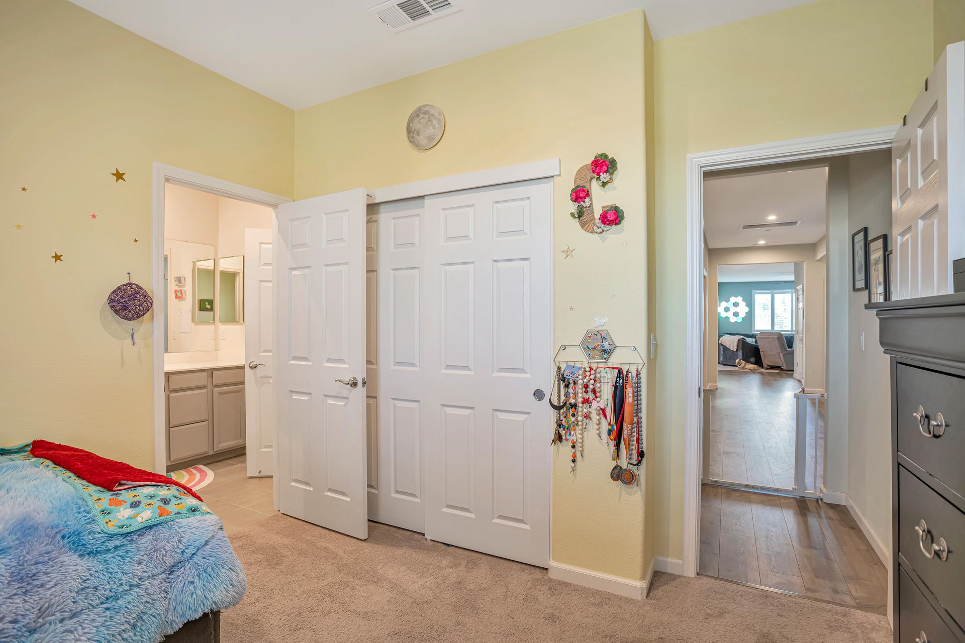 Welcome to this better than new, stunning single-story home. This home will fit all wants and needs with three separate bedroom areas. The front two bedrooms are connected by a shared bathroom, the third bedroom and full bath are off of the hallway and the primary suite is in the back of the home plus a den or fifth bedroom! This home features upgrades galore, including quartz countertops, beautiful kitchen backsplash, stainless steel appliances, a recently redone walk-in shower, tankless water heater, whole house fan, central indoor and garage vacuum, not to mention the fully landscaped backyard with a hot tub to enjoy all year round! You will not be disappointed with all that this home has to offer!