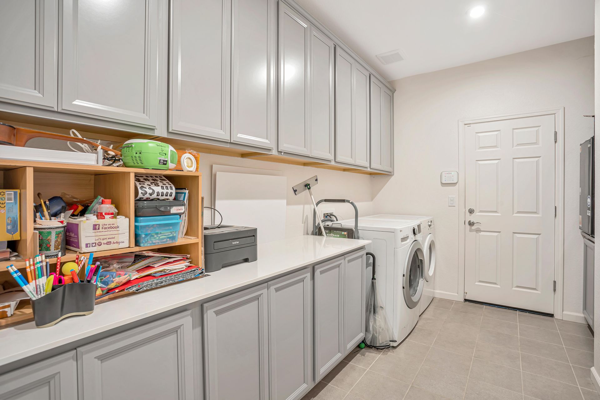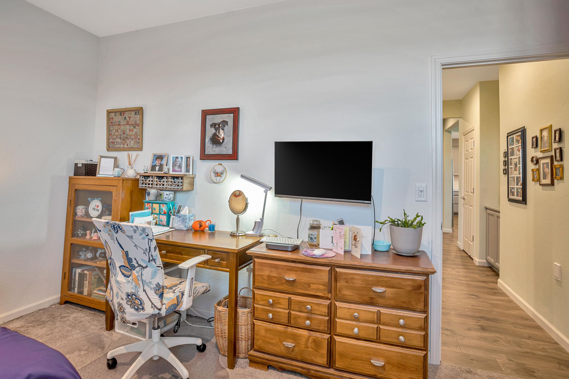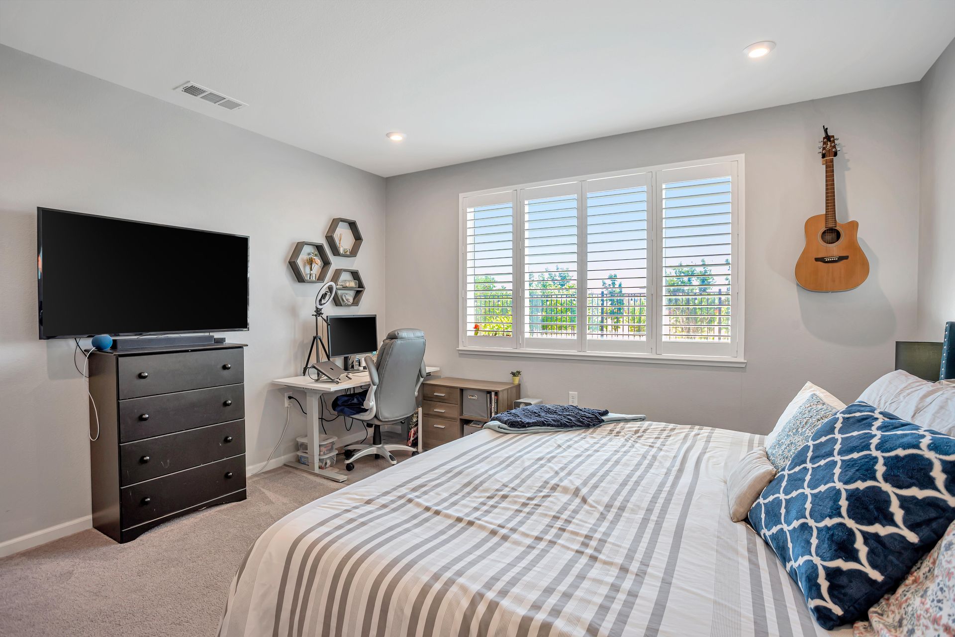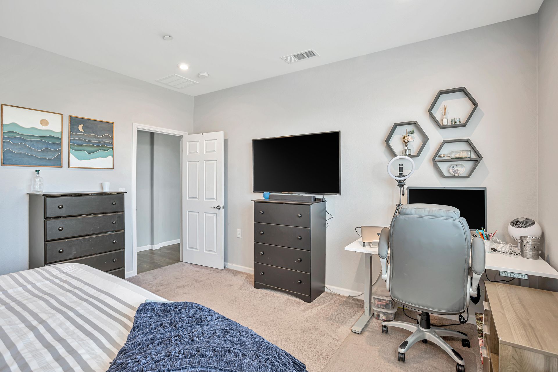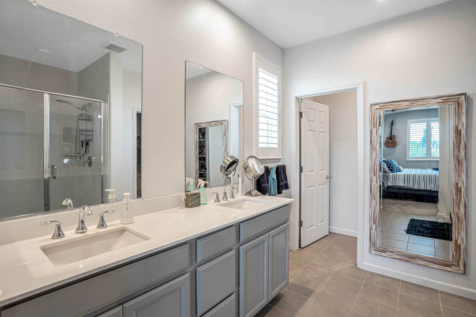 Welcome to this better than new, stunning single-story home. This home will fit all wants and needs with three separate bedroom areas. The front two bedrooms are connected by a shared bathroom, the third bedroom and full bath are off of the hallway and the primary suite is in the back of the home plus a den or fifth bedroom! This home features upgrades galore, including quartz countertops, beautiful kitchen backsplash, stainless steel appliances, a recently redone walk-in shower, tankless water heater, whole house fan, central indoor and garage vacuum, not to mention the fully landscaped backyard with a hot tub to enjoy all year round! You will not be disappointed with all that this home has to offer!