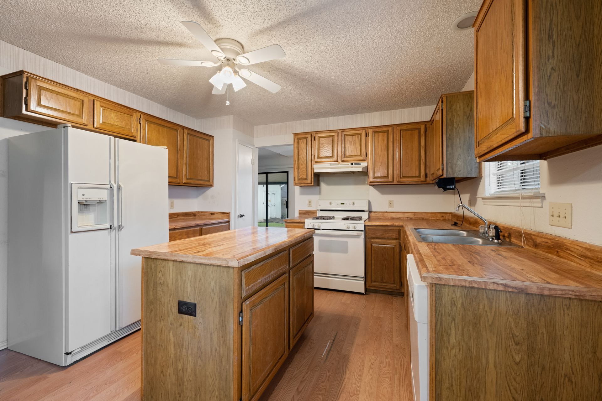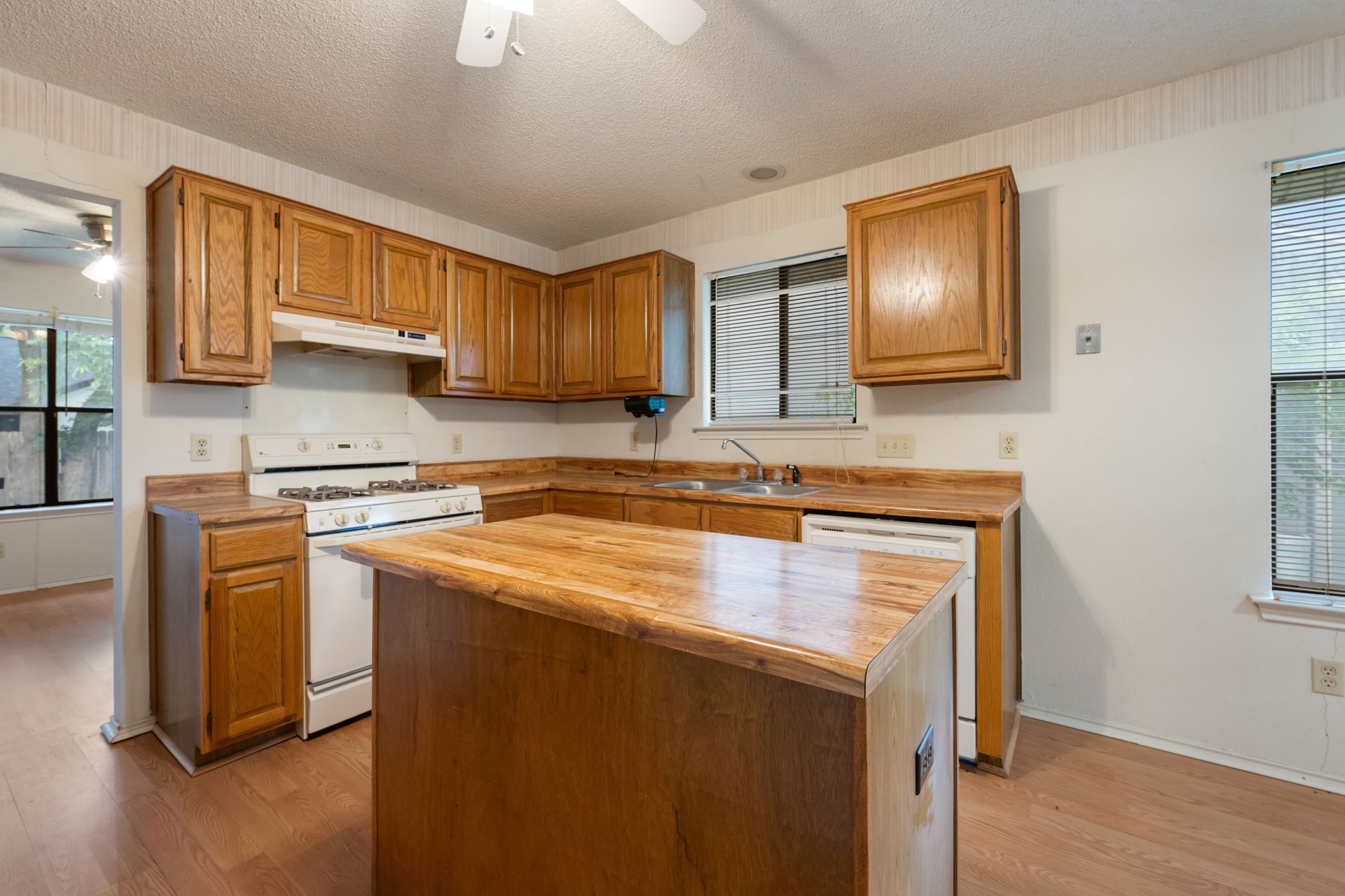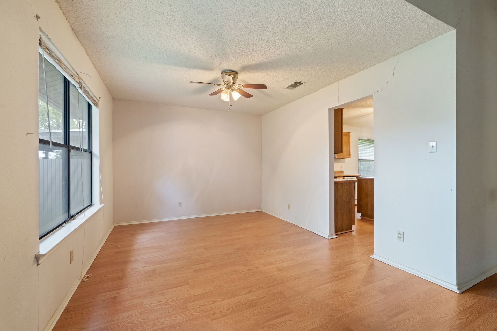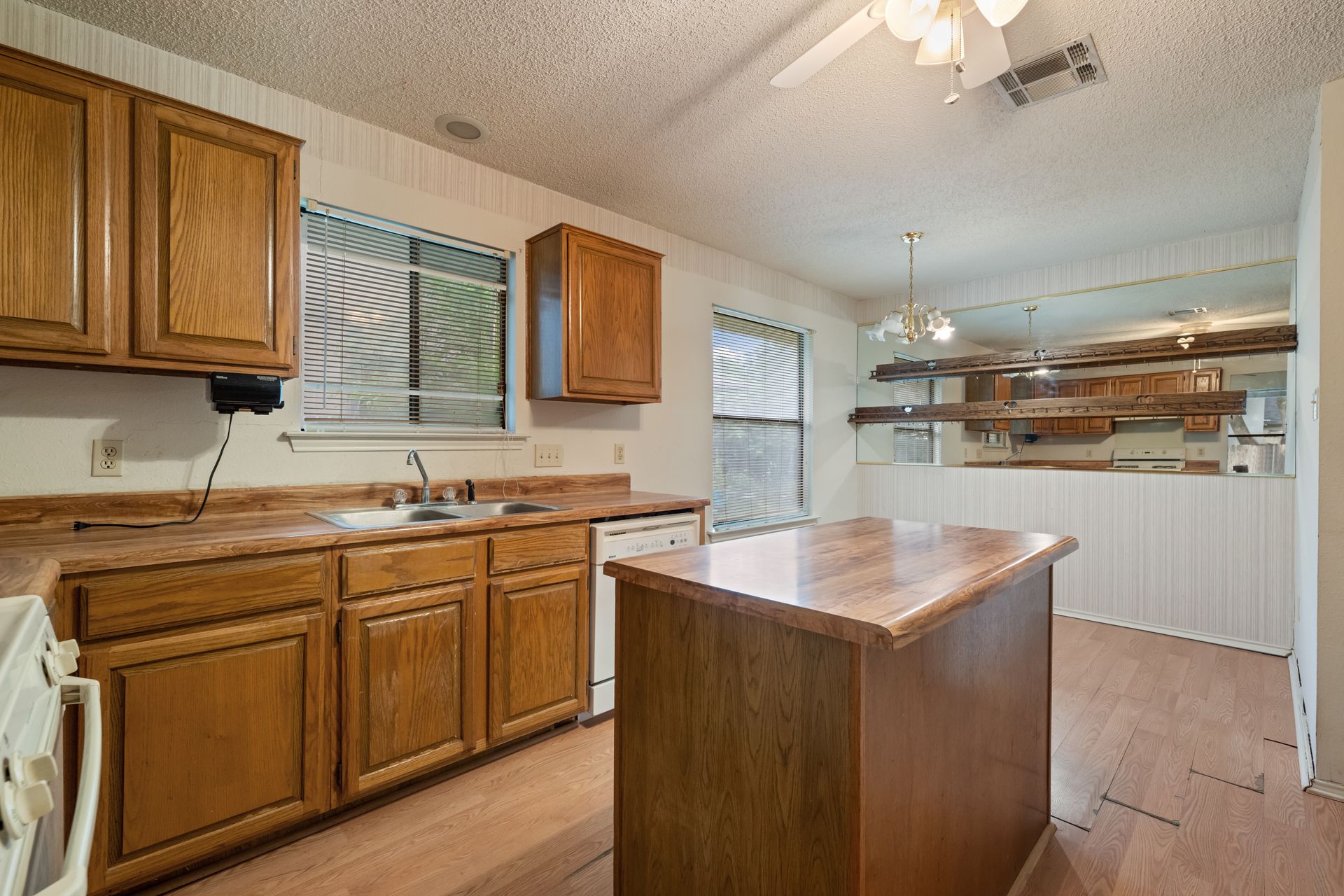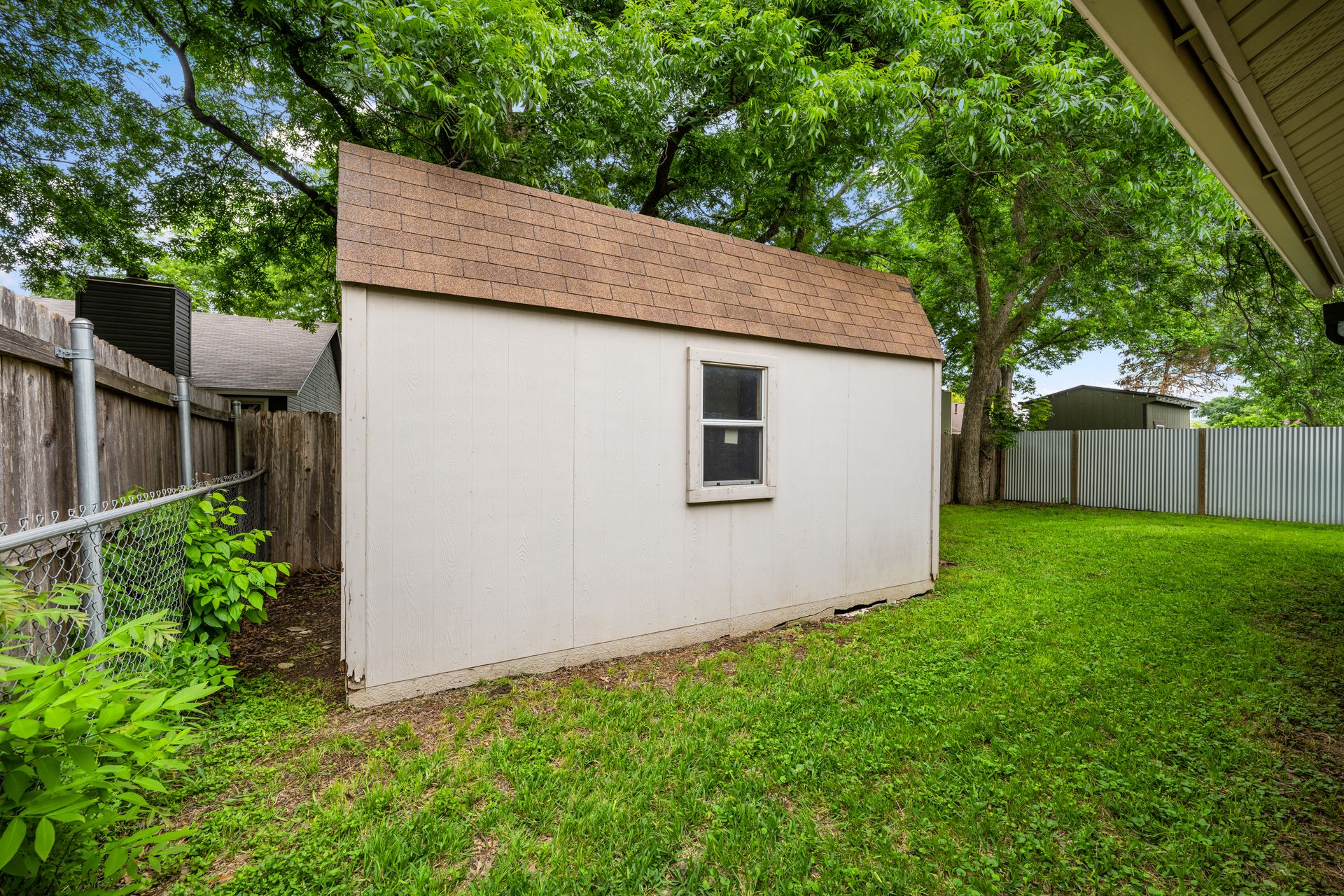 Unleash Your Inner Designer! This charming home is a blank canvas waiting for your creative touch. Nestled in a desirable South Austin neighborhood, this single story 3 bedroom, 2 bath home is a true hidden gem waiting to be discovered. You'll love the open floor plan with vaulted, beam ceilings and cozy wood burning fireplace in the living area. The formal dining off the living room as well as the breakfast area in the kitchen offers plenty of room for entertaining guests. The spacious primary retreat includes a full bath and two walk-in closets. The secondary bedrooms and bathroom are separated from the primary bedroom making this the perfect floor plan. Enjoy summer evenings on the covered patio overlooking a shaded backyard, perfect for barbecues or family gatherings. Private fenced yard with covered patio. One storage buildings provide extra storage space for all your needs!