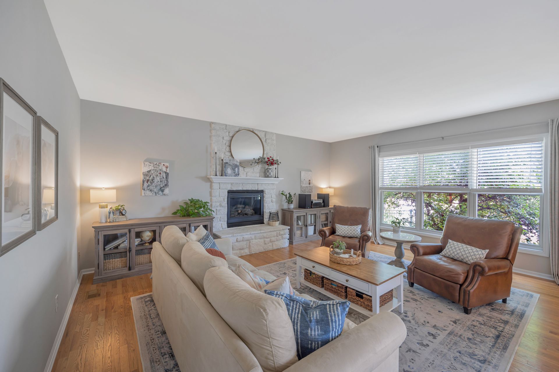 The welcoming great room is a true centerpiece, featuring a cozy gas fireplace and a magnificent wall of windows that frame the serene views of the lake, creating a perfect spot to relax and unwind.