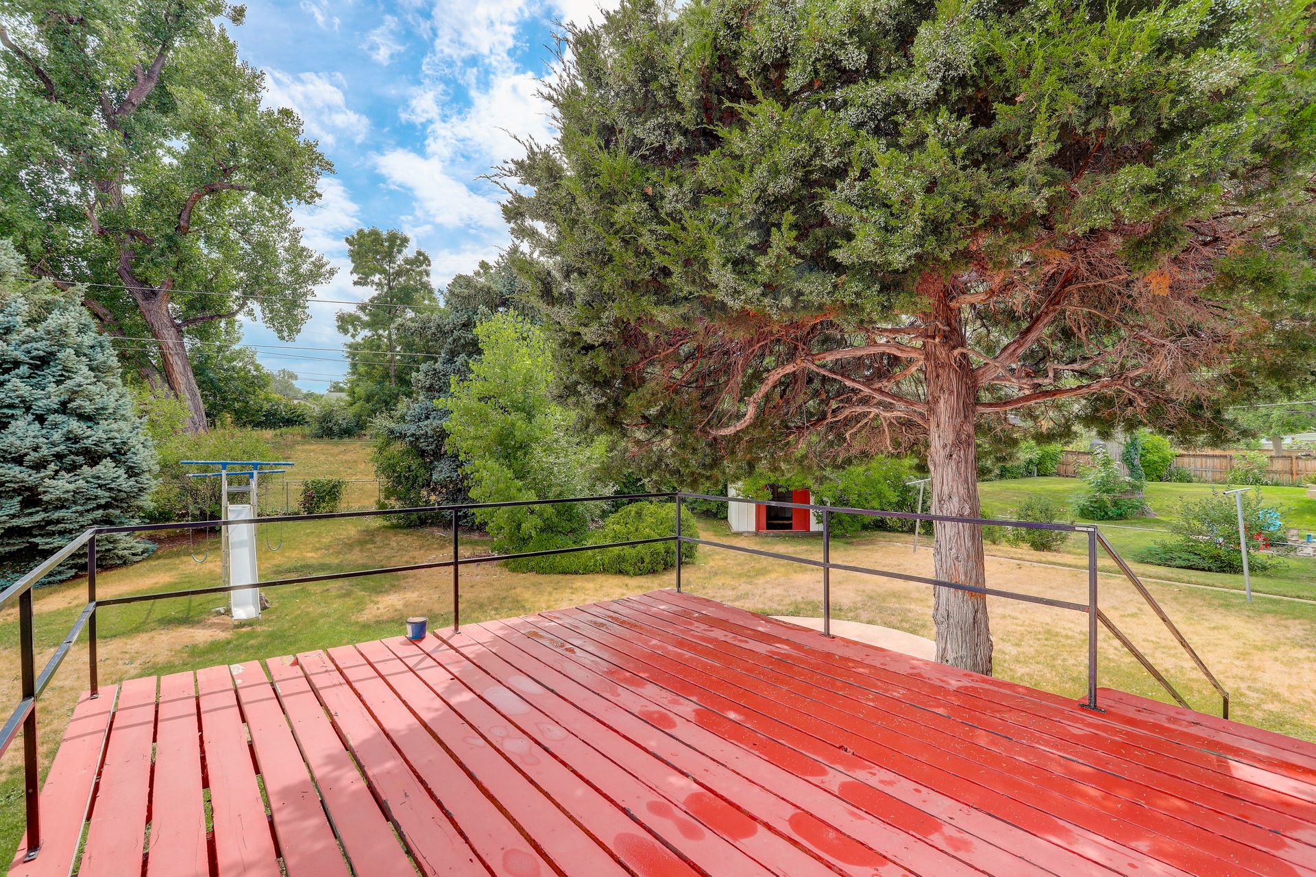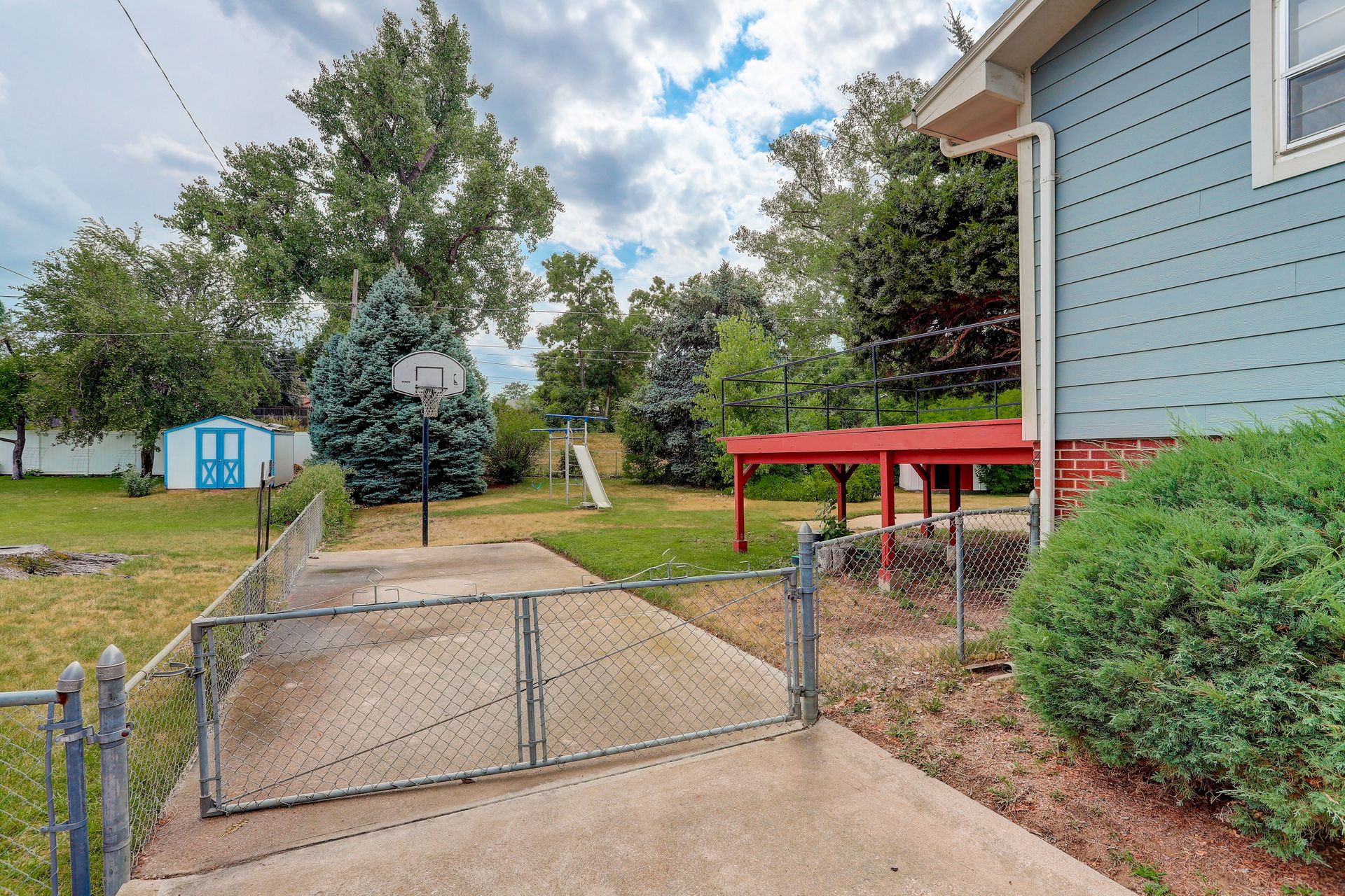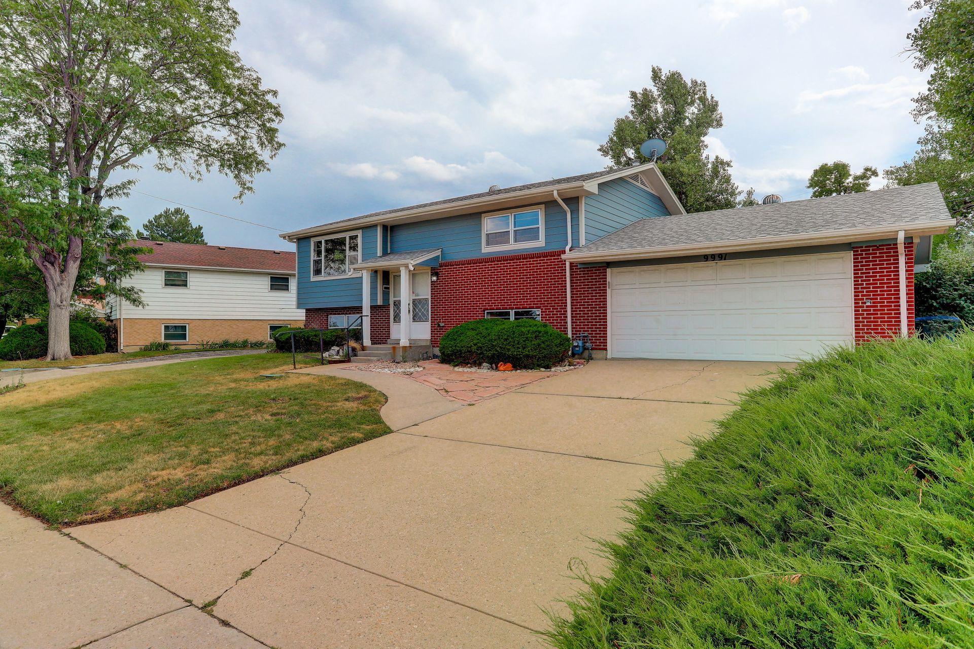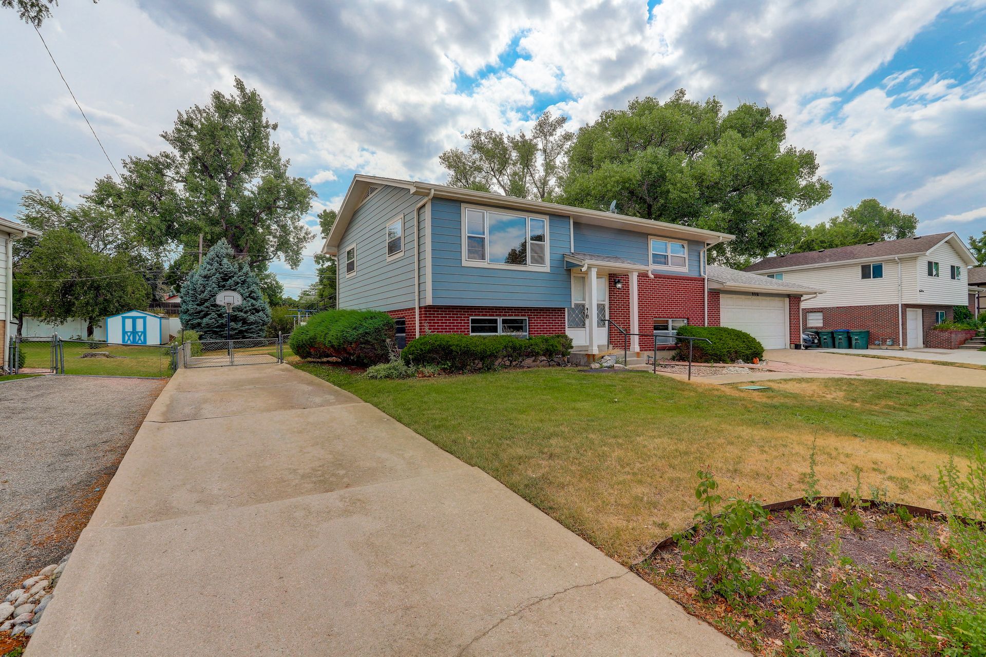 This property in prime West Northglenn boasts a spacious 9600 square foot lot with convenient, wide, side yard access to the rear yard via a concrete driveway. It features mature trees and backs onto a trail, providing a serene backdrop. The home itself offers five bedrooms and the lower level fifth bedroom is large enough to flex as a family room, game room, media room – you decide! There are two bathrooms, both updated, along with updated lighting throughout. Large upper-level great room with original hardwood flooring. Other recent updates include new James Hardie lap siding, fresh interior paint and new carpet. The kitchen is equipped with all appliances, complemented by a large eat-in space and tile flooring. The utility room is substantial, accommodating a side-by-side washer and dryer, a utility sink and new flooring. Additional features include a spacious deck overlooking the picturesque rear yard, complete with a lower patio and a shed for extra storage and an oversized, attached two-car garage with rear yard service door access. The location offers easy access to I-25 making commuting convenient and is close to amenities such as Starbucks and the Northglenn Market Place, offering various shops and restaurants. The home is move-in ready with opportunities for personalization to suit future preferences.